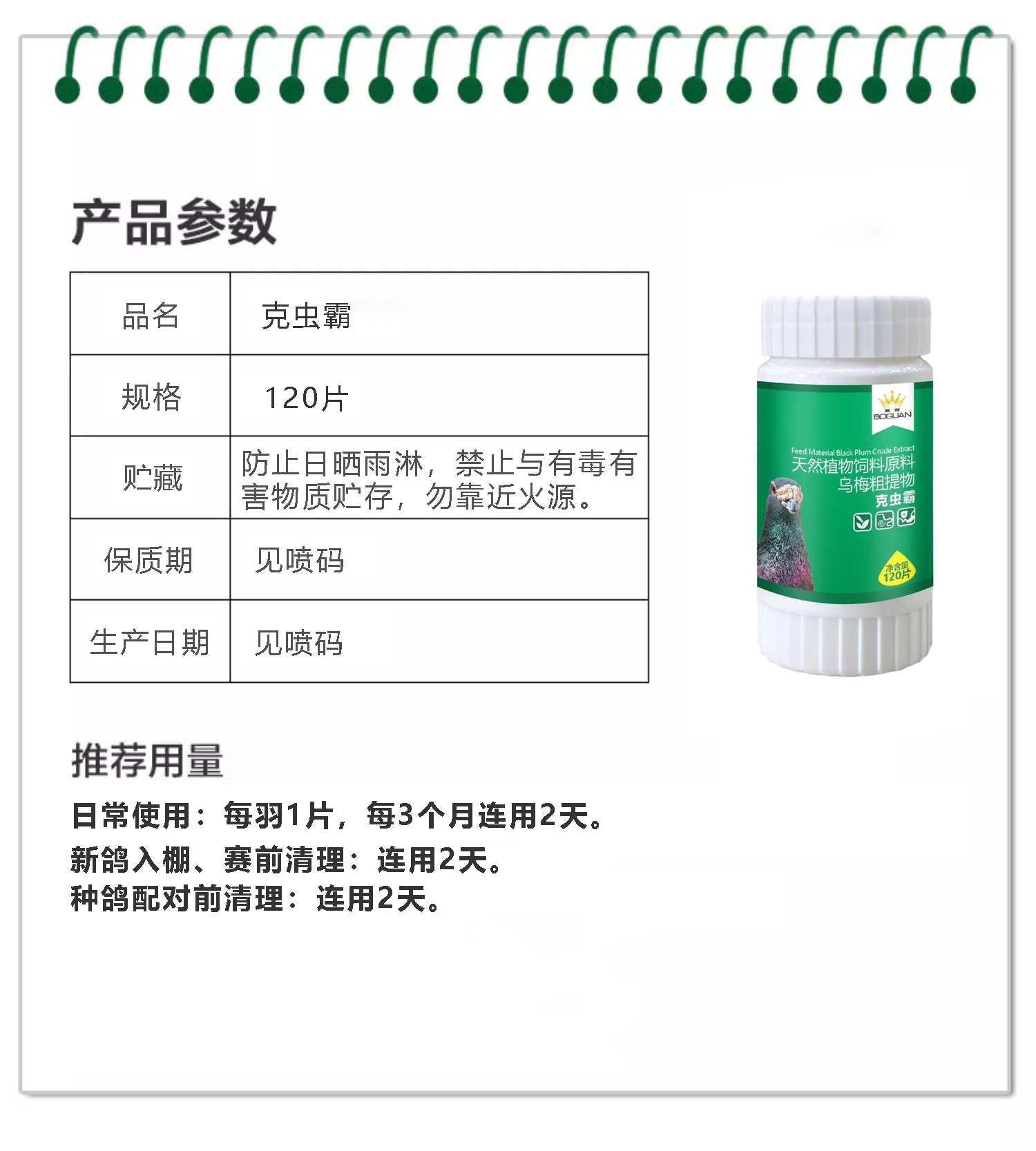 搏冠【克虫霸】片剂120粒赛信鸽子用品清理体内虫打虫博冠驱虫王