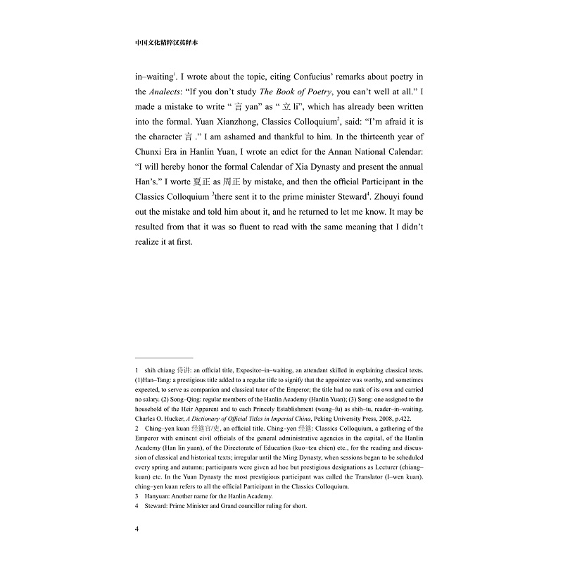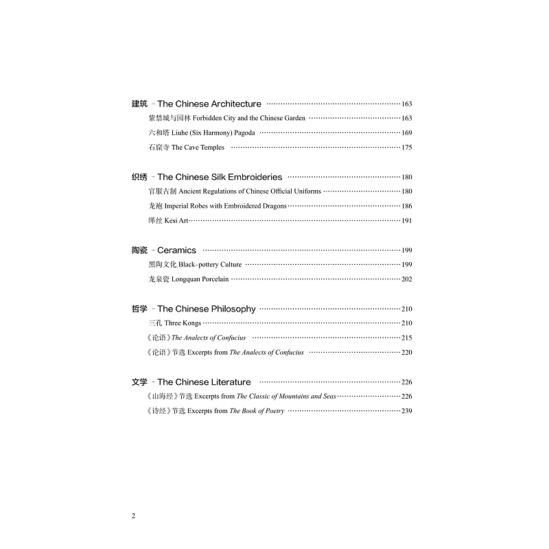本书稿拟从语言-The Chinese Language开始,以十六个篇章概括绘画-The Chinese Painting、书法- The Chinese Calligraphy、哲学-The Chinese Philosophy、文学- The Chinese Literature、音乐- The Chinese Music、图书- The Chinese Books、建筑- The Chinese Architecture、饮食- The Chinese Culinary、服装-The Chinese Costume、饰品- The Chinese Adornment、运动- The Chinese Sports、民艺-The Chinese Folk Art、民俗- The Chinese Folklore、中医- The Chinese Medicine、 影视- The Chinese Movies and TV等中国文化专题方面的精彩文章,并配图阐释,达到介绍中国优秀文化的目的。
