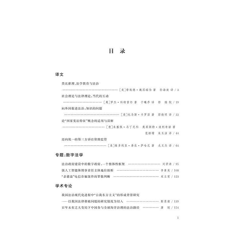 《浙大法律评论》由浙江大学光华法学院组稿。第9卷有3个栏目:译文、数字法学、学术专论。“译文”内容涉及法学教育、法治理论、社会理论;“数字法学”专栏的3篇论文研究了法治政府建设中的数字政府、强人工智能体刑事责任主体地位和“杀猪盘”电信诈骗案件的罪数判断;“学术专论”栏目的5篇论文主题为:我国法治现代化进程中“自我东方主义”的形成背景、百年未有之大变局下中国参与全球海洋治理的法治路径、乞讨行为的界定与规制、以《民国知识人:历程与图谱》为例对作为空间的近代研究、妇女受教育权利保障问题等。