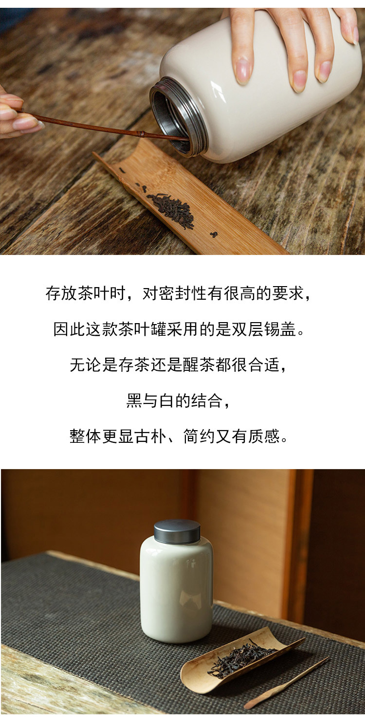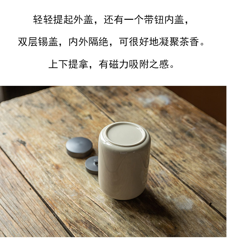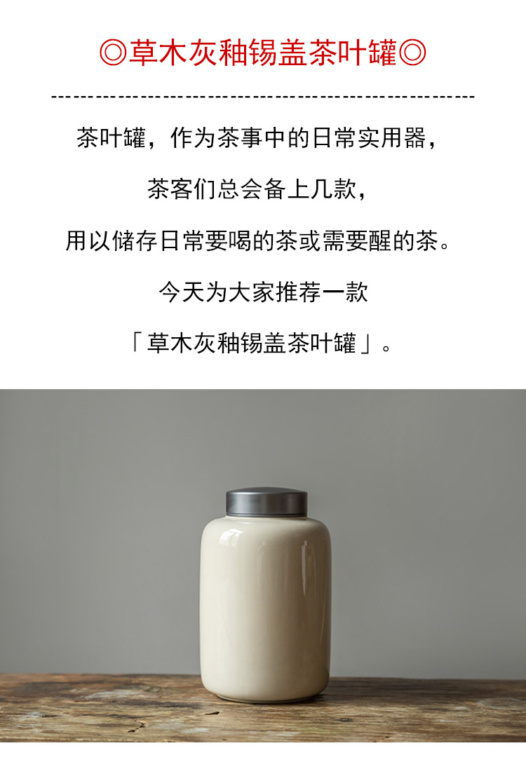 茶香记 草木灰釉合金锡盖茶叶罐 茶仓 朴雅耐看 密封性好 存茶醒茶