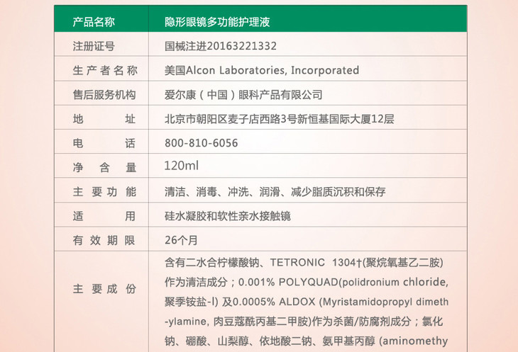 爱尔康(傲滴)多功能护理液 120ml