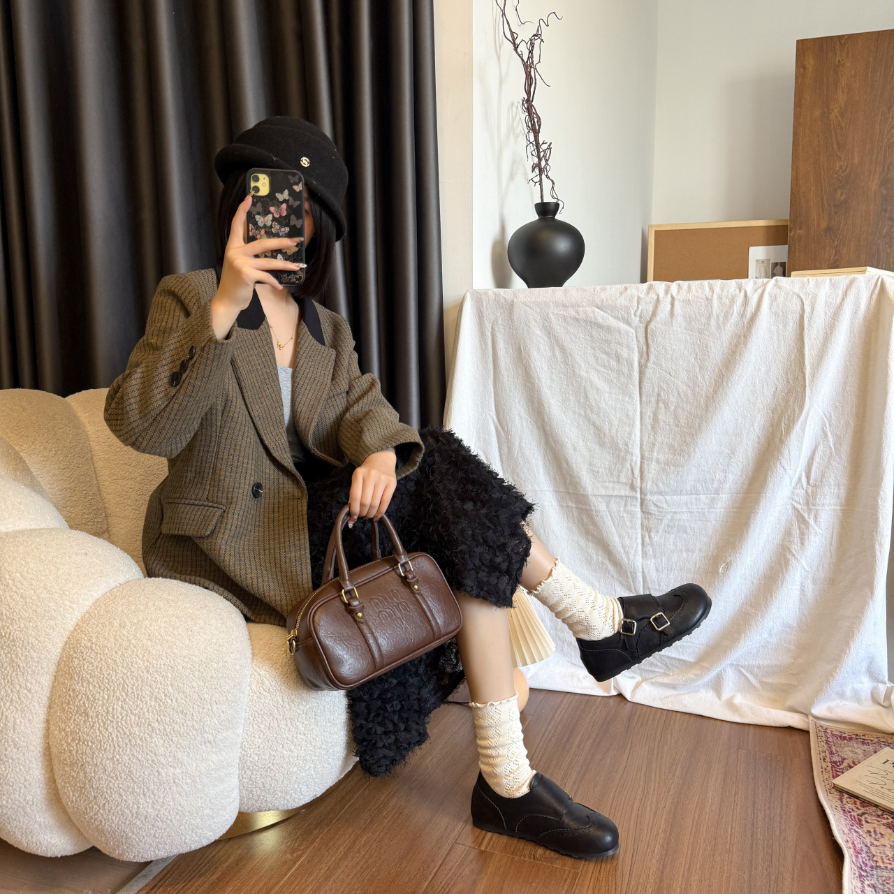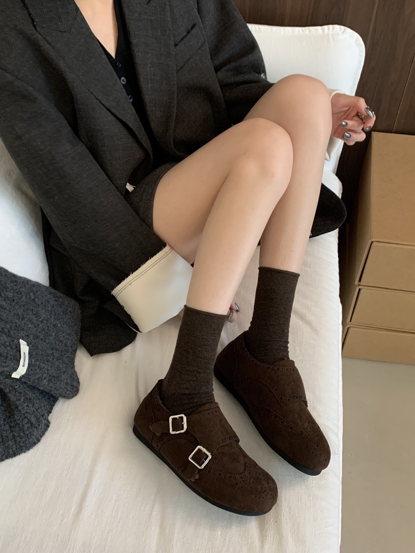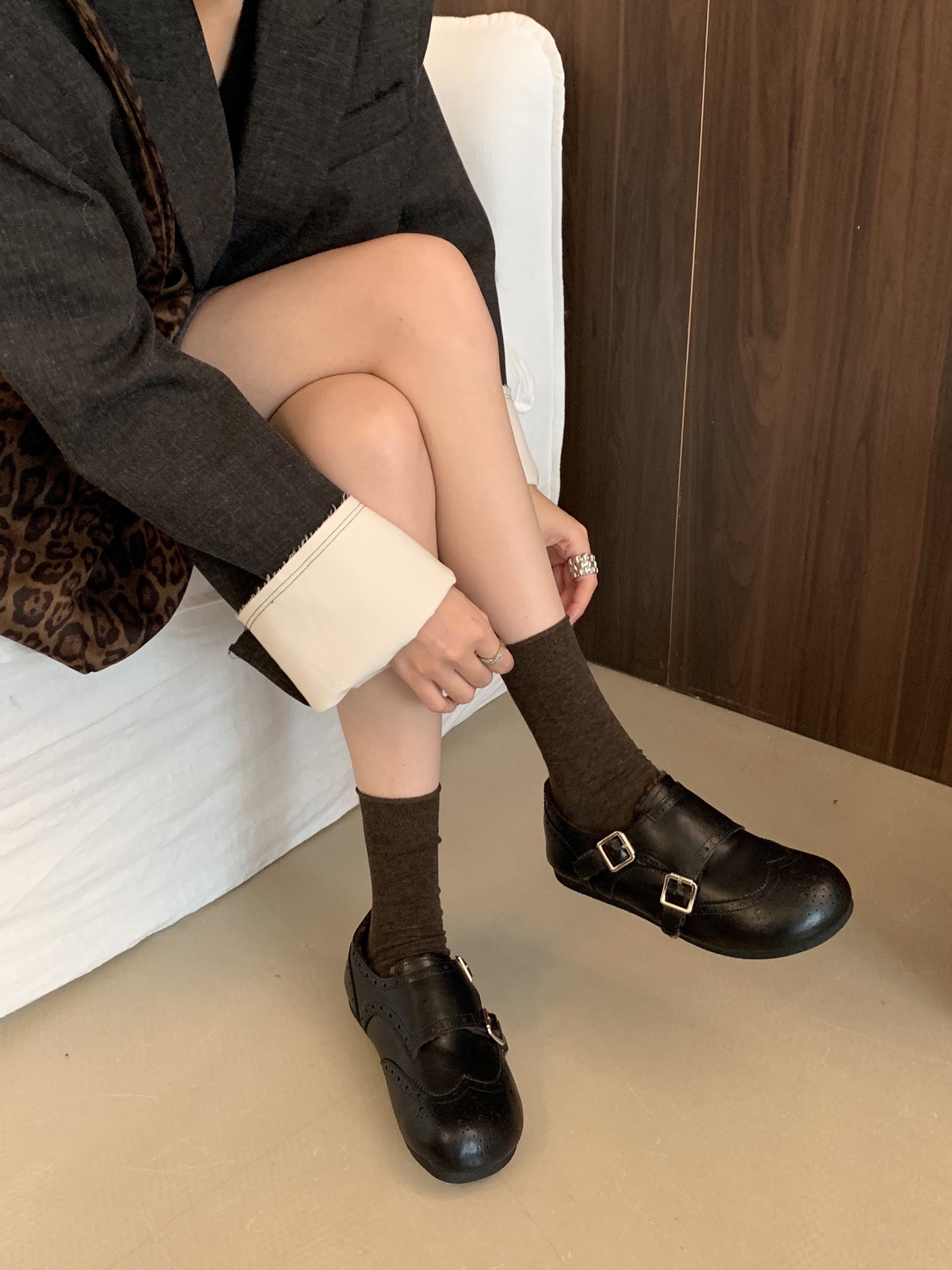 【ZUXIU 国风浮雕加绒皮鞋】三色可选,浮雕设计+皮扣搭配,复古国风设计,内里加绒+橡胶底,暖你一冬天~