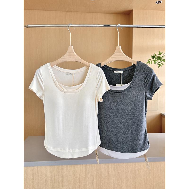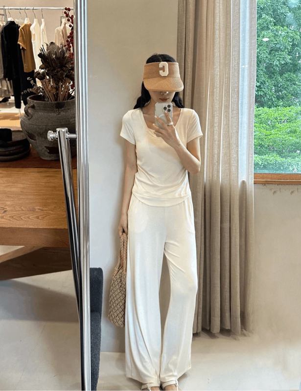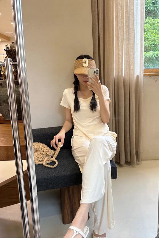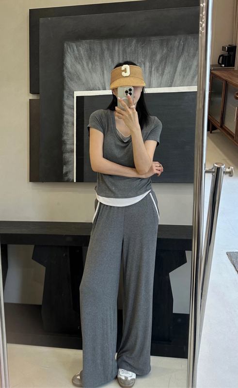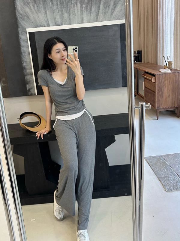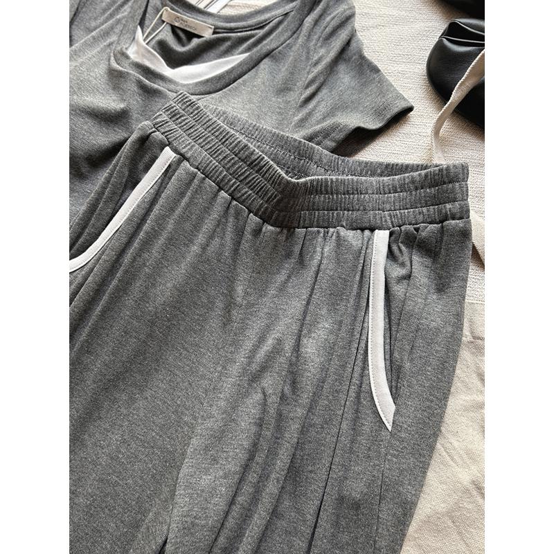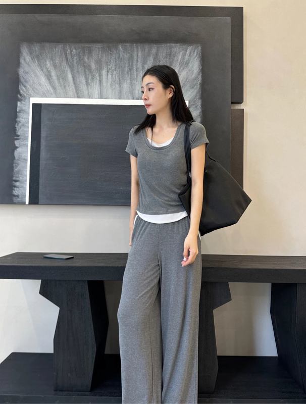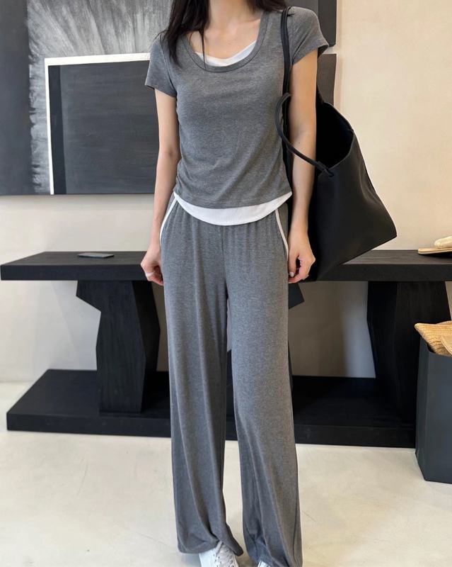 【包邮发顺丰】99911 洛诗琳新款假两件设计修身短袖T恤夏季宽松垂感阔腿休闲裤两件套 KTT038