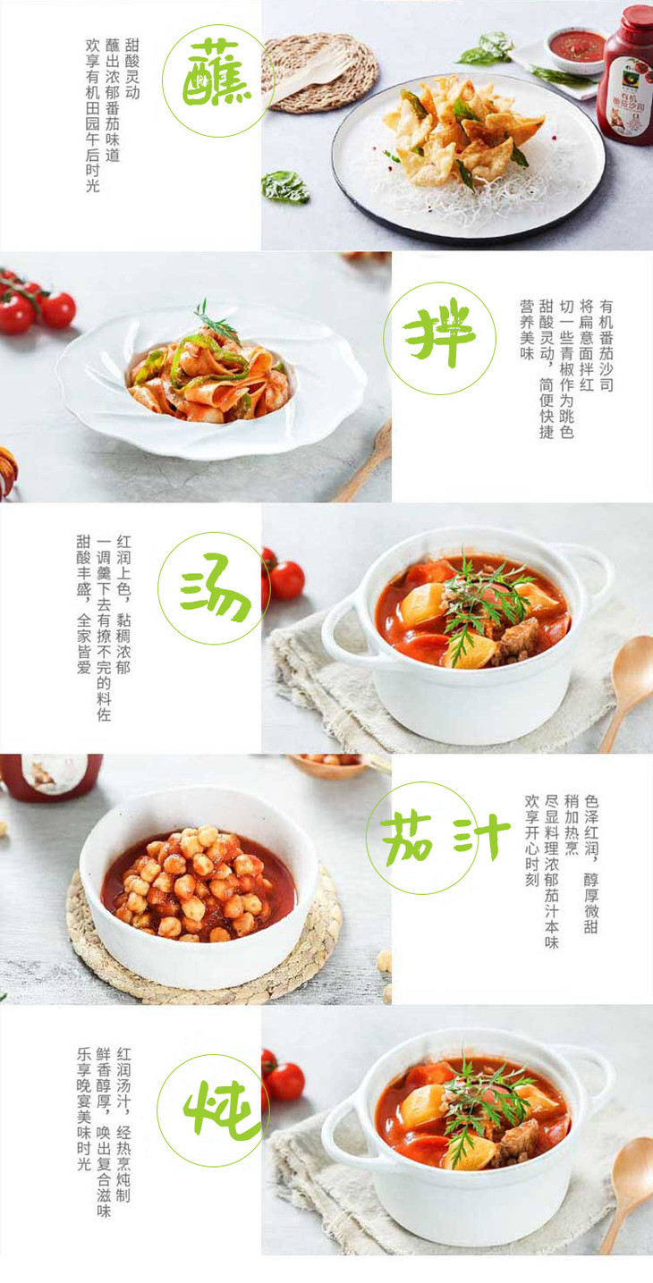 将有机红熟番茄,采摘现榨成有机番茄酱作为原料,搭配禾然有机糙米醋及有机苹果汁,经恒温专业技术40余项工艺检测及管控,每一味都承载着心意。