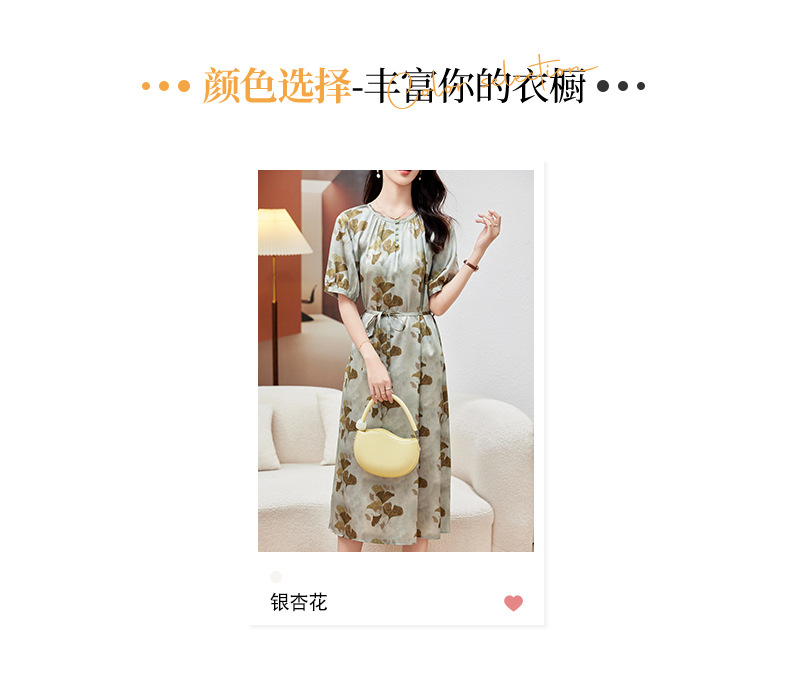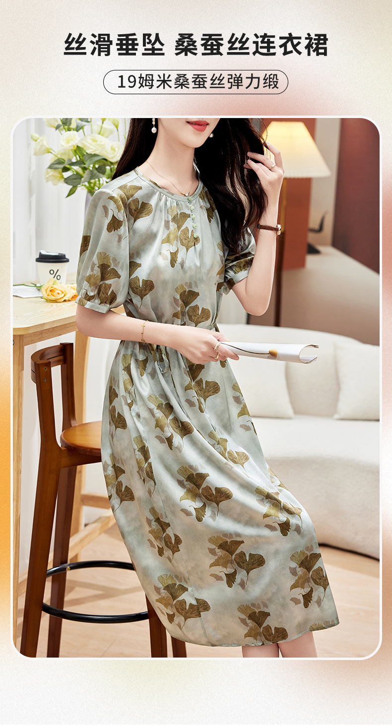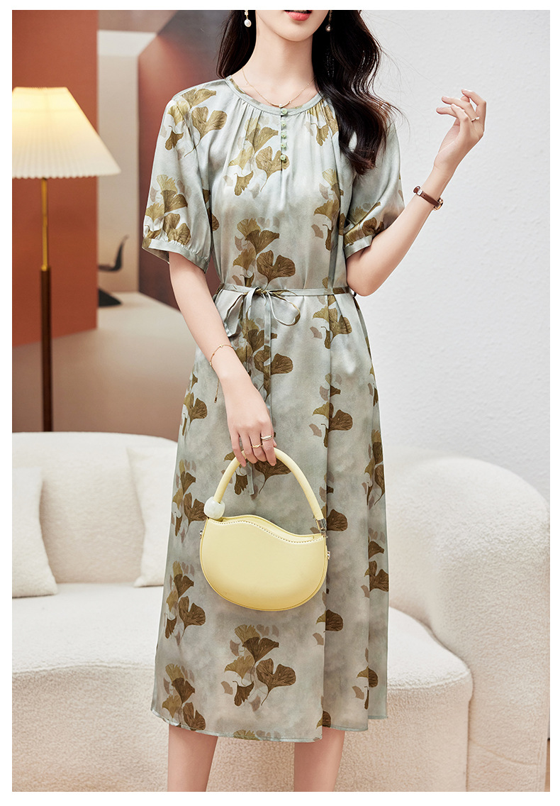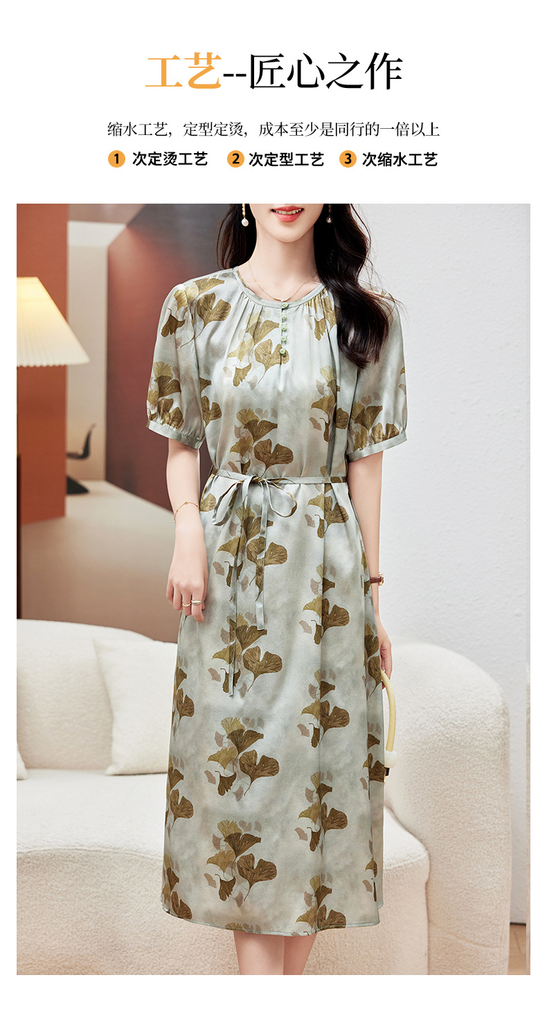 KQ-PZ09158真丝19姆米重磅弹力缎连衣裙女简约气质优雅宽松显瘦中长裙夏