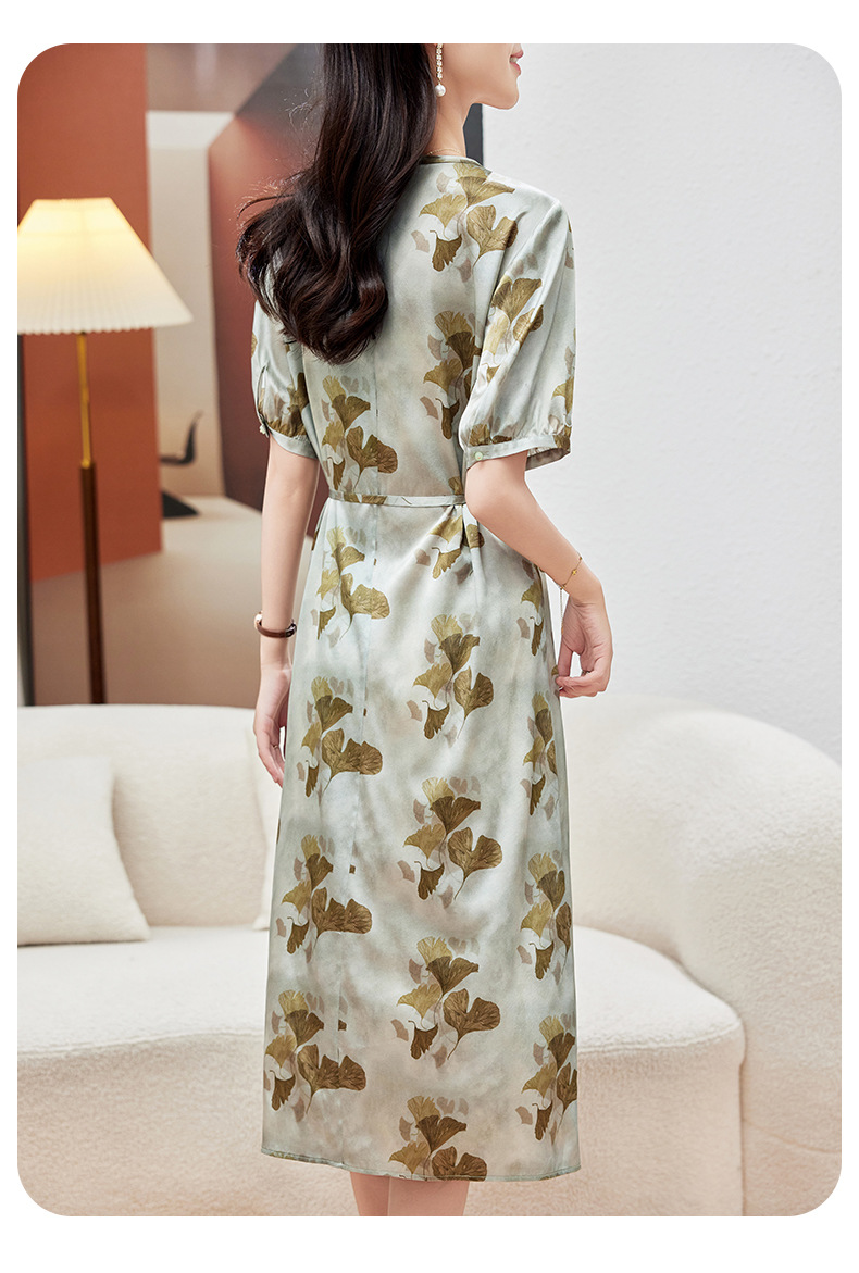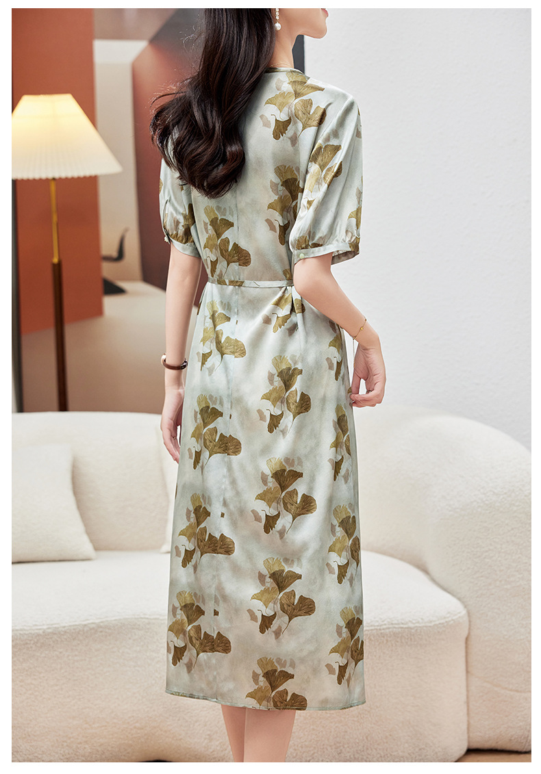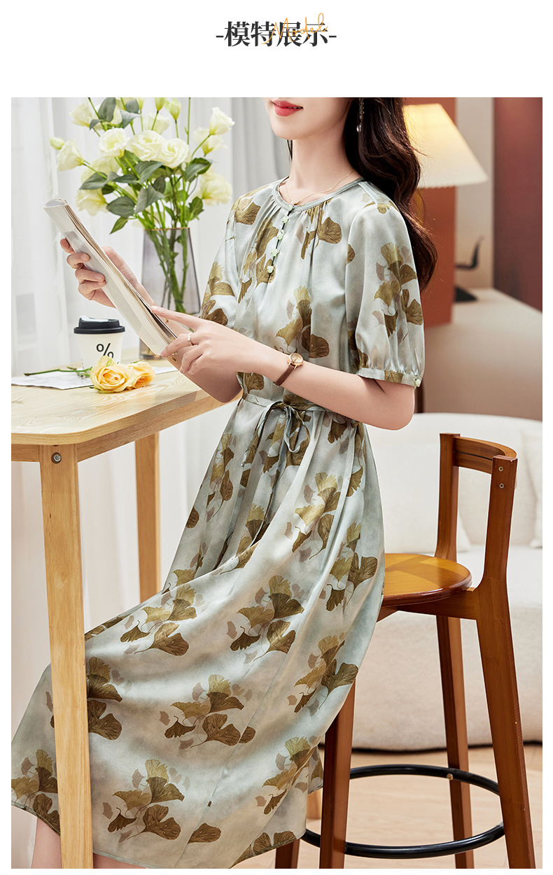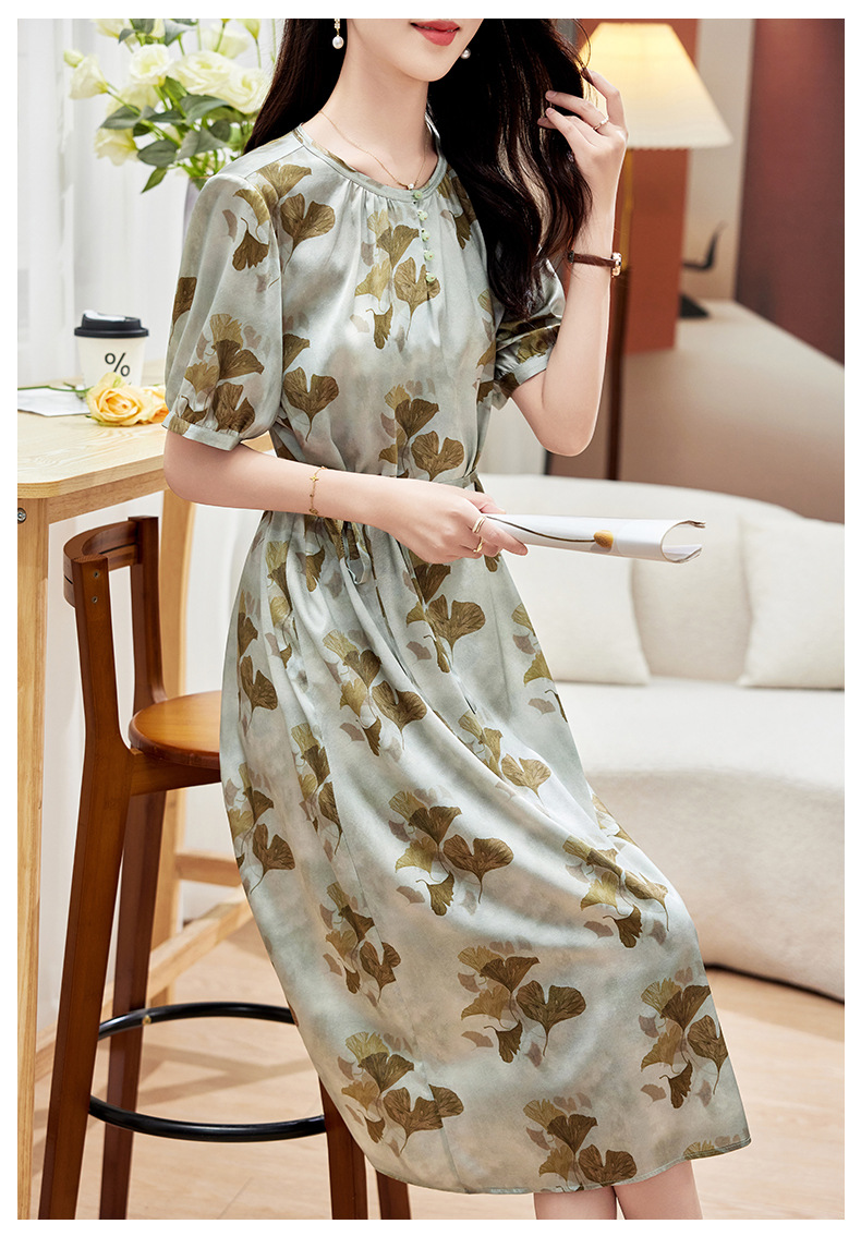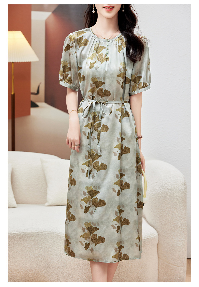 KQ-PZ09158真丝19姆米重磅弹力缎连衣裙女简约气质优雅宽松显瘦中长裙夏