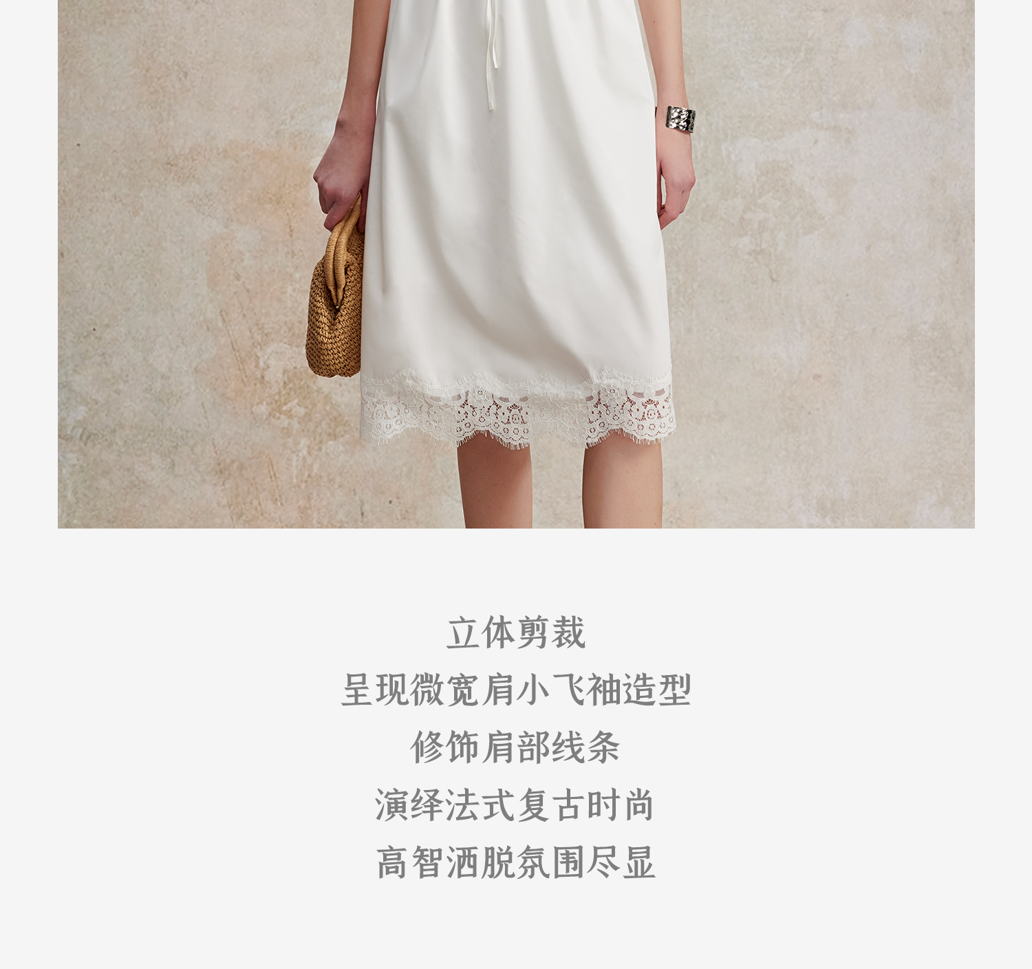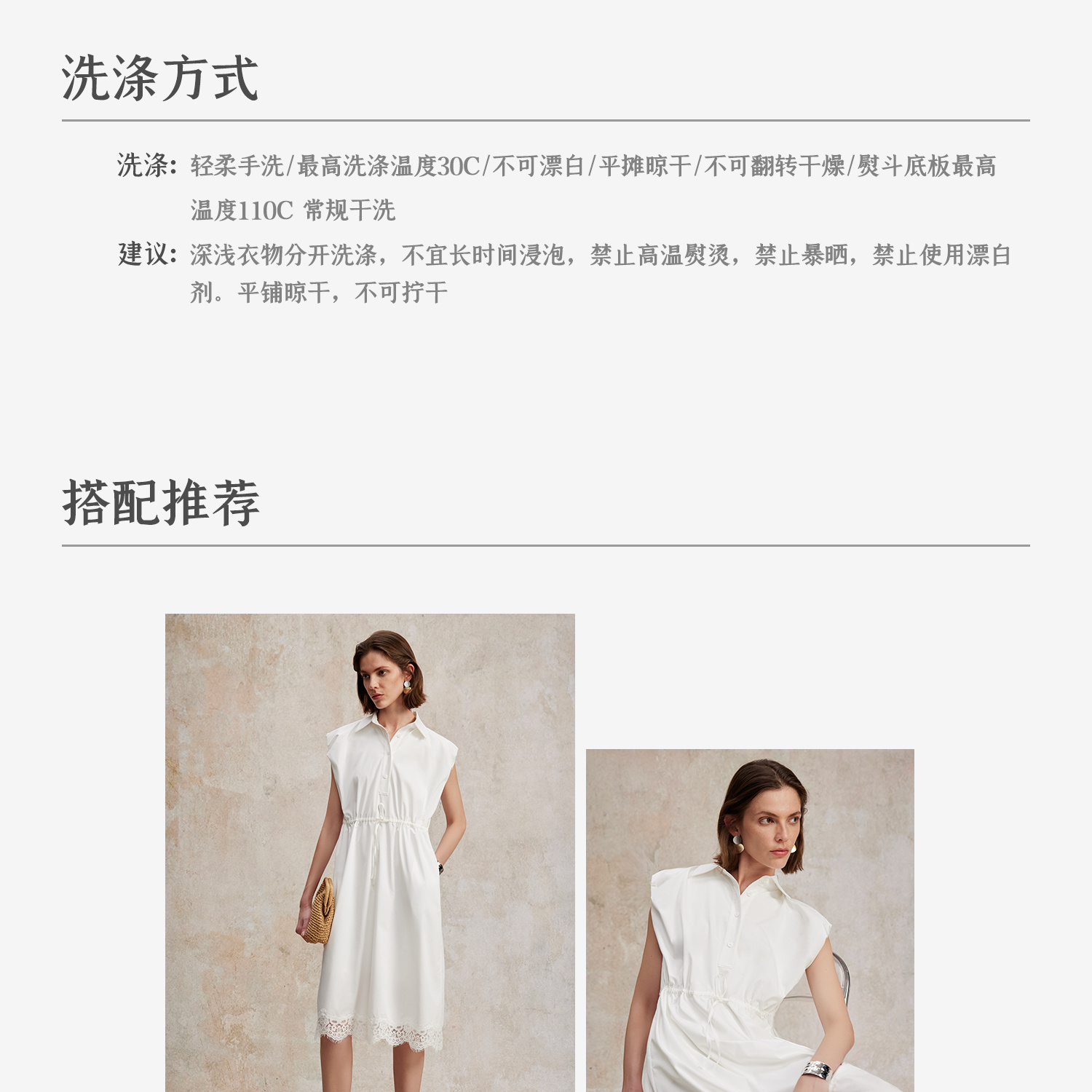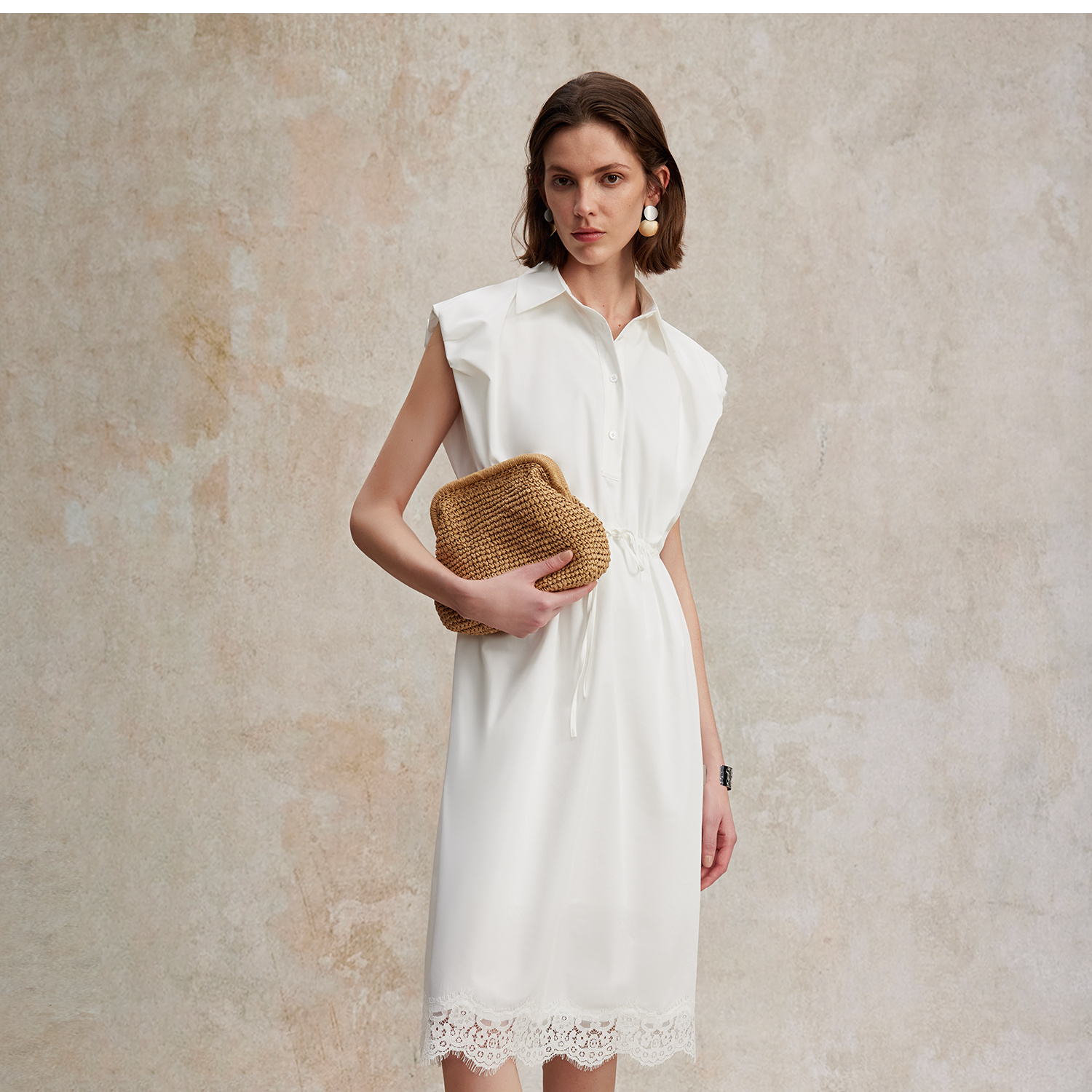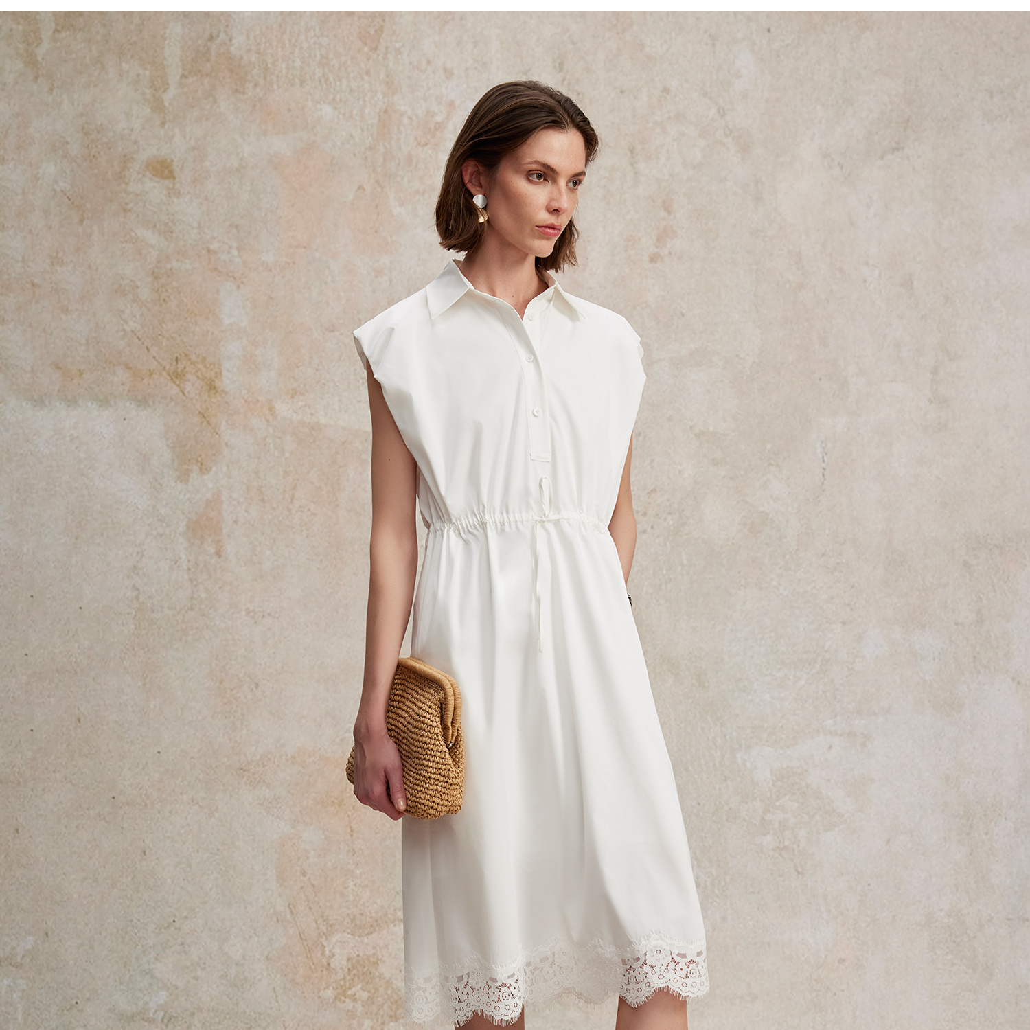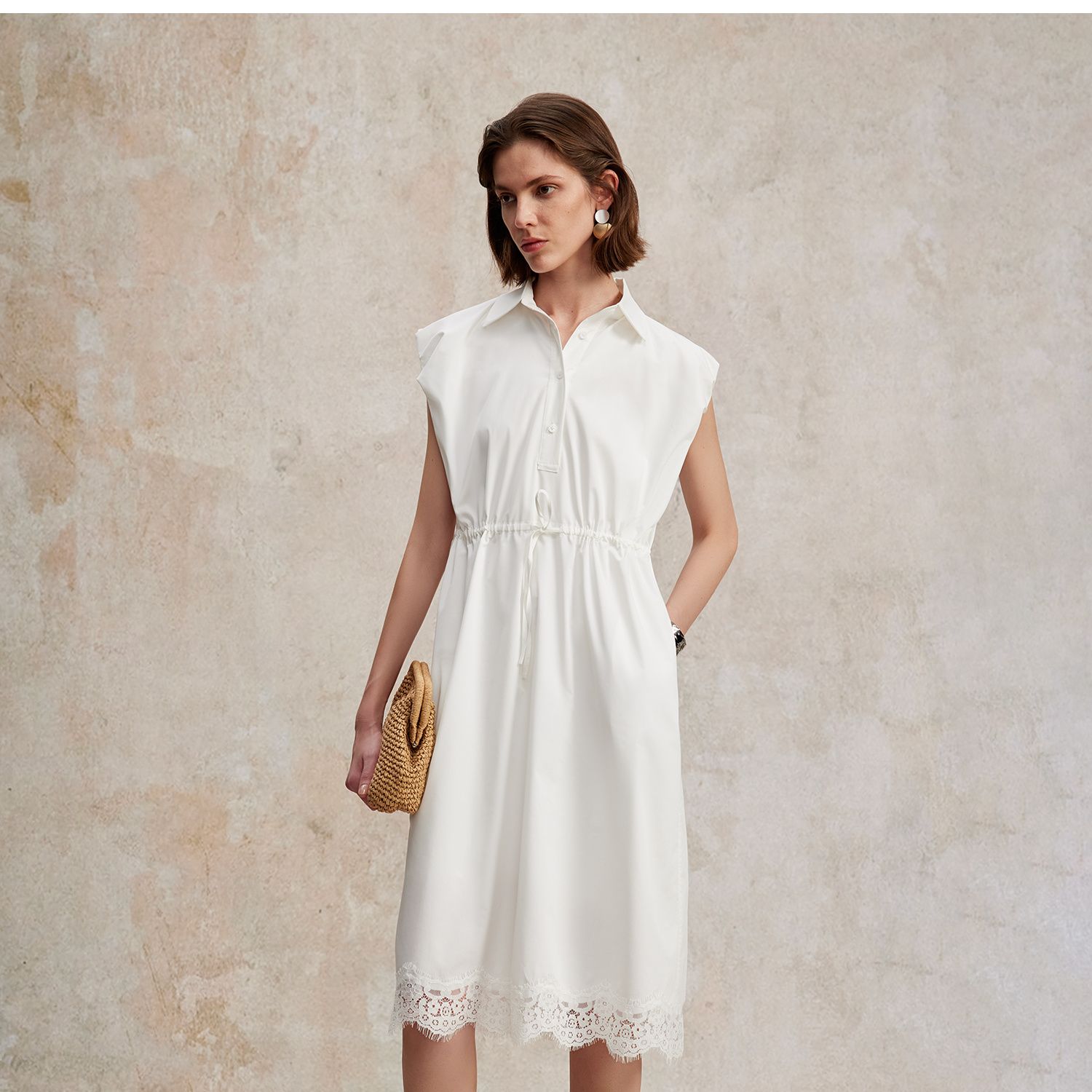 南法假日醋酸索罗那衬衫领蕾丝拼接连衣裙