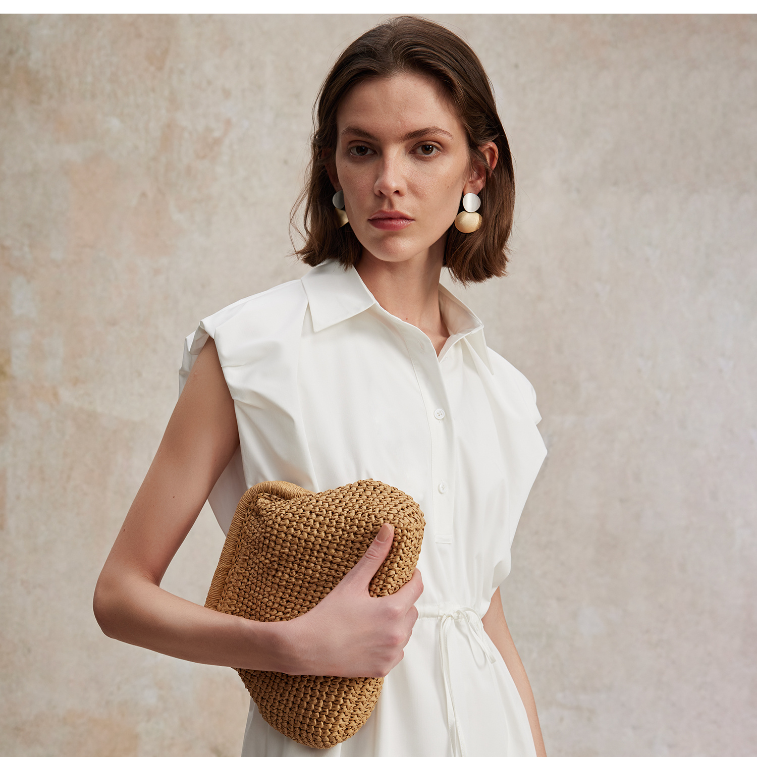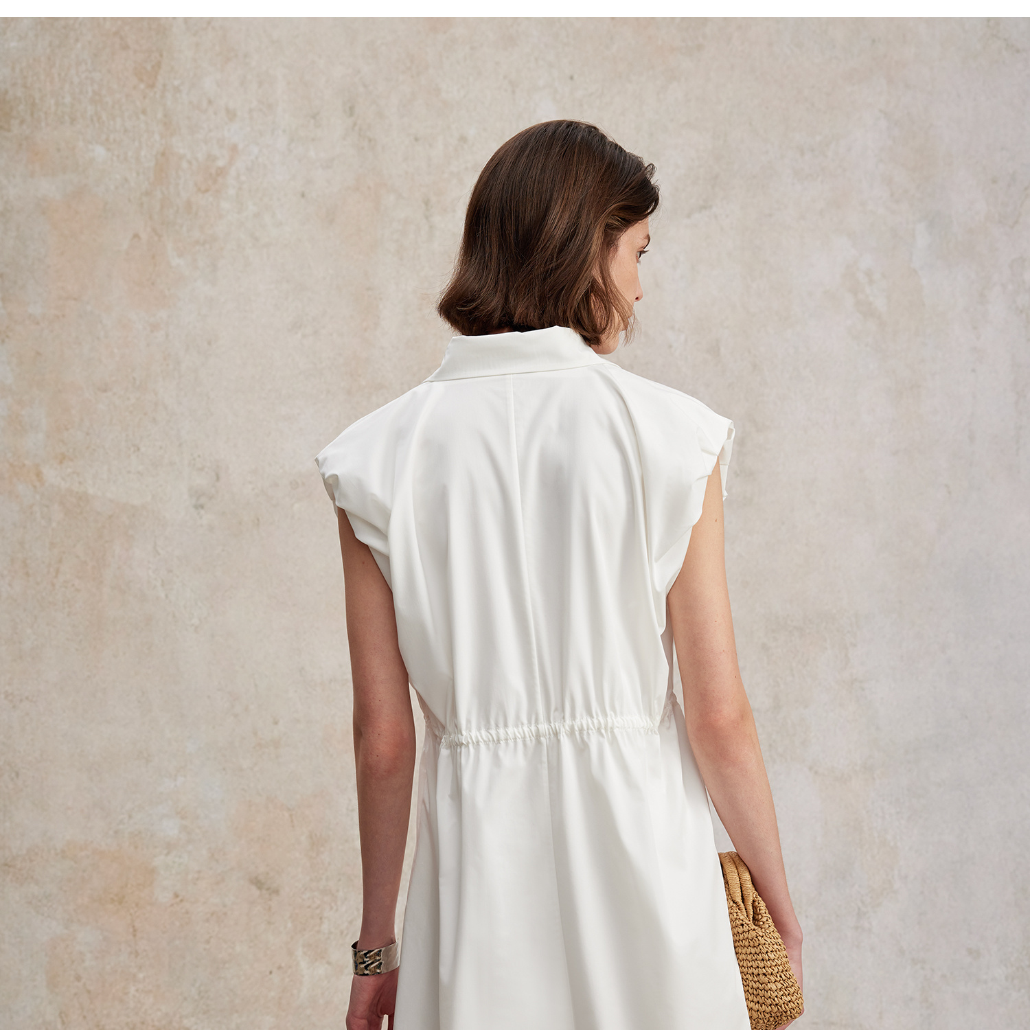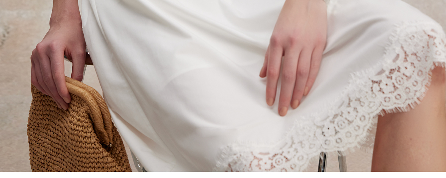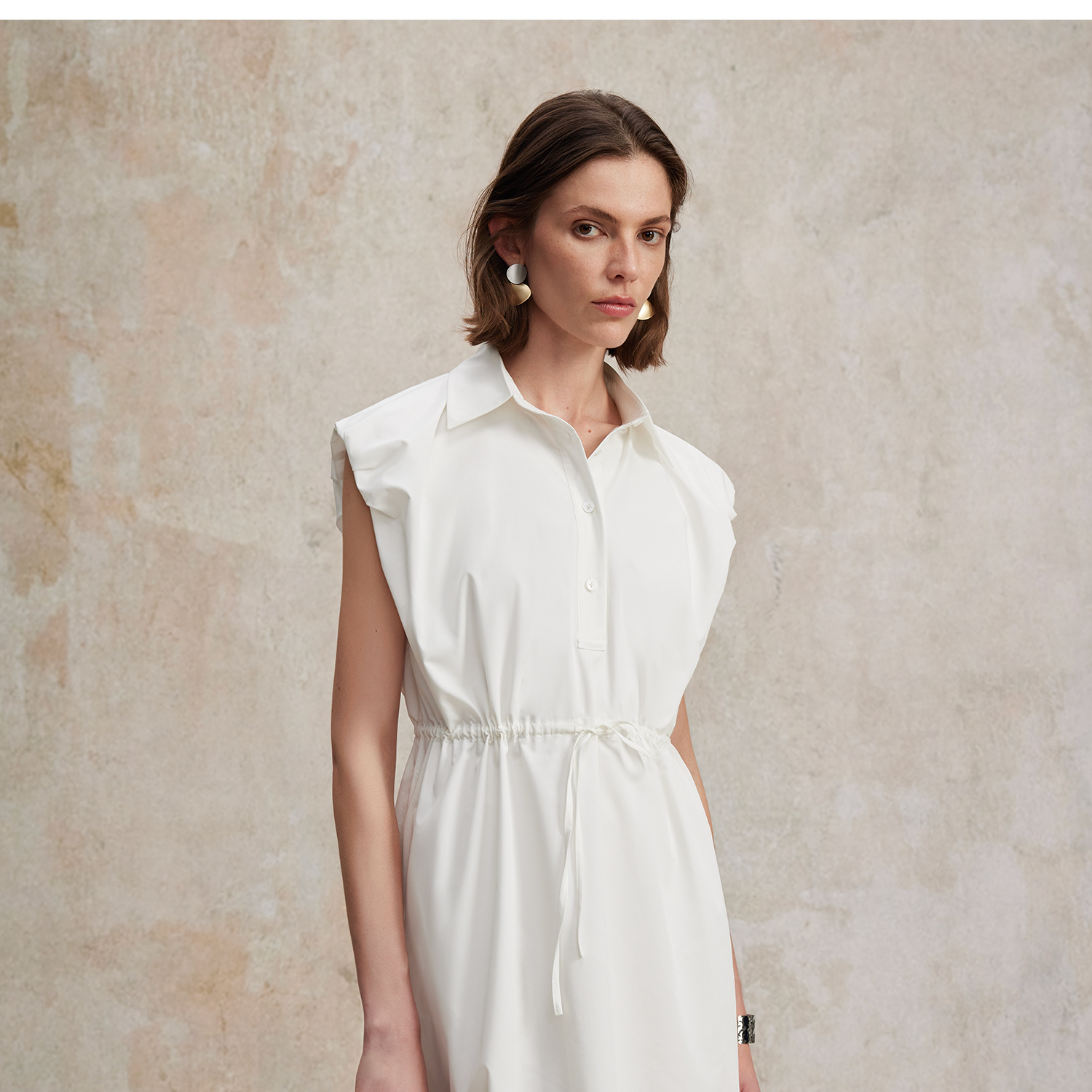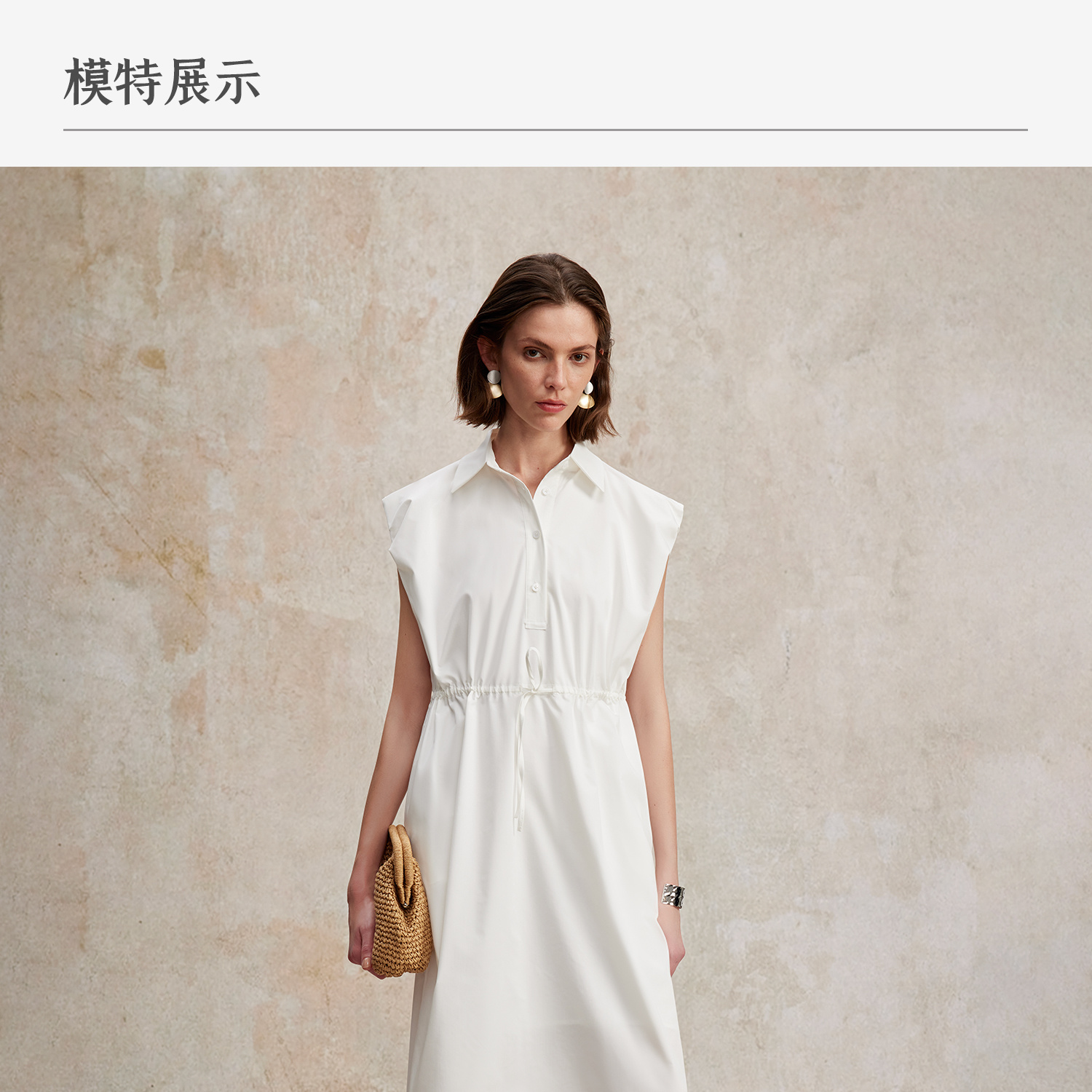 南法假日醋酸索罗那衬衫领蕾丝拼接连衣裙