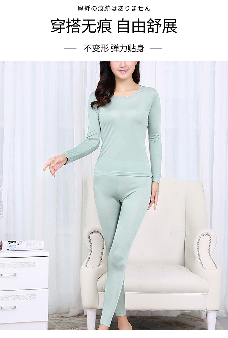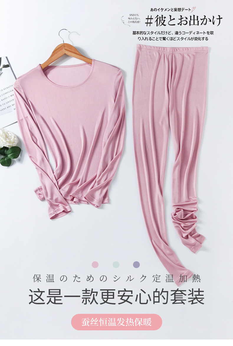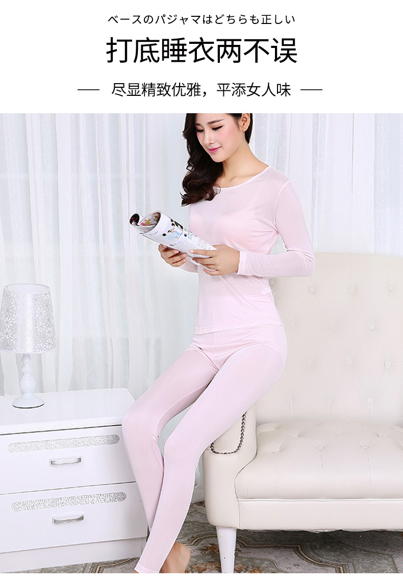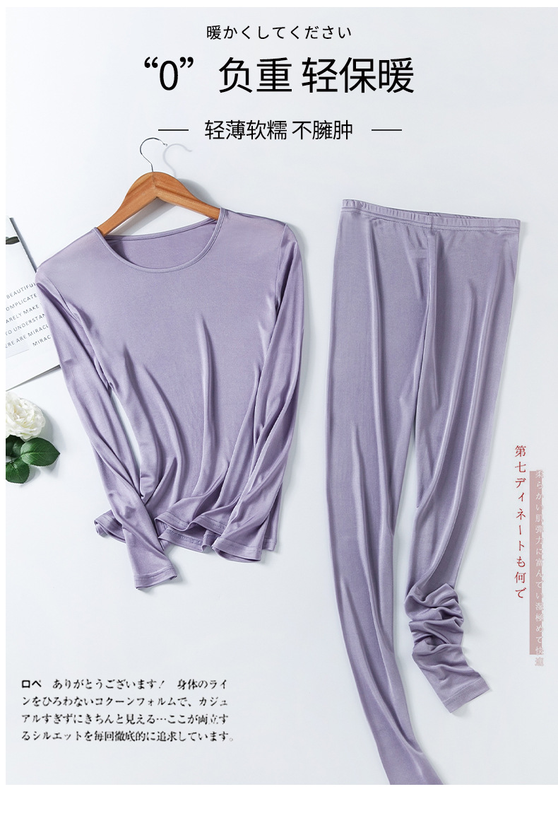 ARN-上衣Y015 裤子Y016新款桑蚕丝秋冬女士保暖打底衫套装圆领舒适真丝女士保暖套装