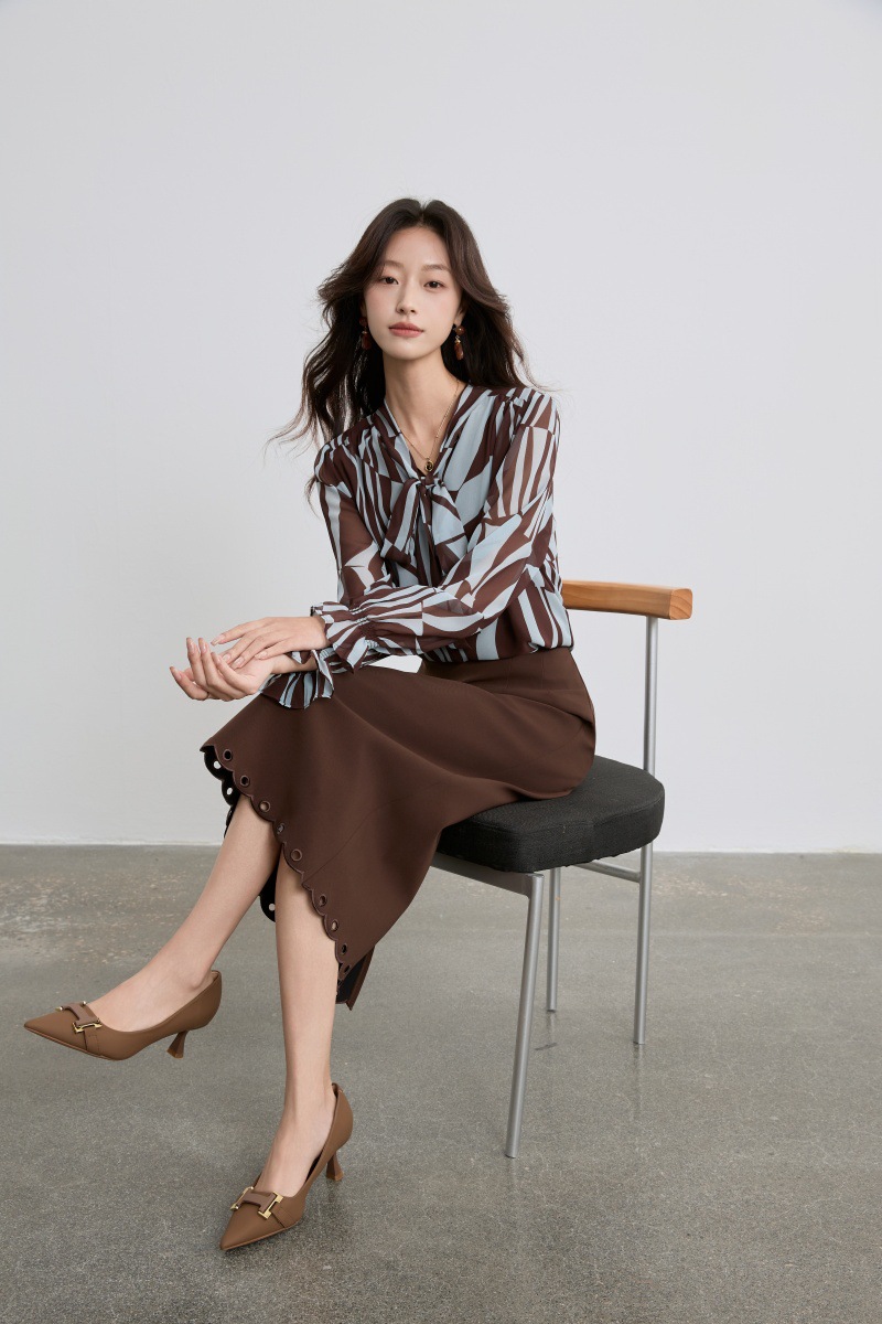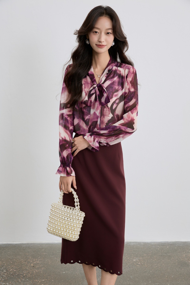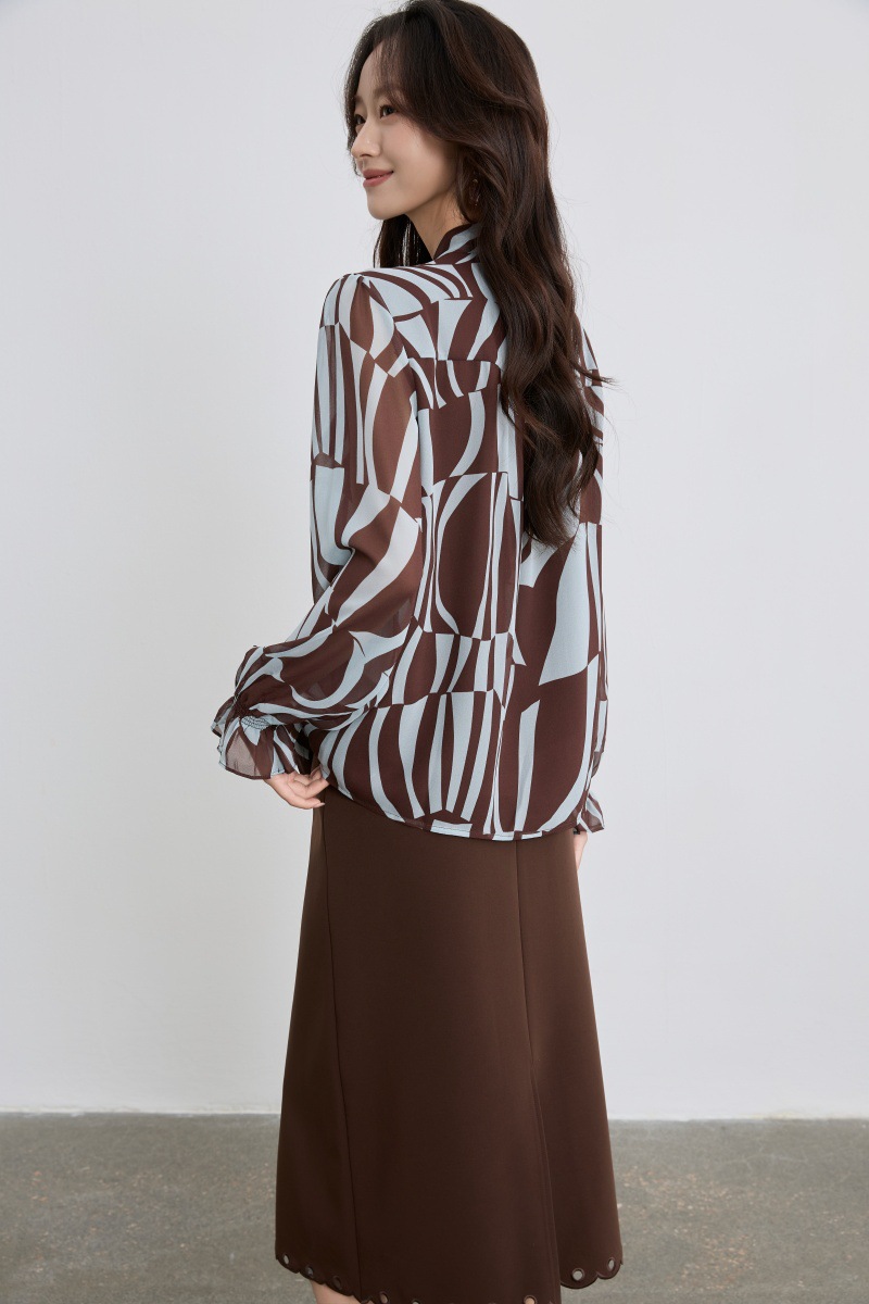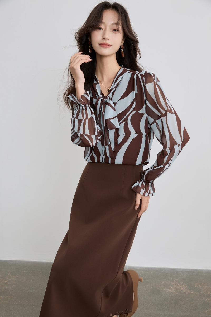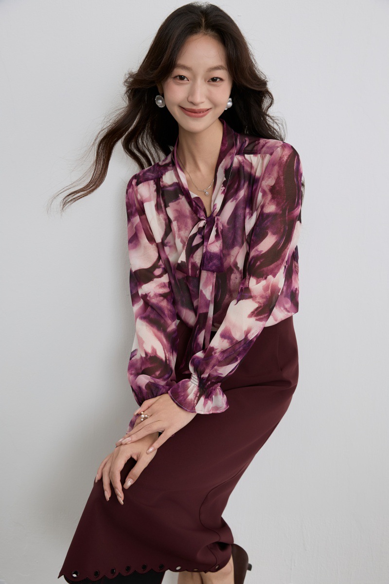 「自」全新升级【铂金会员146/天猫199/差价53】(51338)洛诗琳法式时尚印花衬衫2025秋季新款百搭V领雪纺上衣女