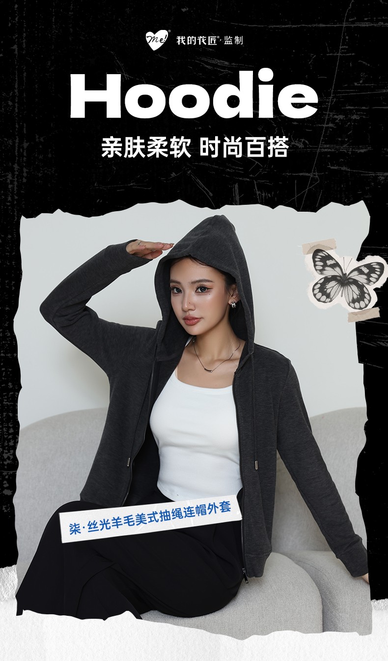【72小时发货】me!柒·丝光羊毛美式抽绳连帽外套