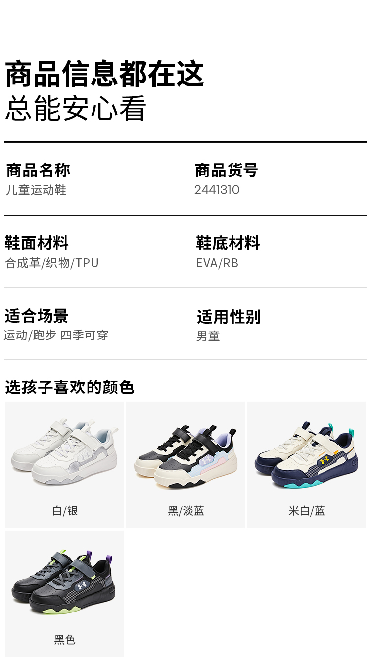 【12月-特惠福利】Under Armour安德玛 男女童板鞋2024春秋新款2441310 超低折扣