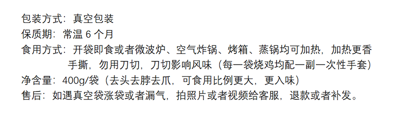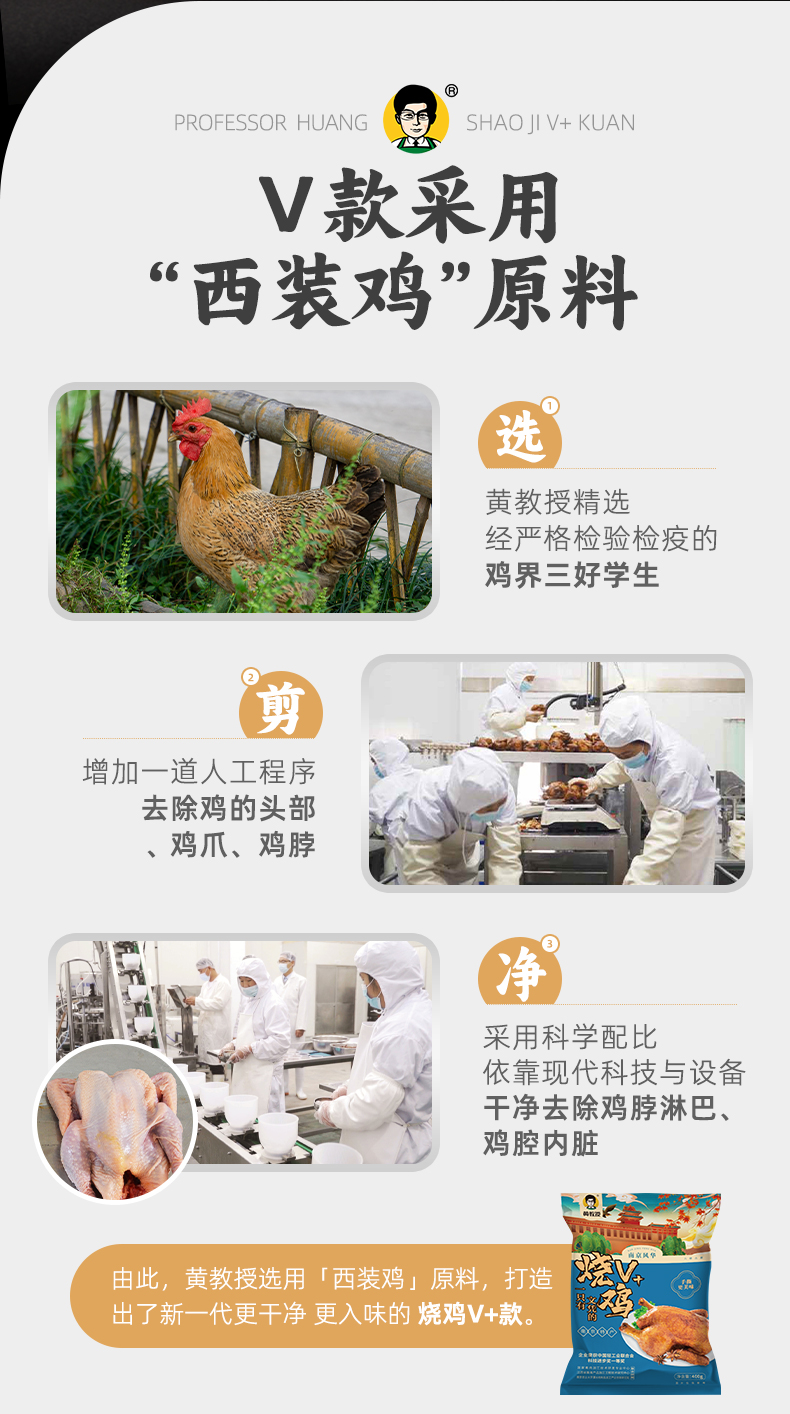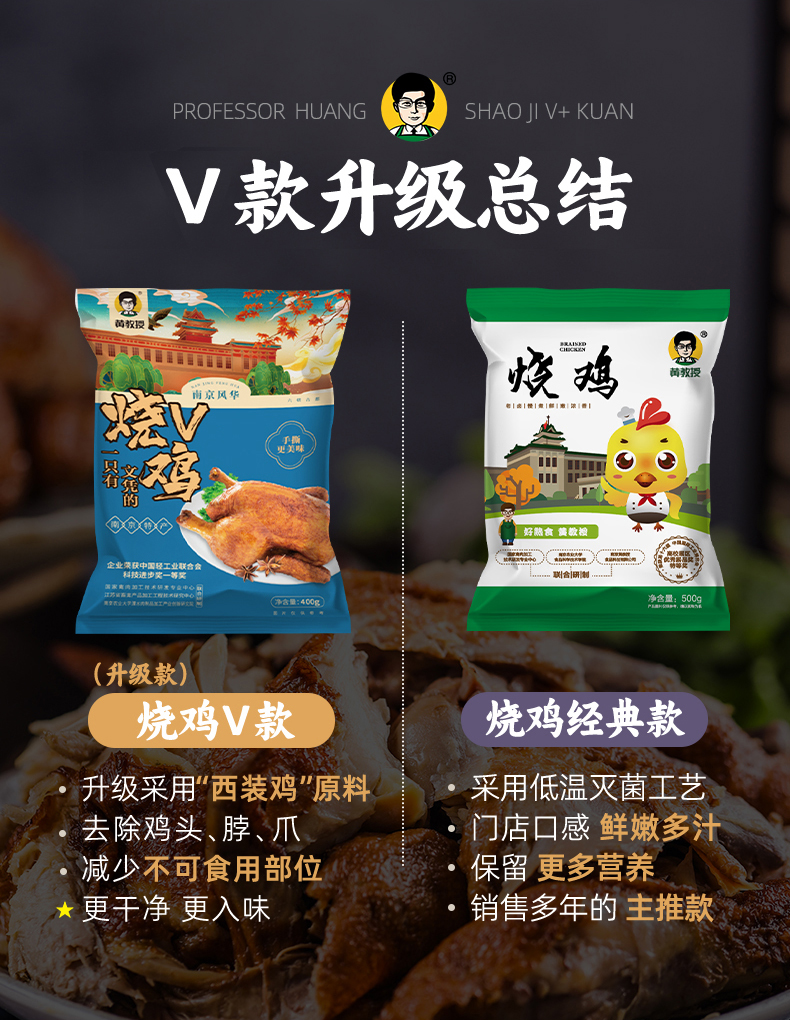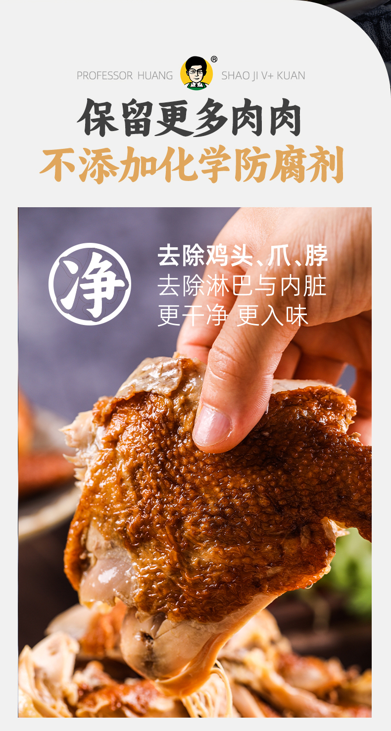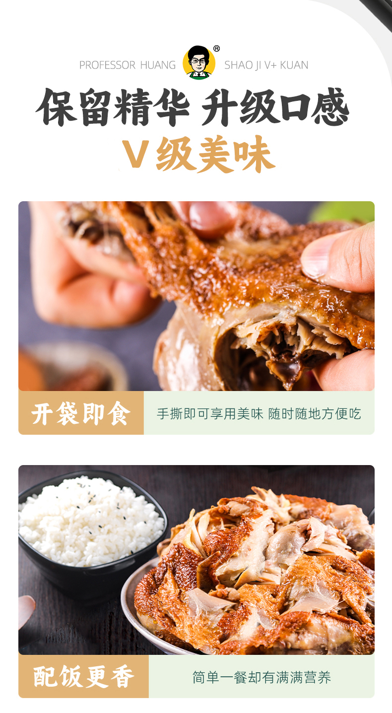 【去头去爪去脖 卤香透骨】黄教授烧鸡V款 手撕食用 开袋即食 口感升级