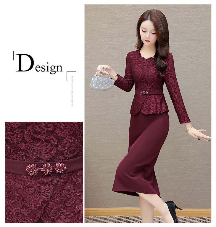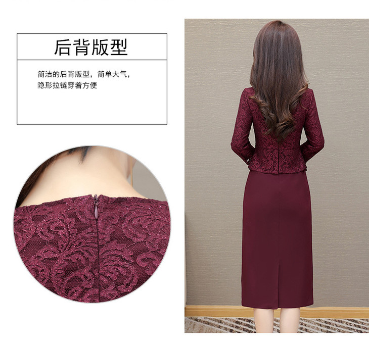 蕾丝拼接假两件连衣裙,气质修身优雅红色婚宴裙子QYM-JMYSCL8918