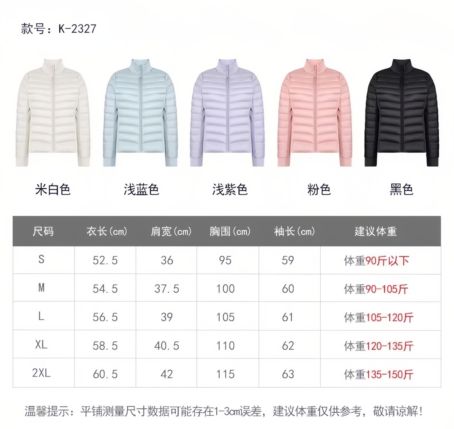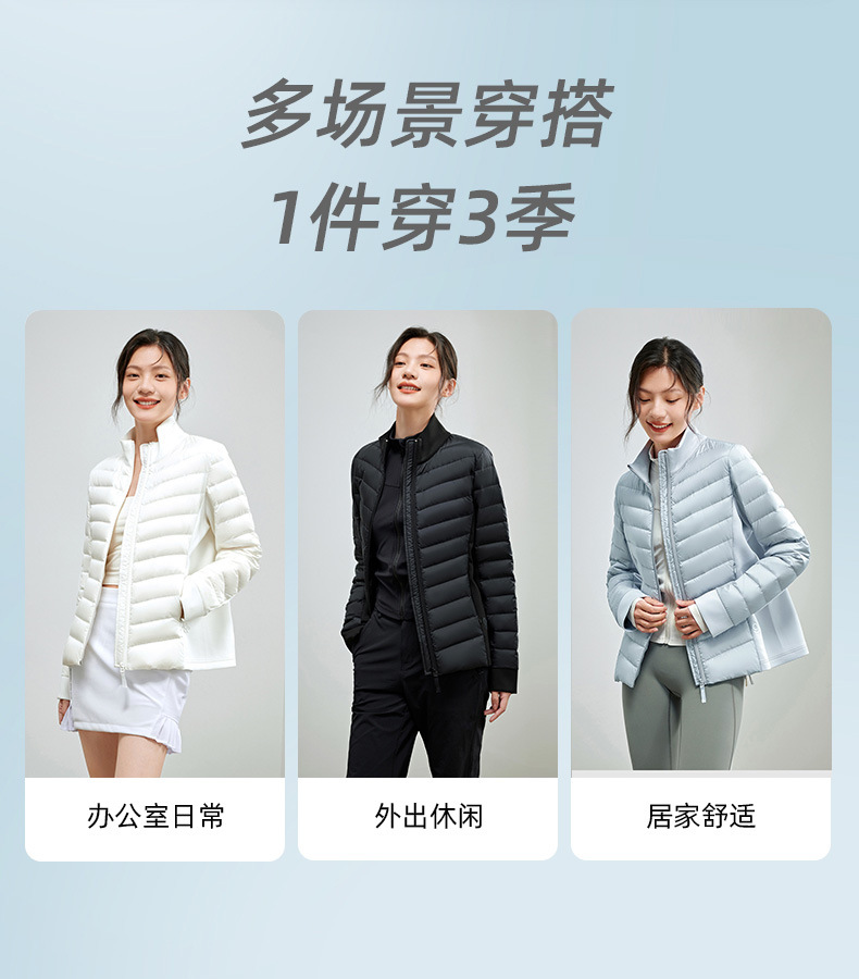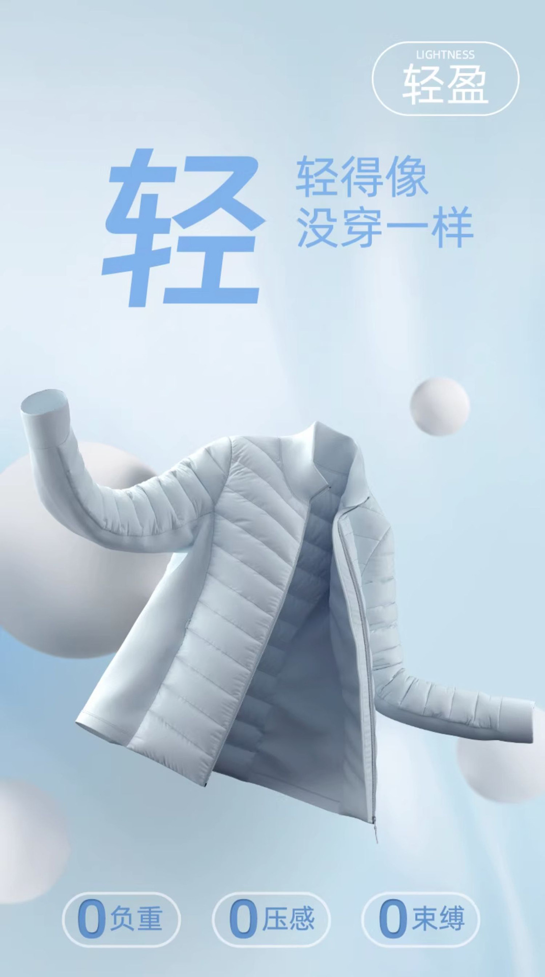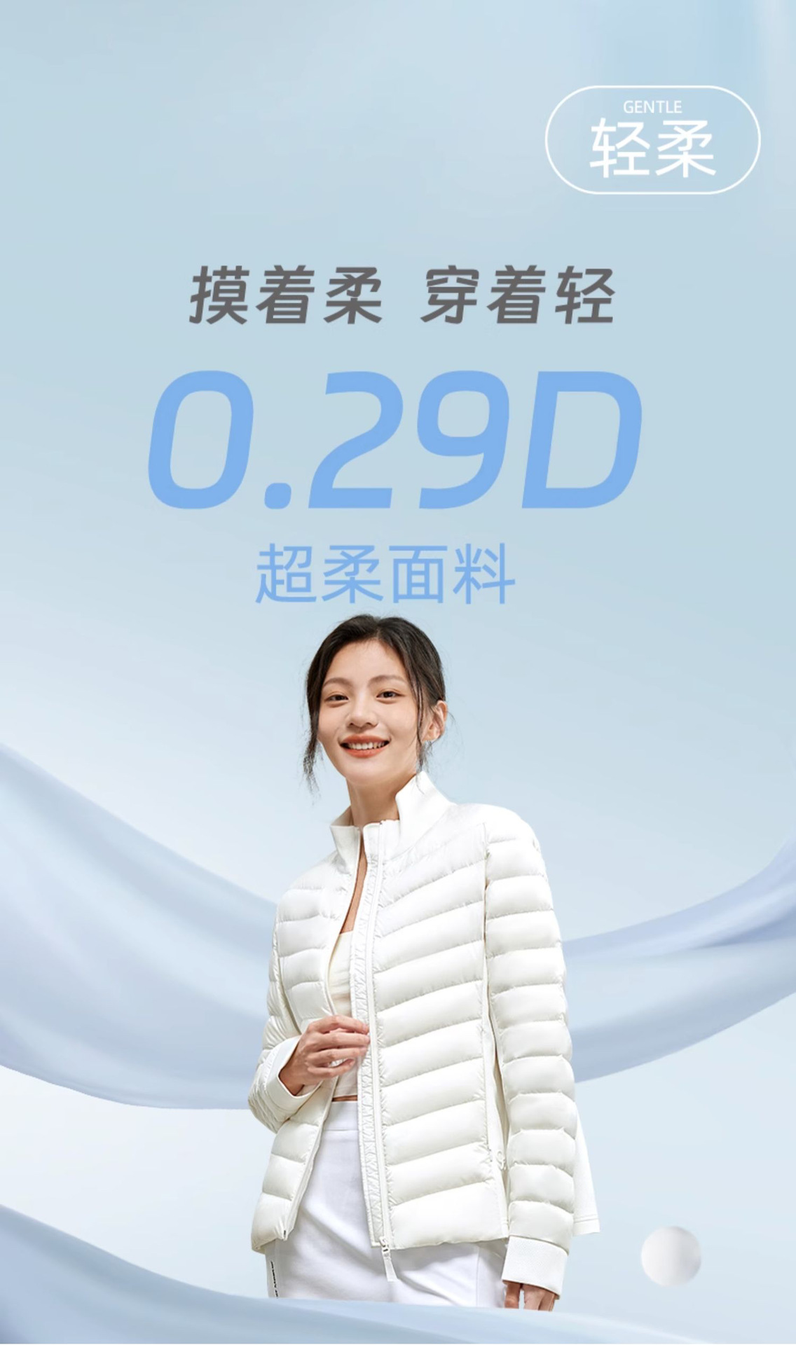 0.29D轻柔面料,摸着柔穿着轻,就算是轻薄款照样穿起来暖哦。