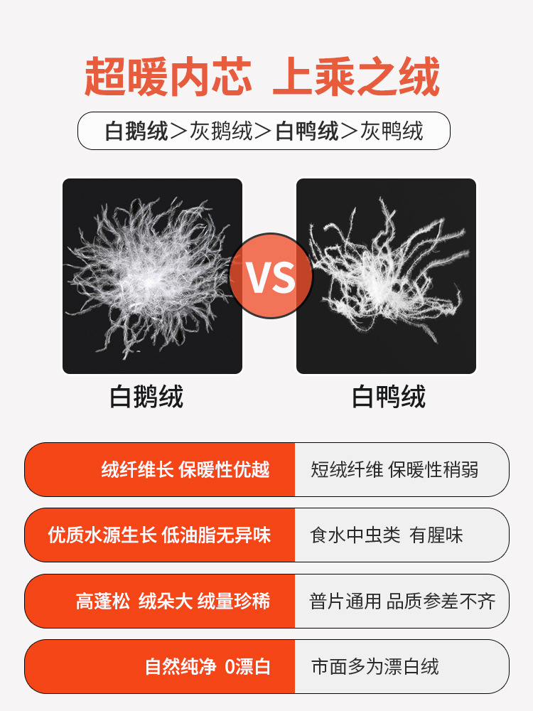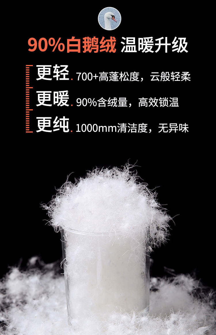 绒子含量90%白鹅绒填充,更轻盈更保暖~