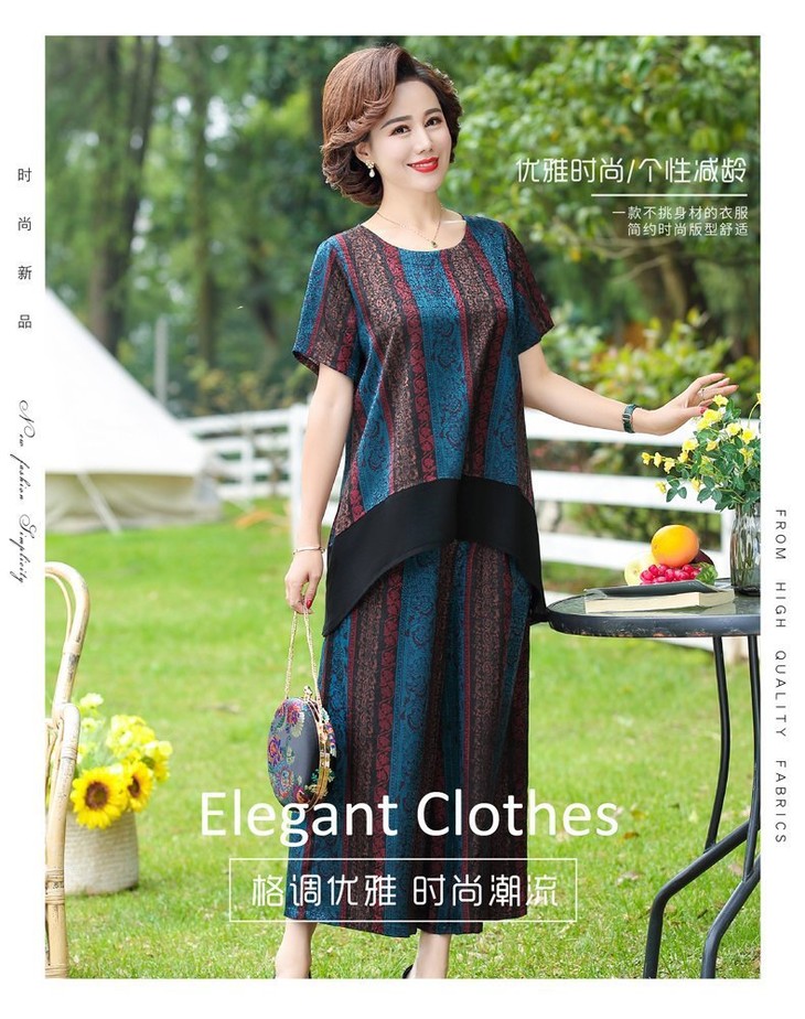 YCE-A945-2009时尚加大洋气印花妈妈套装