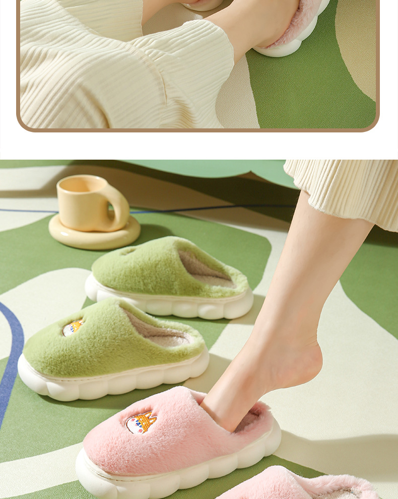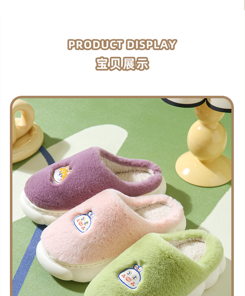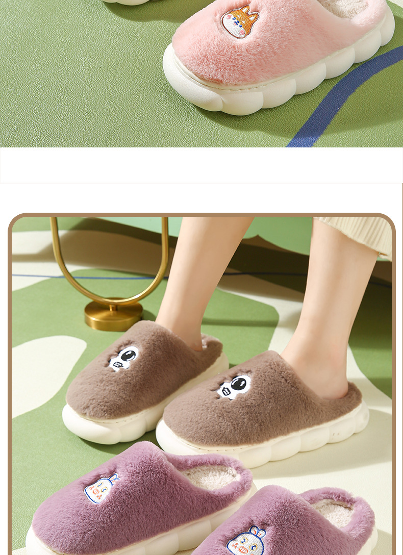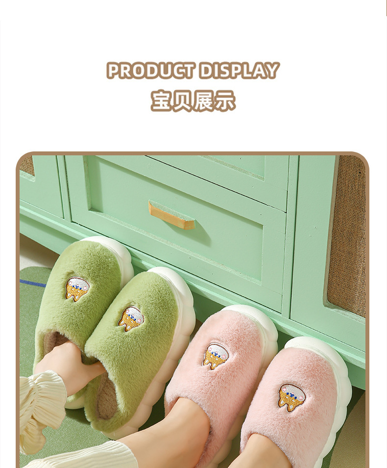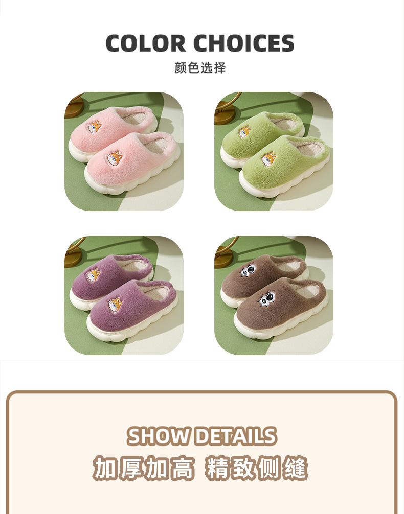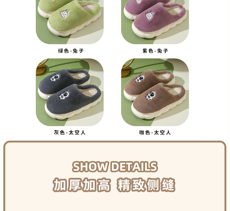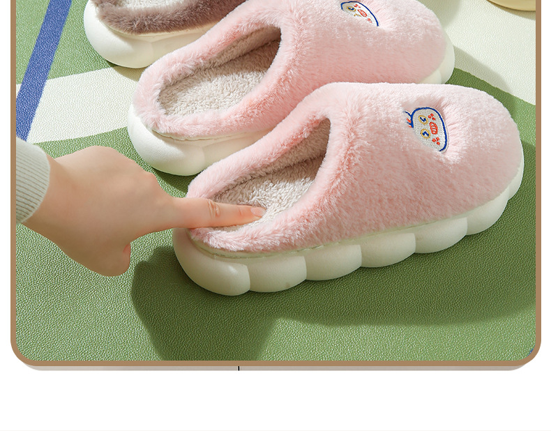 厚底棉拖鞋女冬季室内防滑软底家居家用情侣卡通毛绒月子拖鞋男冬