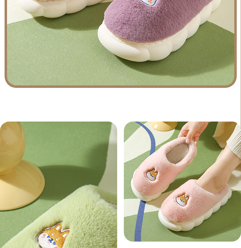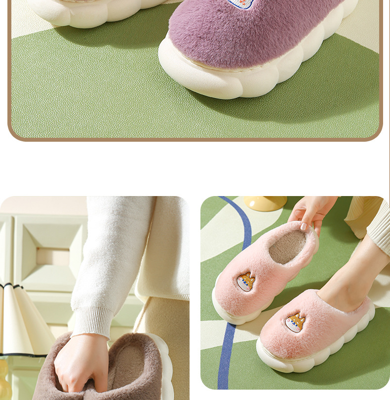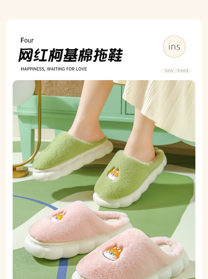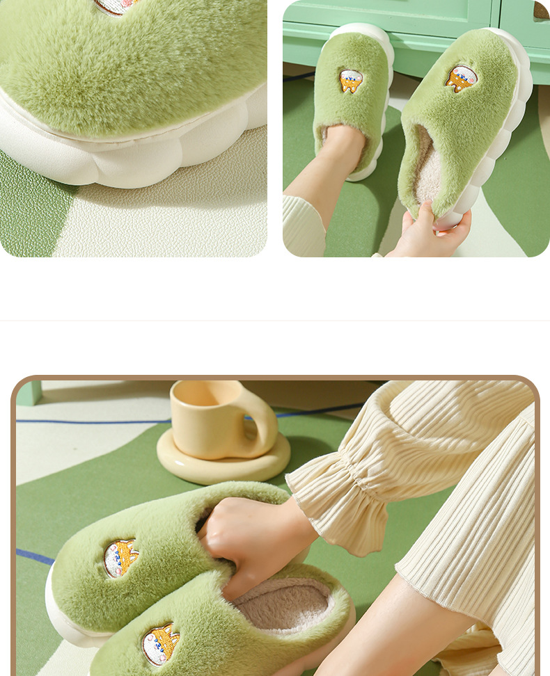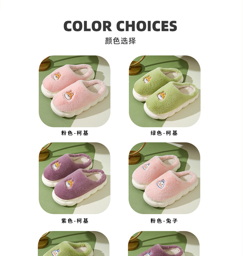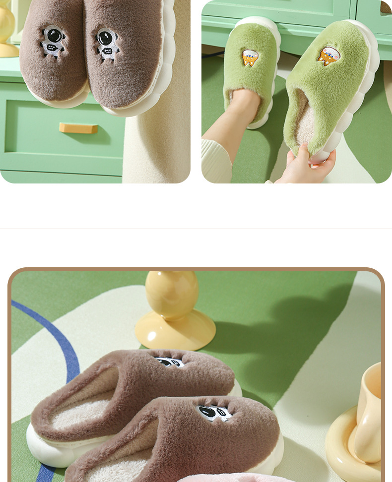 厚底棉拖鞋女冬季室内防滑软底家居家用情侣卡通毛绒月子拖鞋男冬