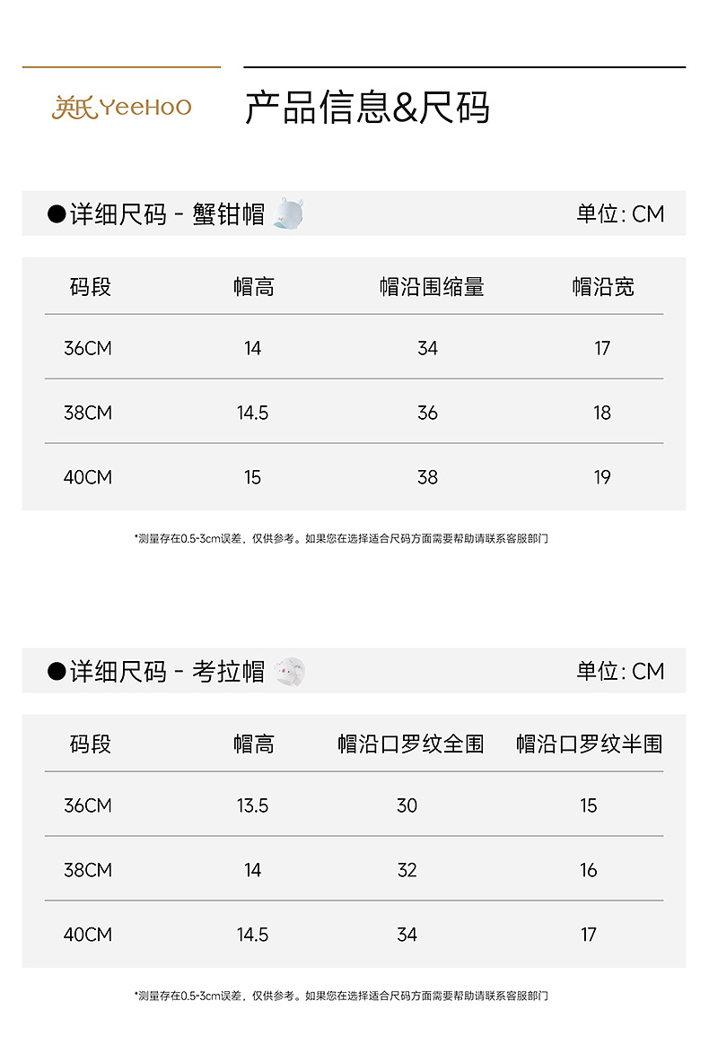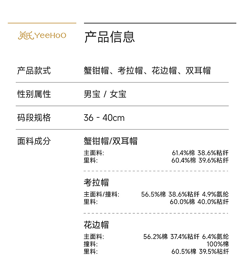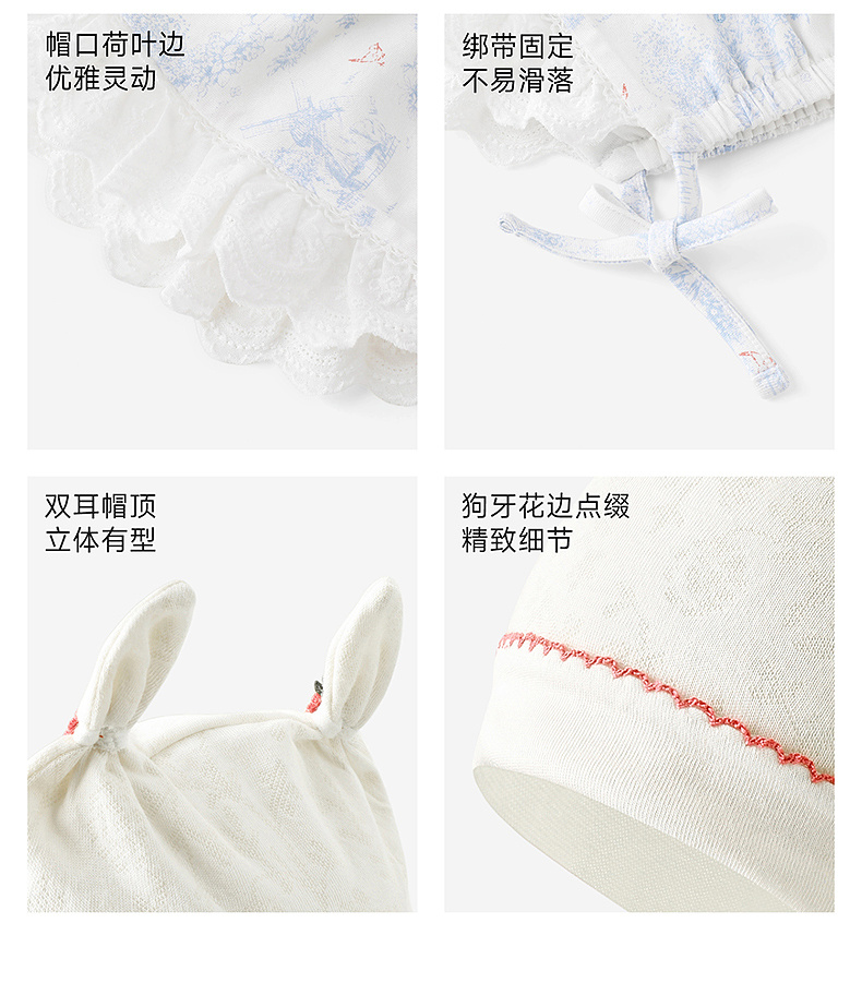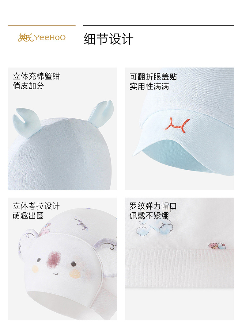 【商场同款】英氏婴儿帽子四季款男宝圆帽女宝贴面帽居家防着凉