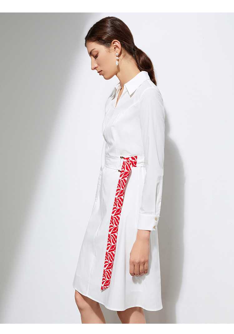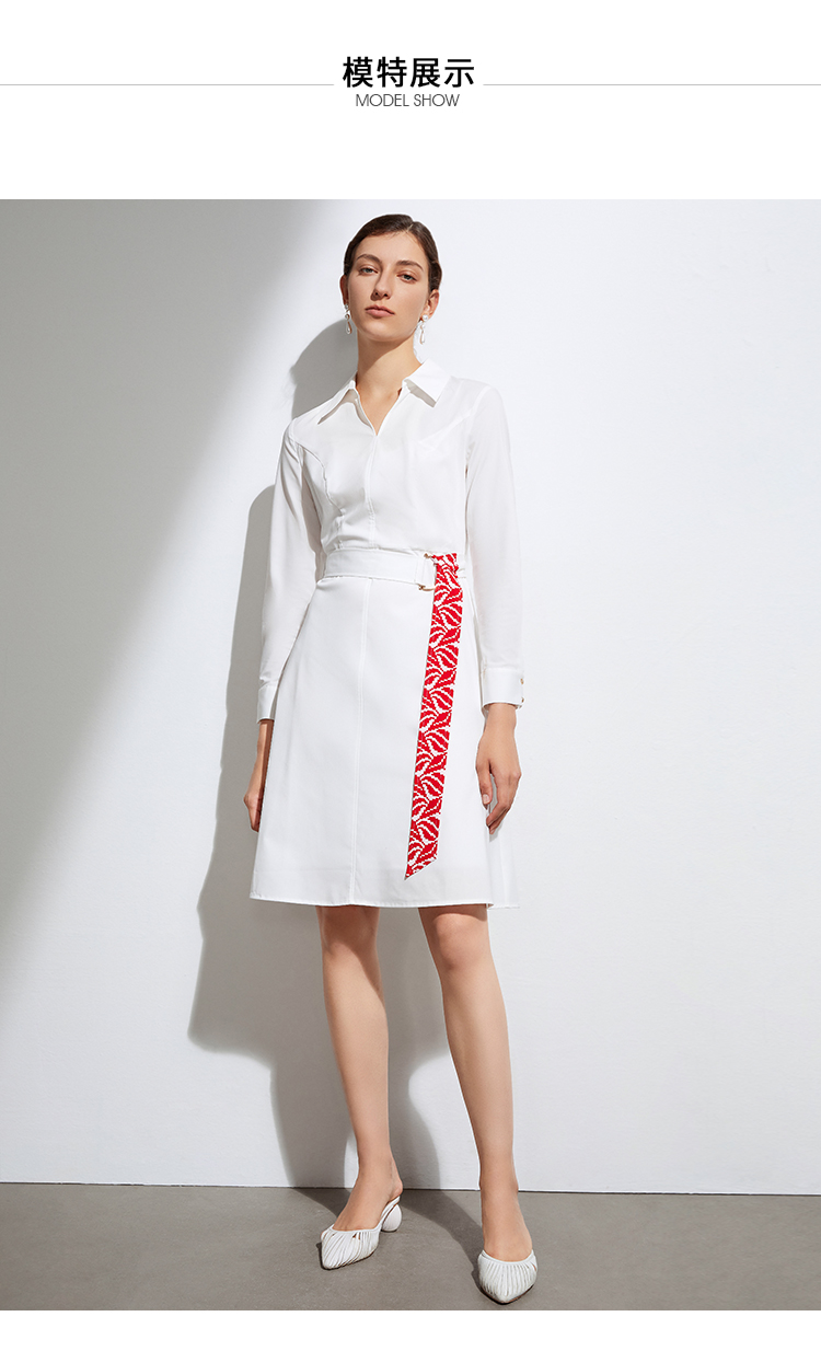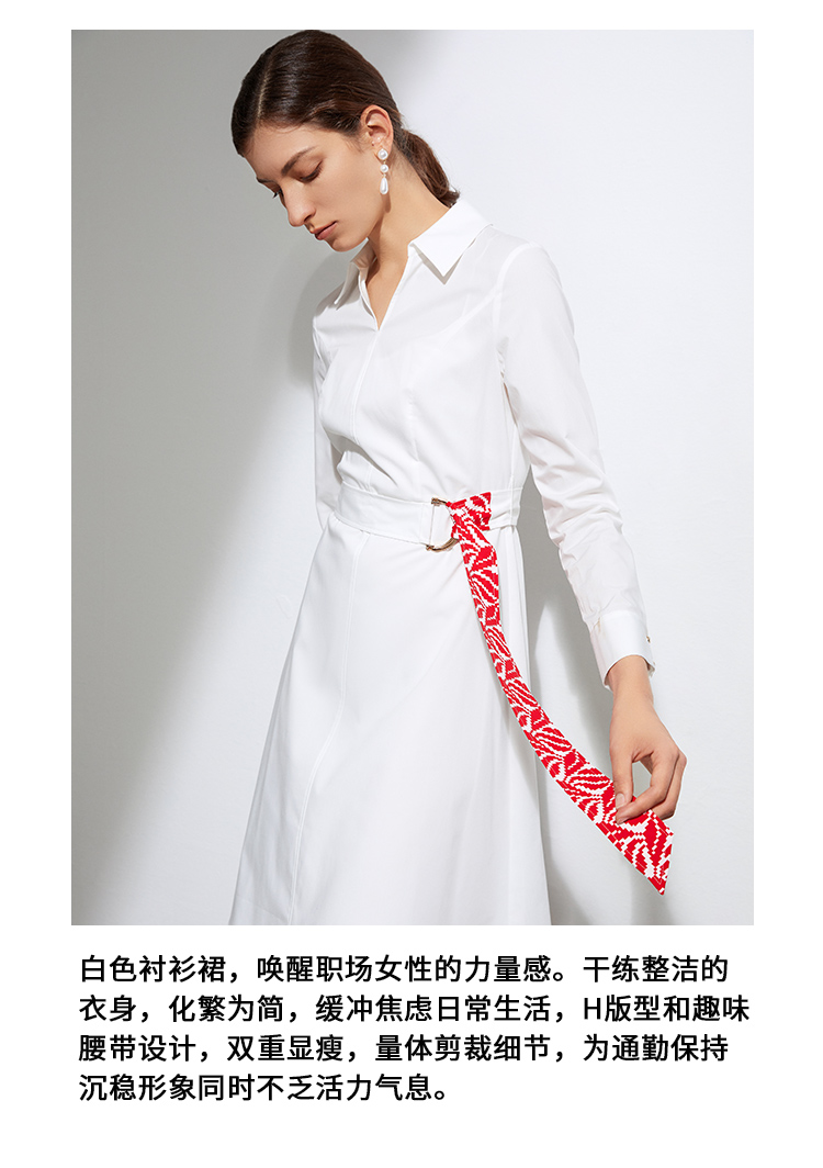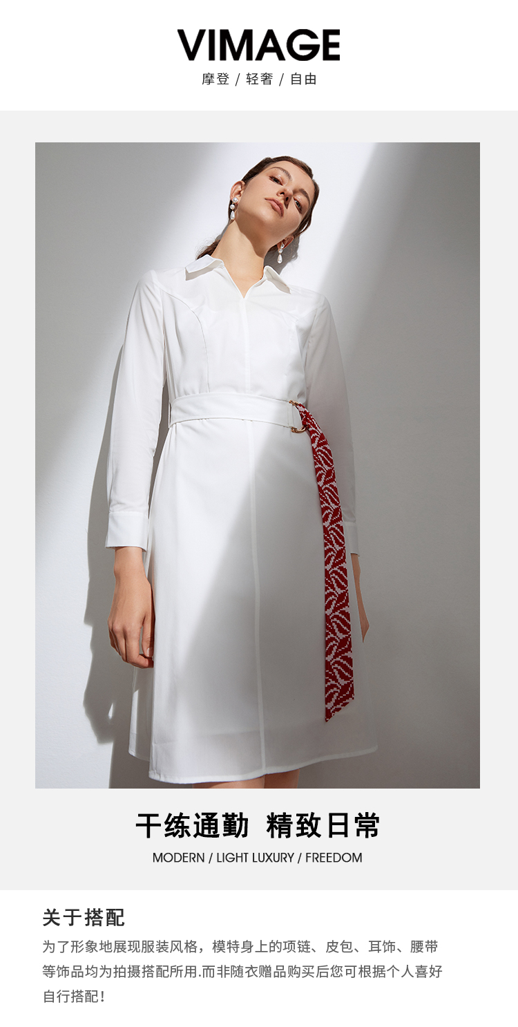 VIMAGE纬漫纪春季新款时尚个性撞色腰带收腰显瘦衬衫连衣裙女VA2107107