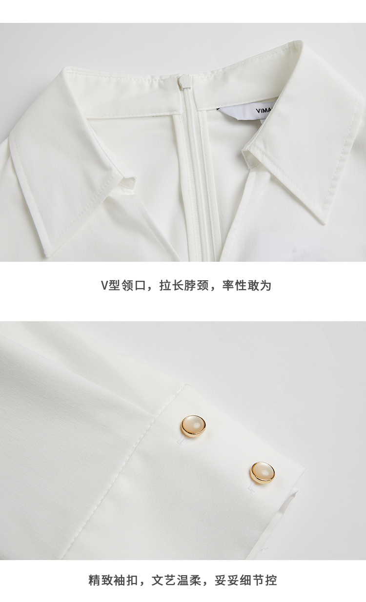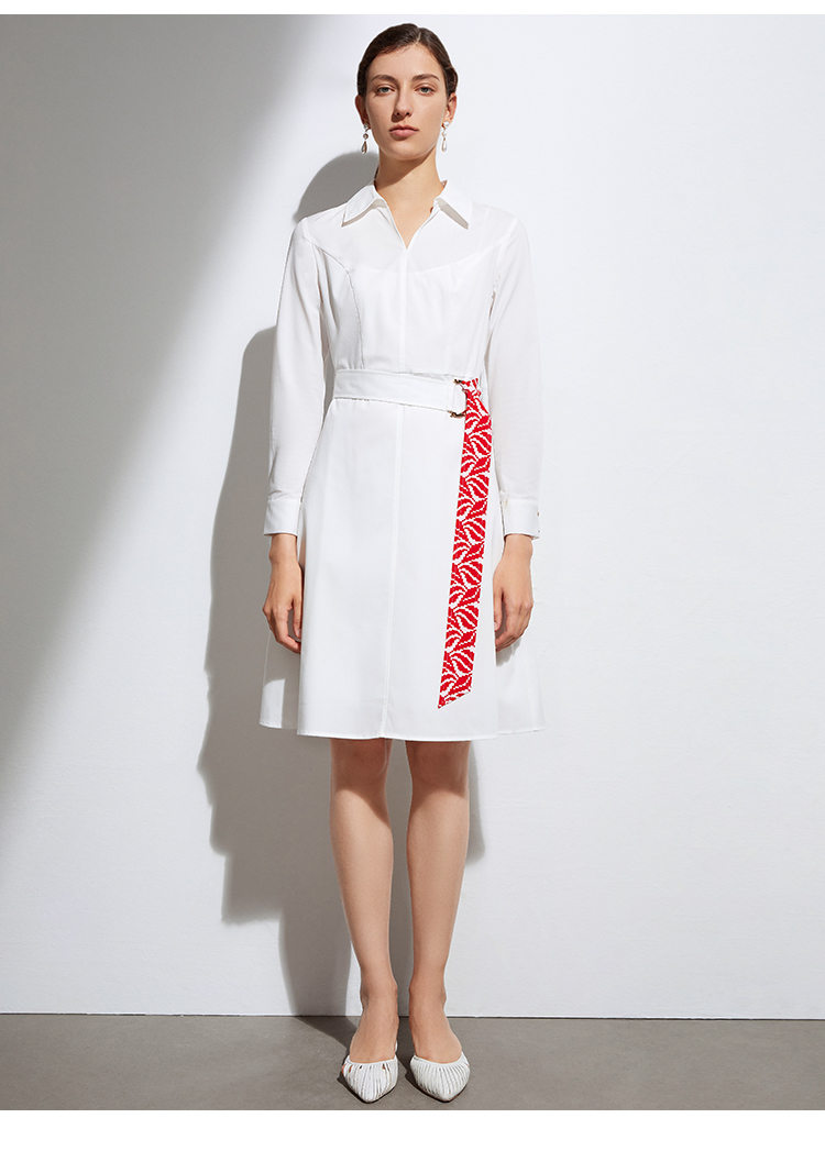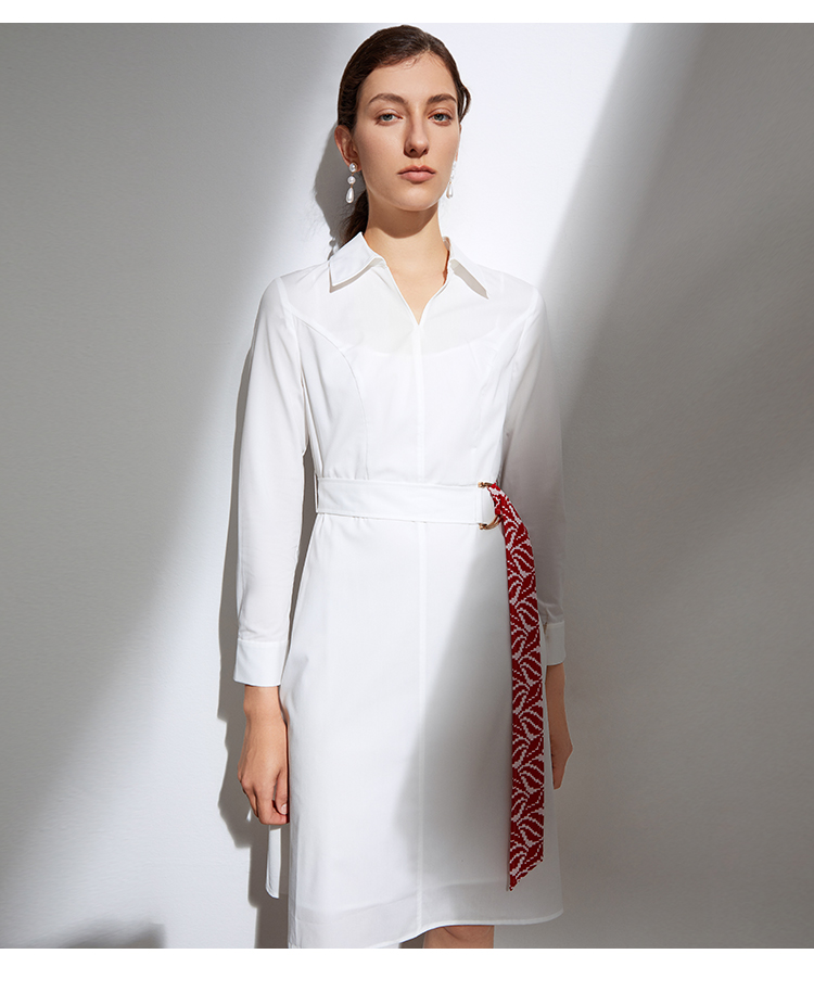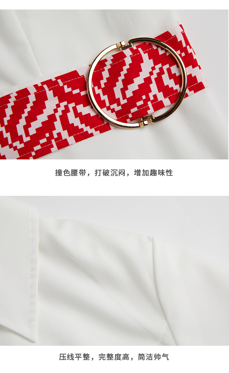 VIMAGE纬漫纪春季新款时尚个性撞色腰带收腰显瘦衬衫连衣裙女VA2107107