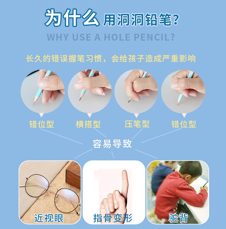 UNISUN 5盒洞洞铅笔 送推试橡皮+橡皮