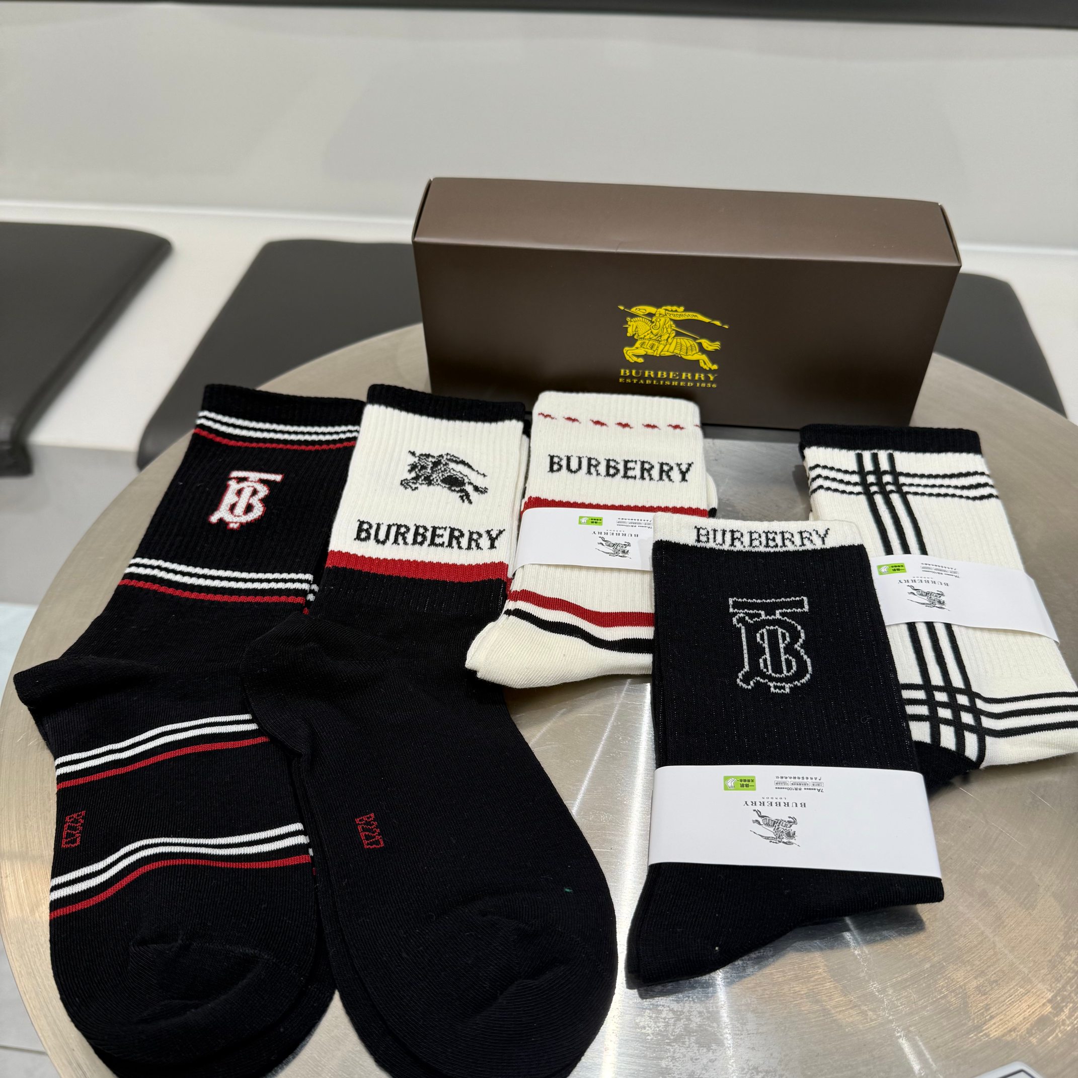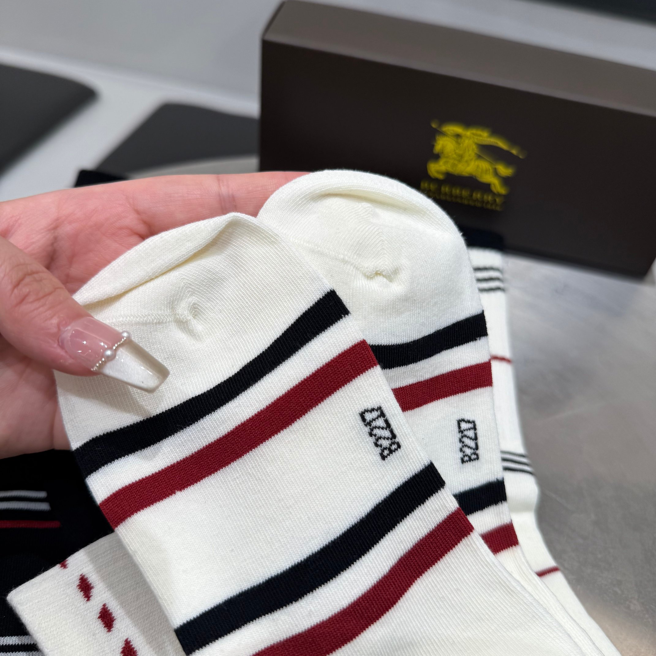 一盒五双,❤️❤️上新❤️❤️Burberry巴宝莉专柜同步版礼盒秋冬季中筒情侣袜!一盒五双!不同配色!每个颜色都非常简单大方、上脚舒适!巴宝莉刺绣logo,尽显高档!质量做工非常硬👍巴宝莉一直都是各路明星追捧的对象,此款袜子秋冬季穿是非常透气吸汗的!纯棉舒适透气度高!包装硬盒送人自留都是十分高档!非常简洁的一款商务休闲袜,绝对的百搭!一盒五双