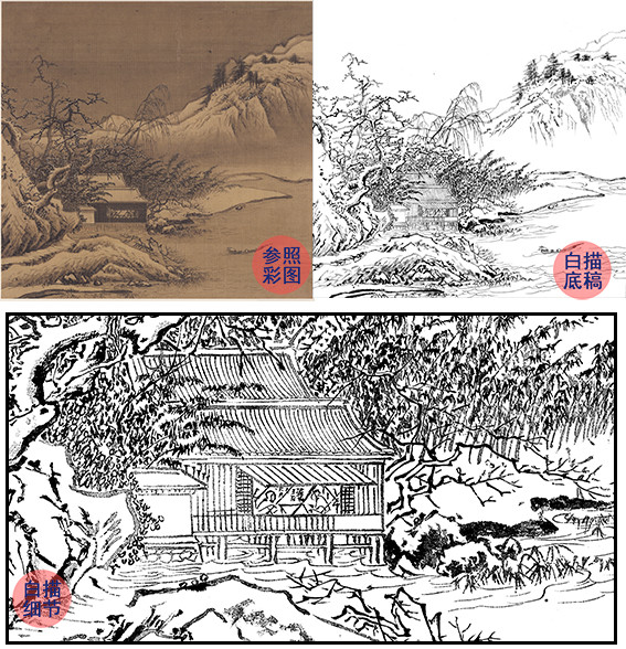 宋画山水白描底稿-斗方小品册页-夏圭《雪堂客话图》-多种白描尺寸可选-GS09