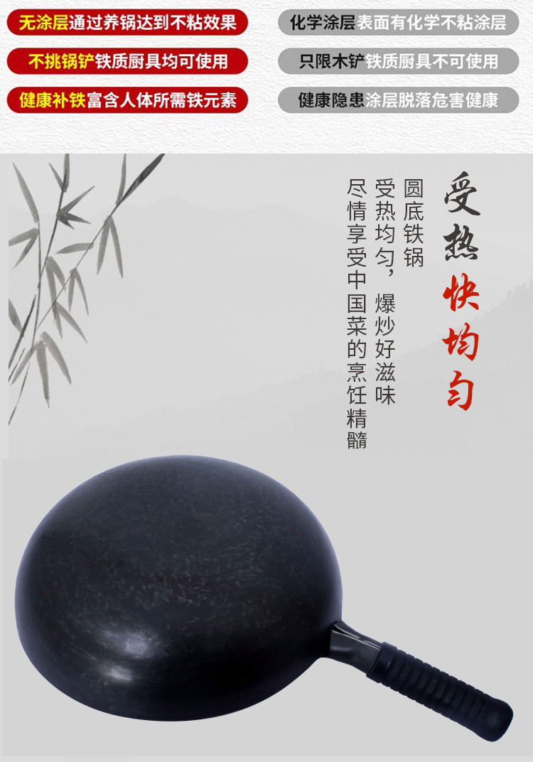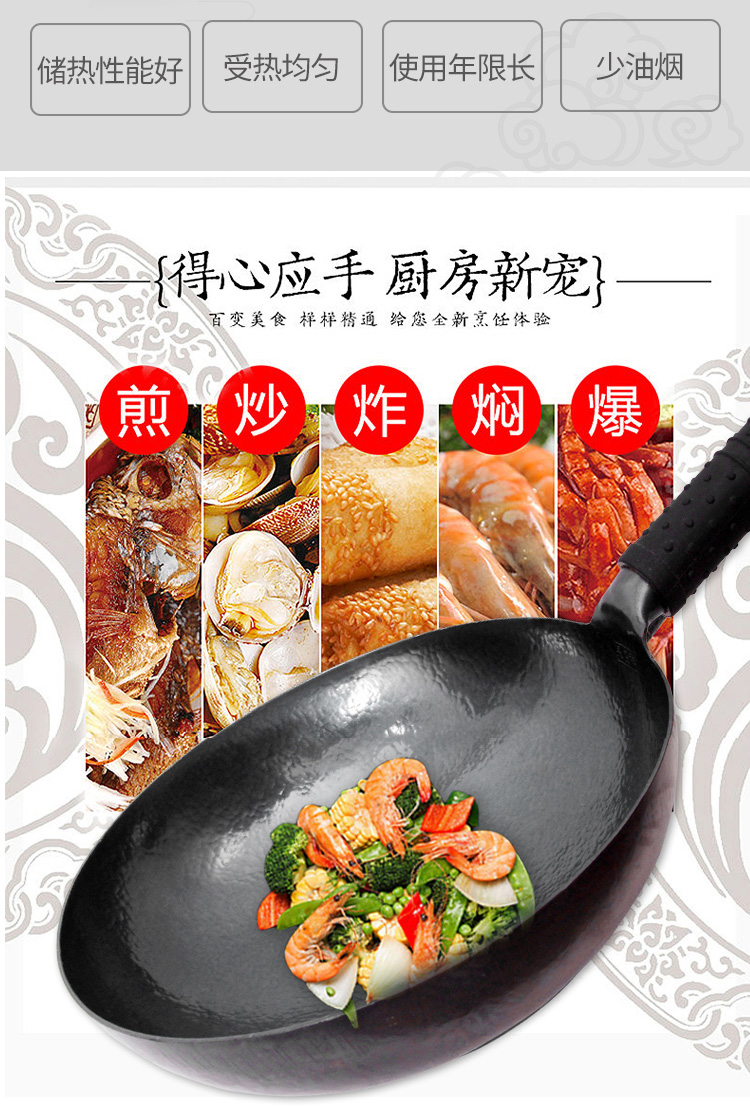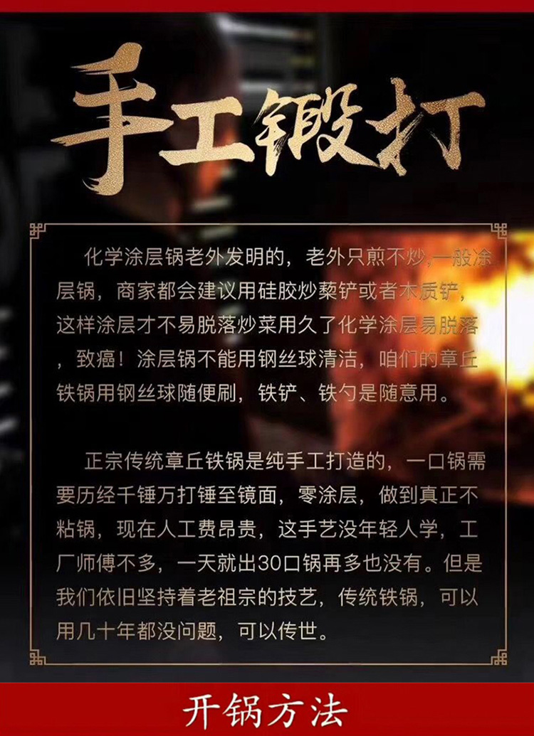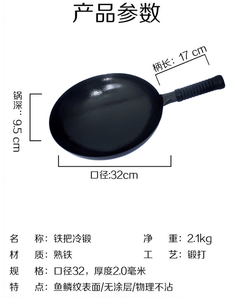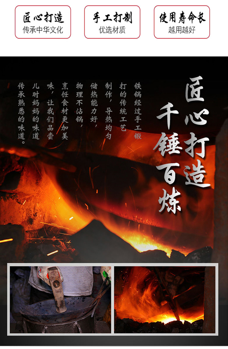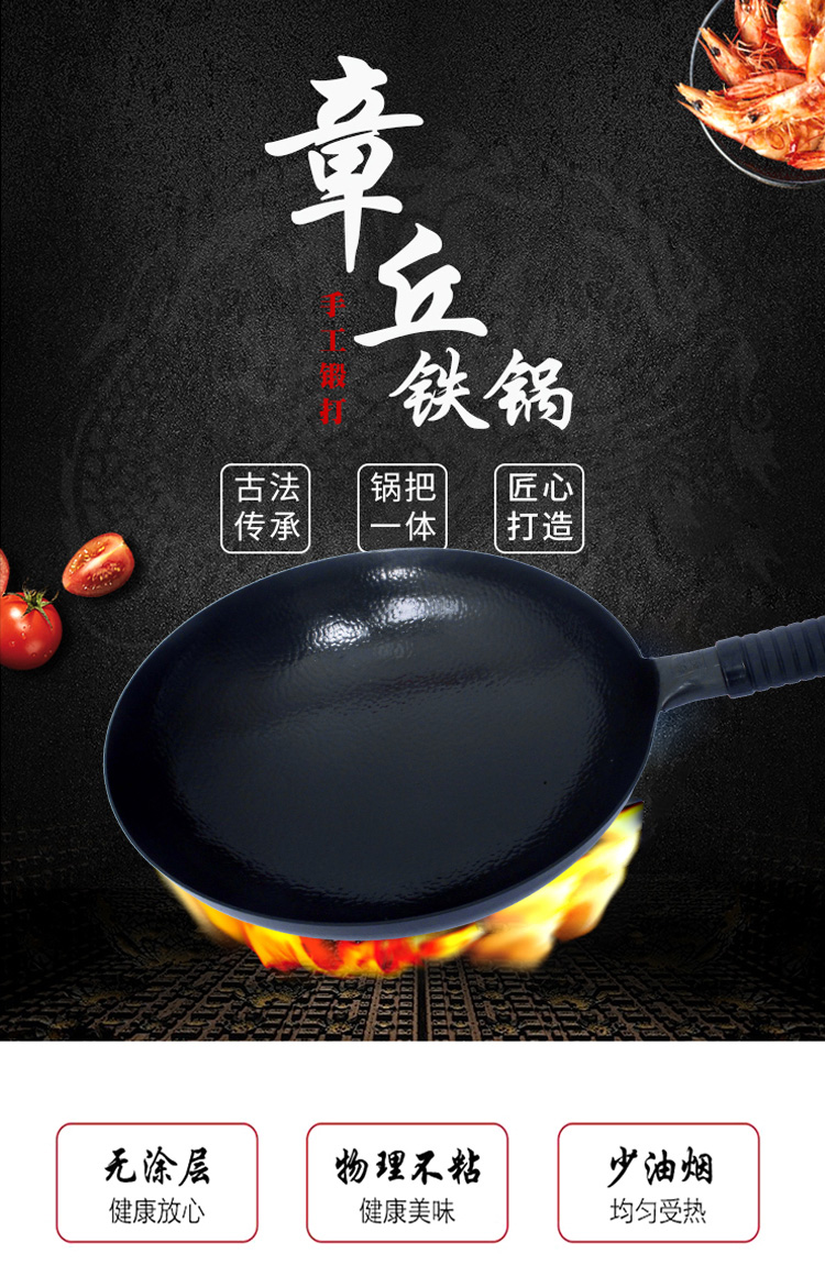 赠锅盖铲勺3件套【舌尖同款章丘铁锅】纯手工锻打32cm宗师不粘锅 产地溯源防伪 无化学涂层物理 不惧刮擦