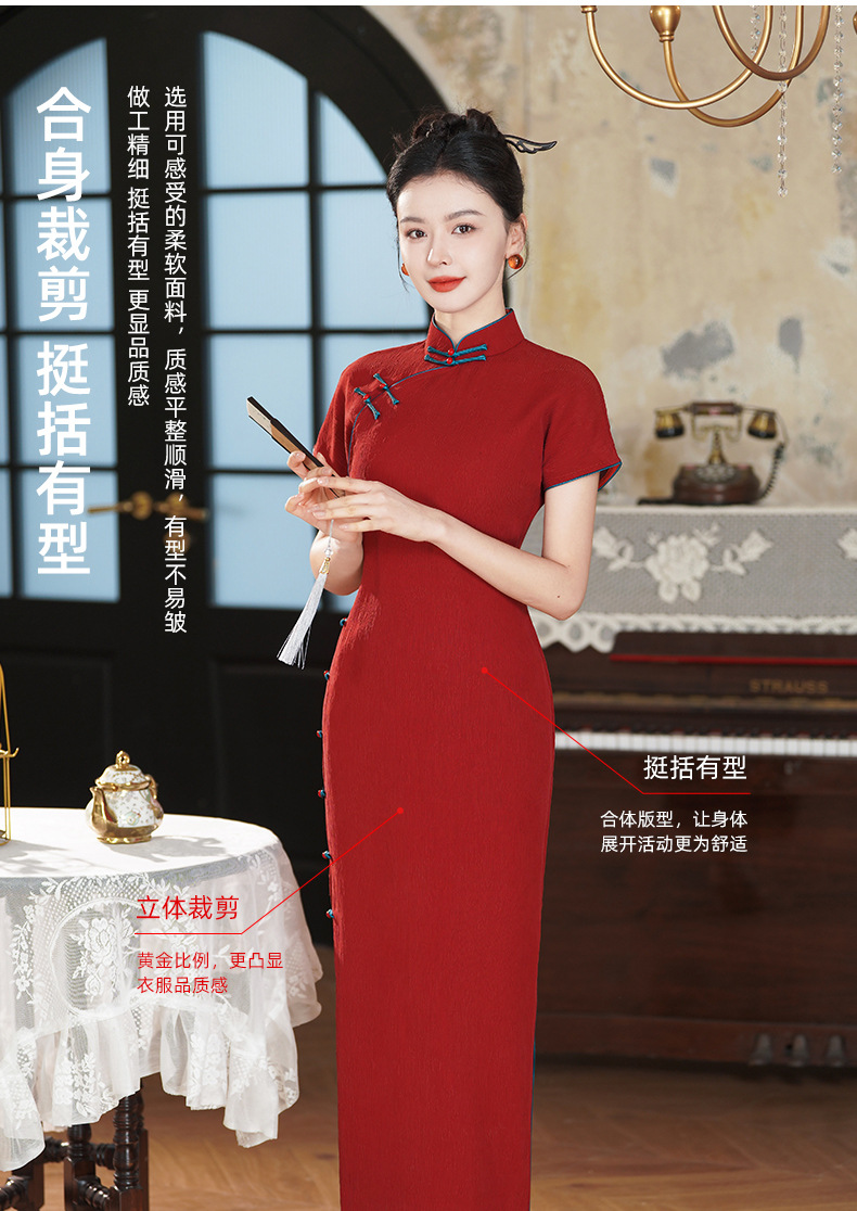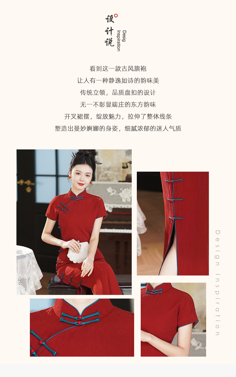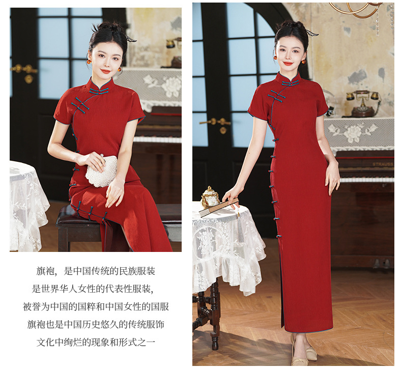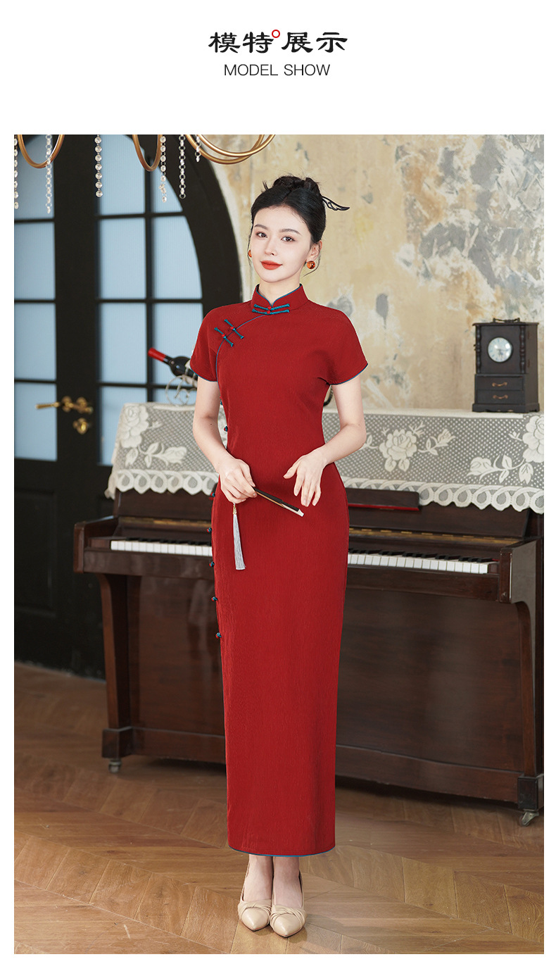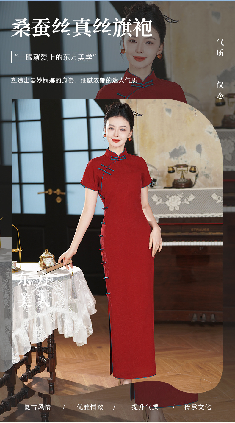 TZRY-新款爆款重磅香云纱桑蚕丝冠乐皱真襟旗袍裙宴会礼服日常优雅旗袍