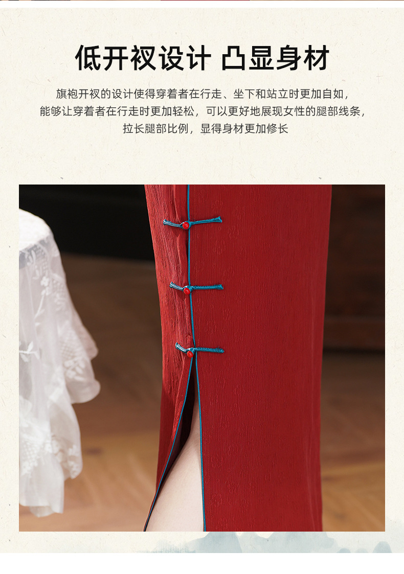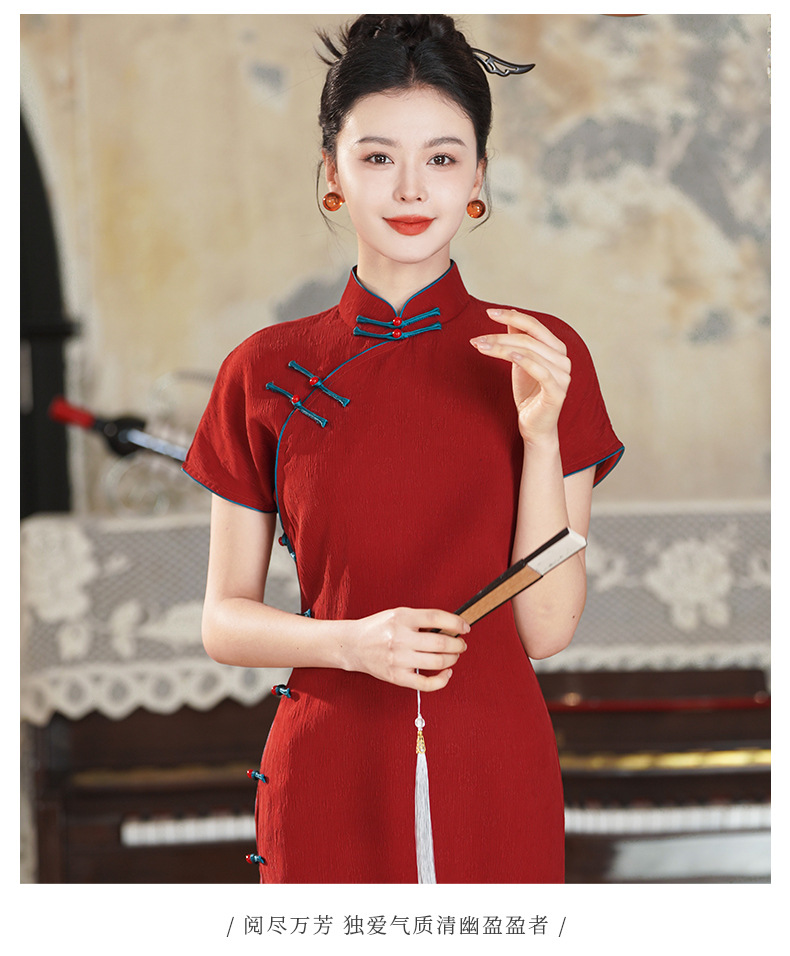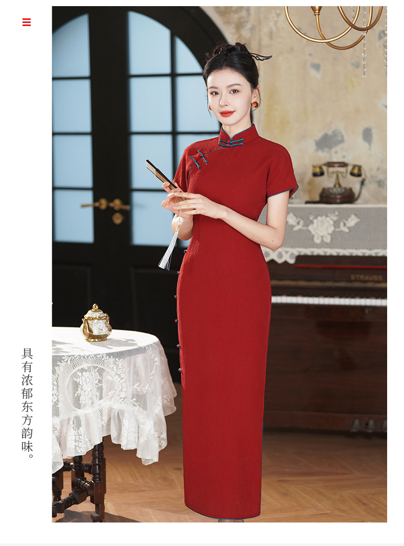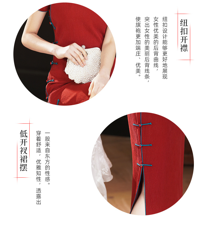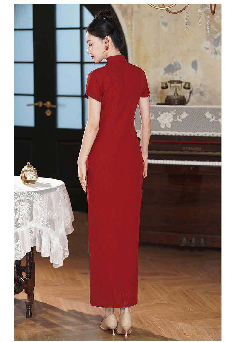 TZRY-新款爆款重磅香云纱桑蚕丝冠乐皱真襟旗袍裙宴会礼服日常优雅旗袍