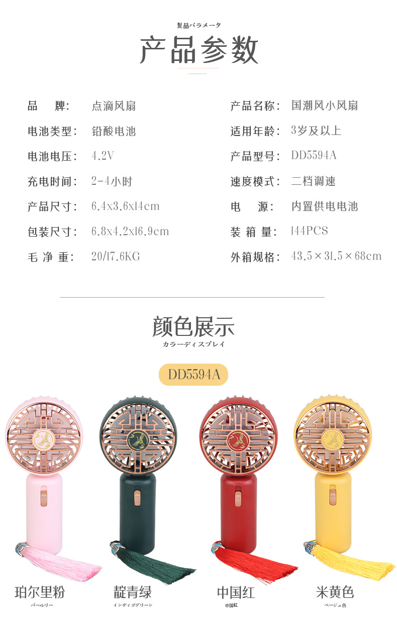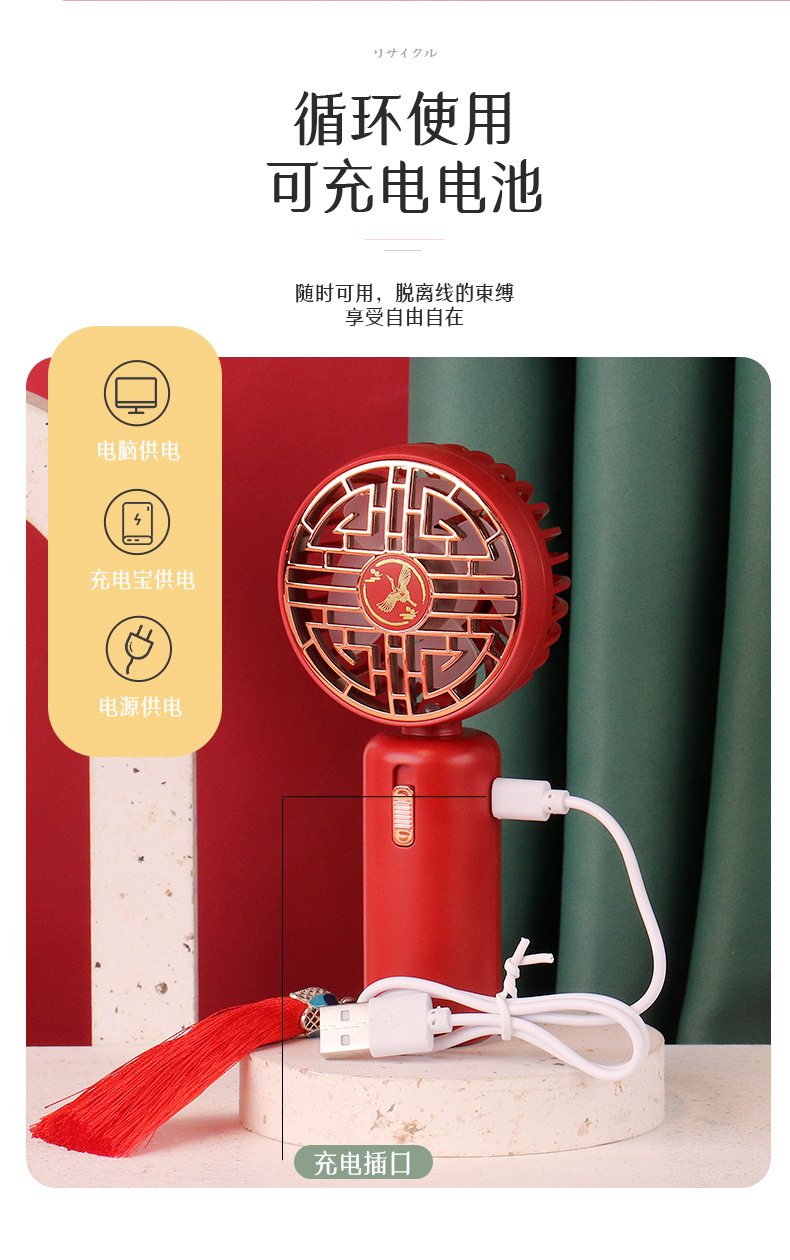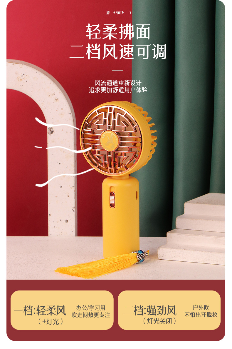 【29.9/任选2件送流苏】轻巧随行,国潮随行 点滴小风扇 国潮USB迷你充电手持风扇 充电·国潮风·调档 地推小礼物礼品-QQ