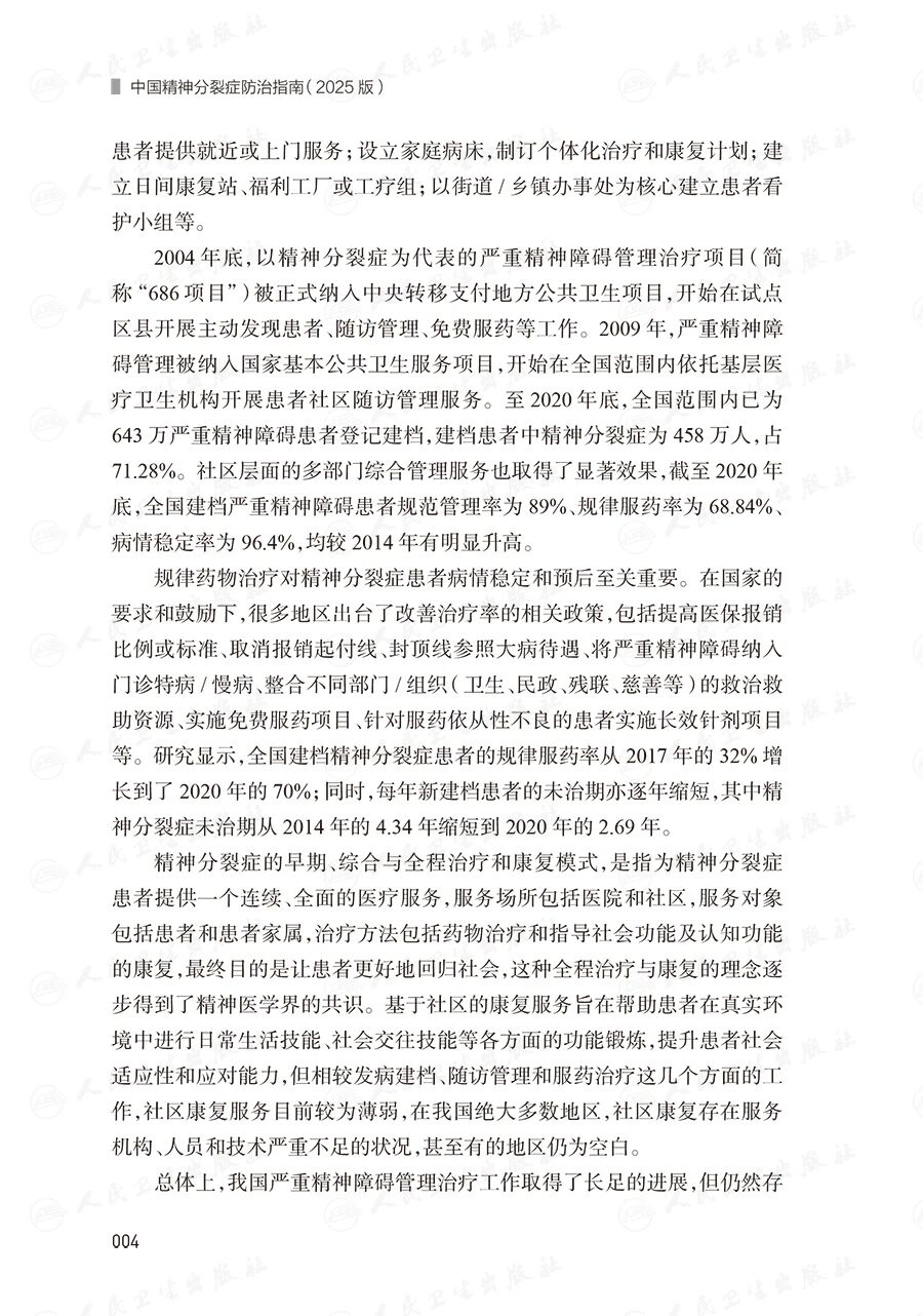 本指南充分体现了中国特色、中国模式、中国方案,本次更新增补了精神分裂症早期预防、识别评估和治疗管理,我国针对精神分裂症患者的防控目标变迁以及现有的防控资源和政策等相关内容,为精神分裂症患者的临床诊疗策略的制订提供重要帮助。