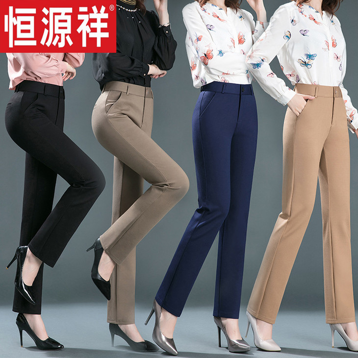 HSS-6541恒源祥高腰直筒裤弹力大码西装裤中老年女裤