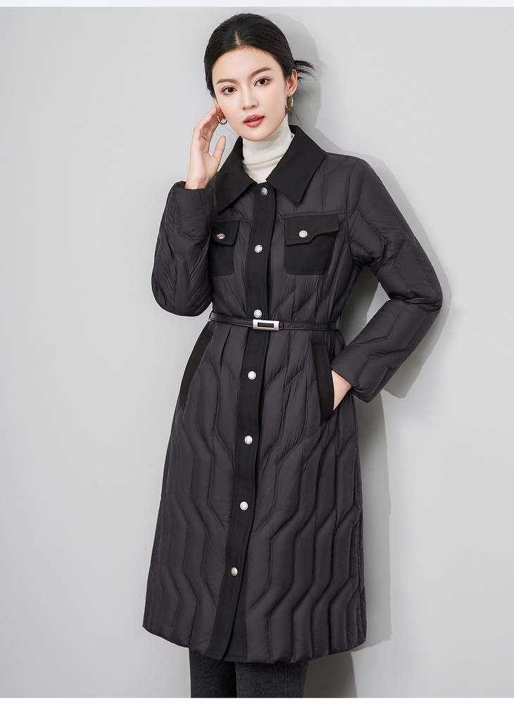 轻奢90白鹅绒修身显瘦腰带过膝长款羽绒服防风保暖WLZD2514407 商品图0