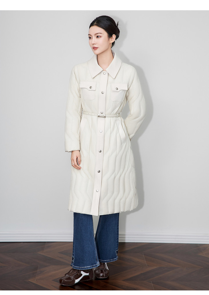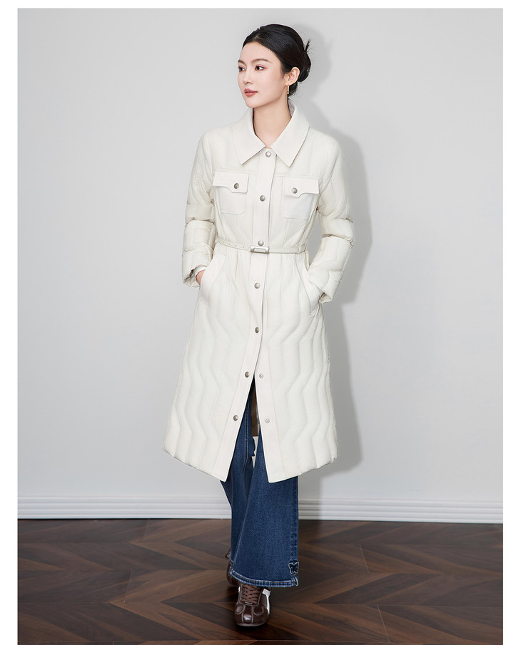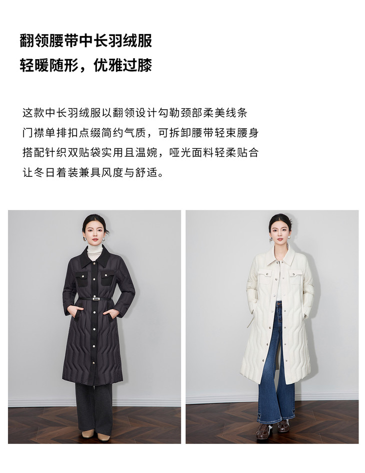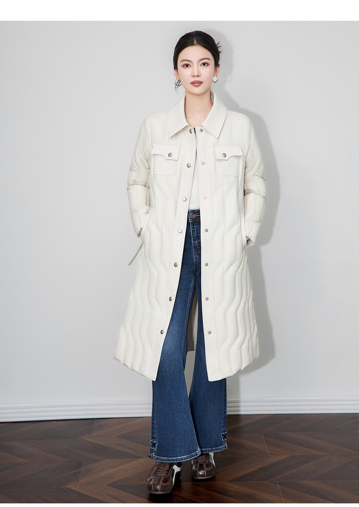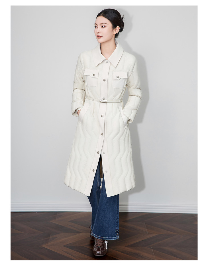 轻奢90白鹅绒修身显瘦腰带过膝长款羽绒服防风保暖WLZD2514407 商品图2