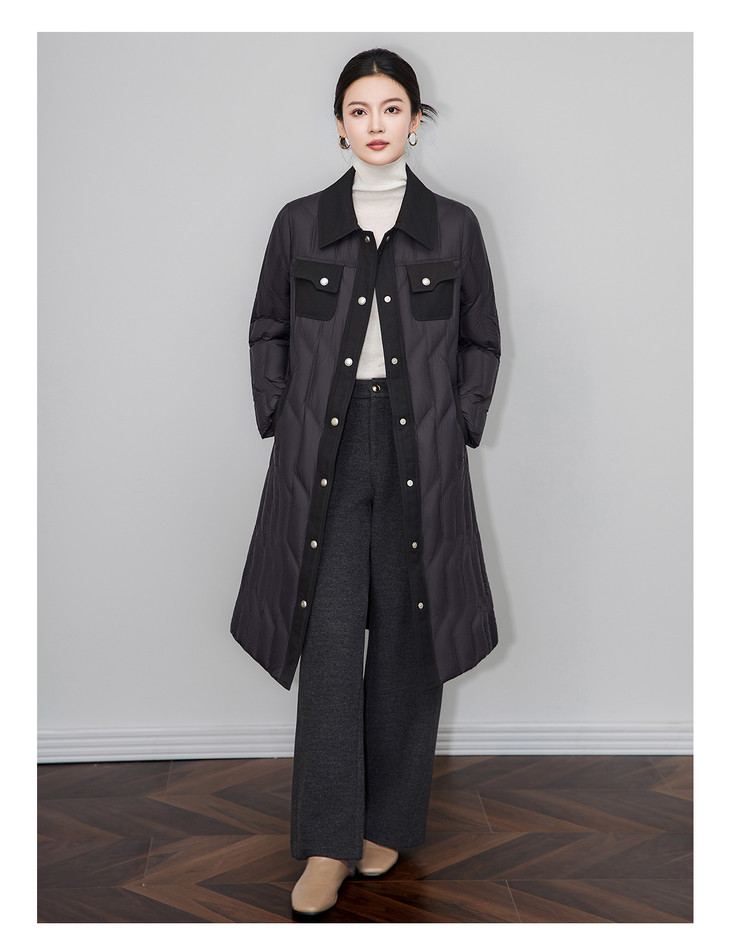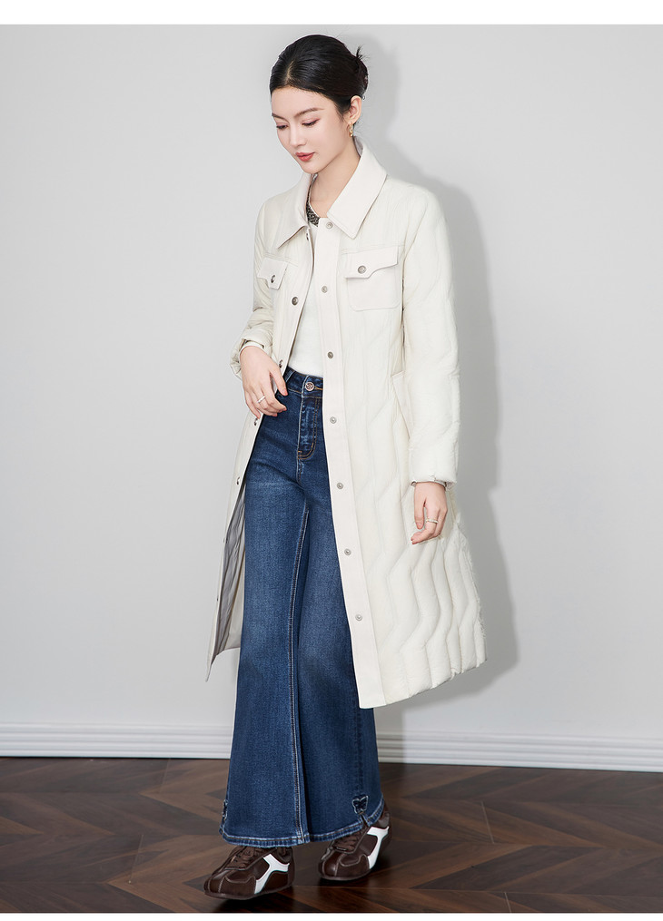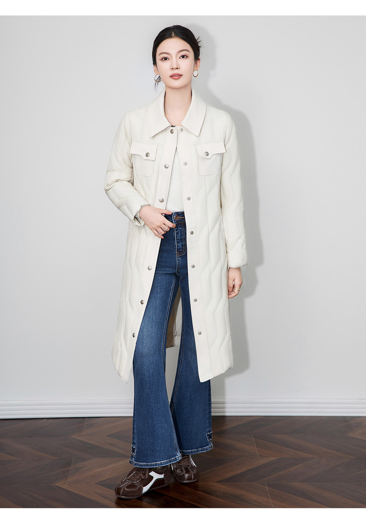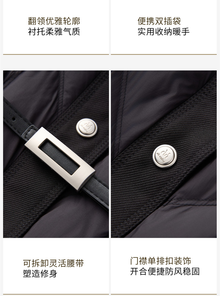 轻奢90白鹅绒修身显瘦腰带过膝长款羽绒服防风保暖WLZD2514407 商品图2
