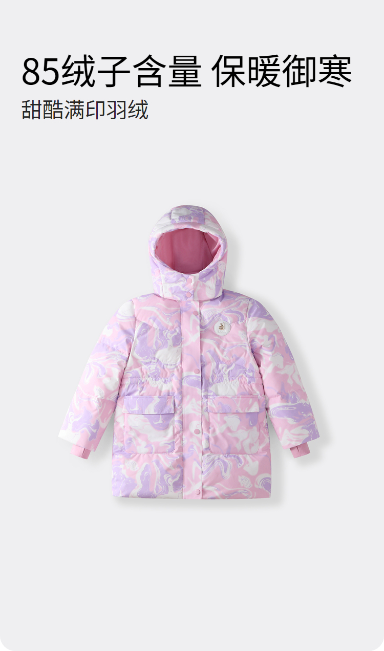 【御寒-5~5℃】女童甜酷满印羽绒外套冬季新款安奈儿童装实体店同款AG445842