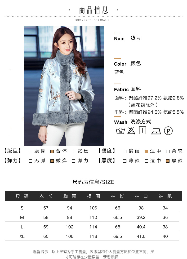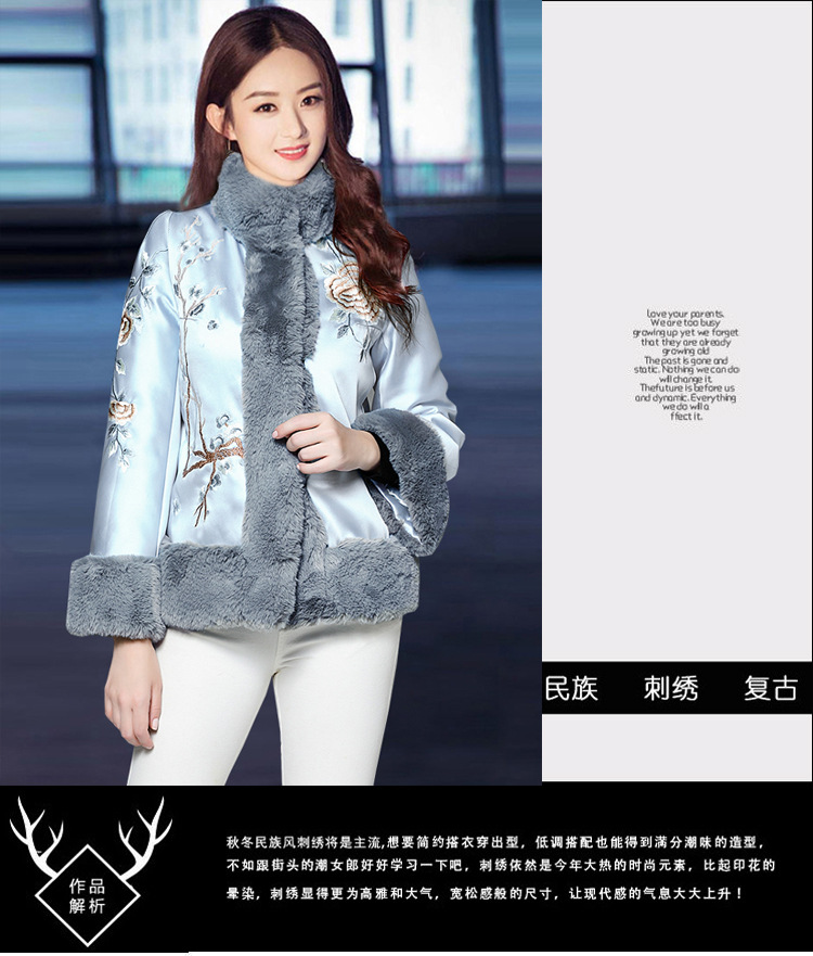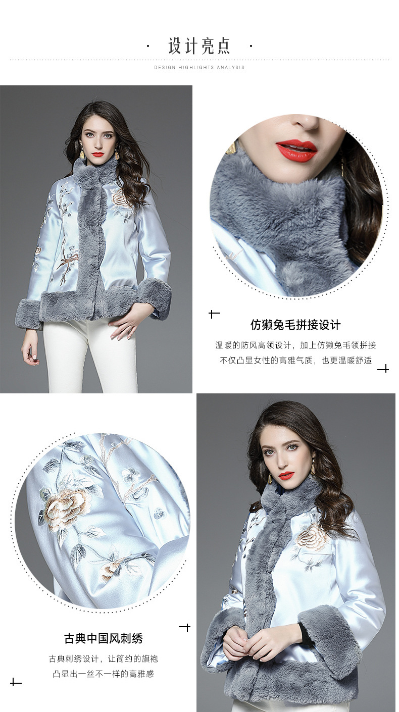 ANM-2019改良旗袍棉袄女2019新款中国风重工刺绣短款年轻款加厚保暖上衣