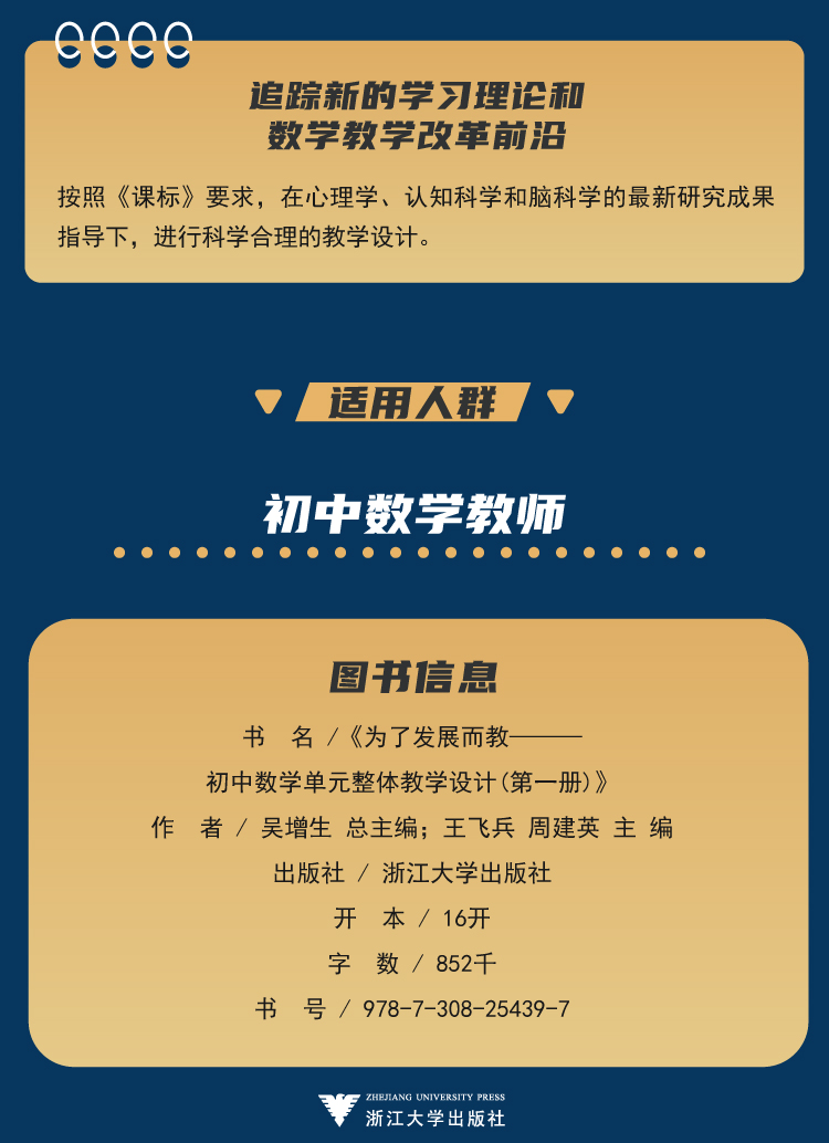 【预售11月上旬发】为了发展而教——初中数学单元整体教学设计(第一册)/浙大优学/总主编 吴增生/主编 王飞兵 周建英/浙江大学出版社