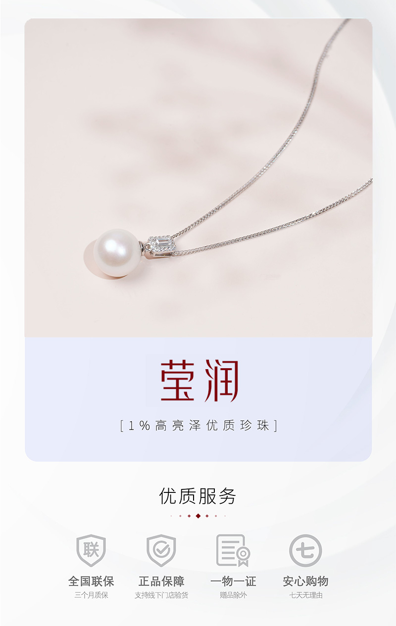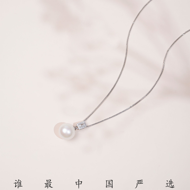 莹润系列 S925银 淡水珍珠链牌 项链 精致时尚简约