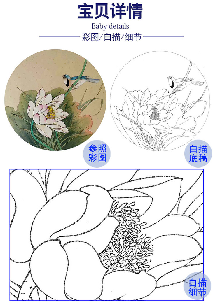 戴青池工笔花鸟小品白描底稿-多种白描尺寸可选-DQ29
