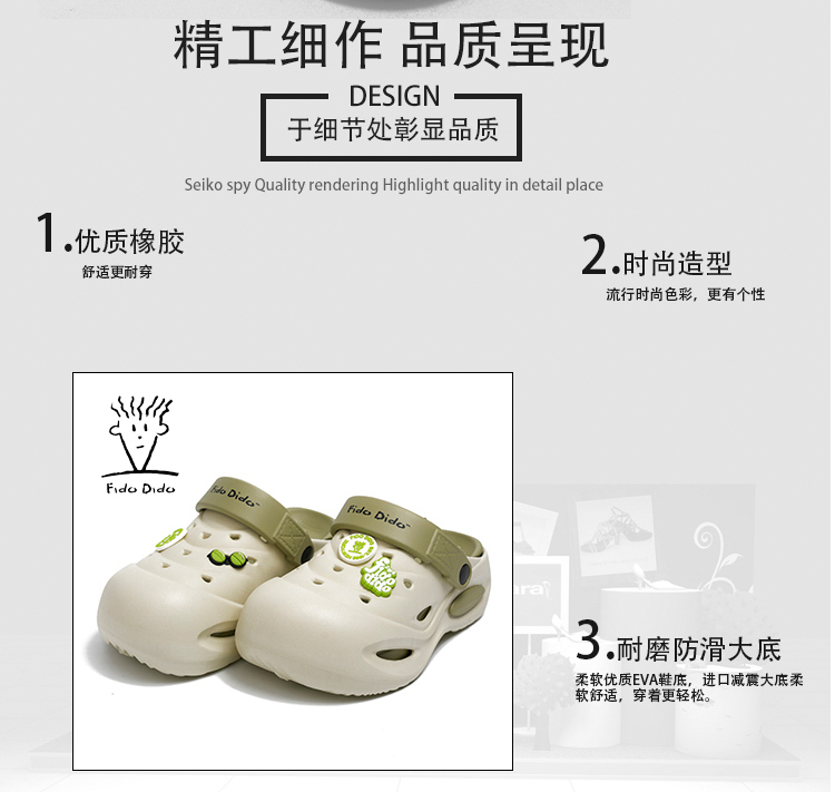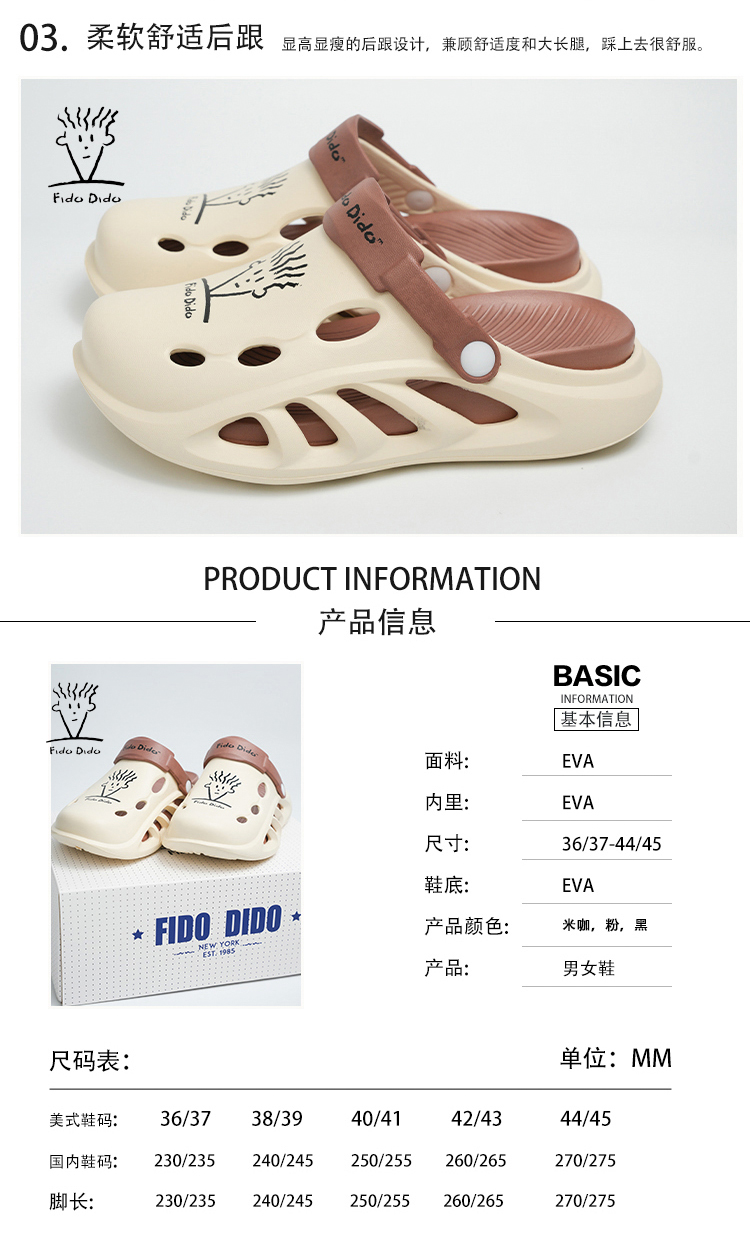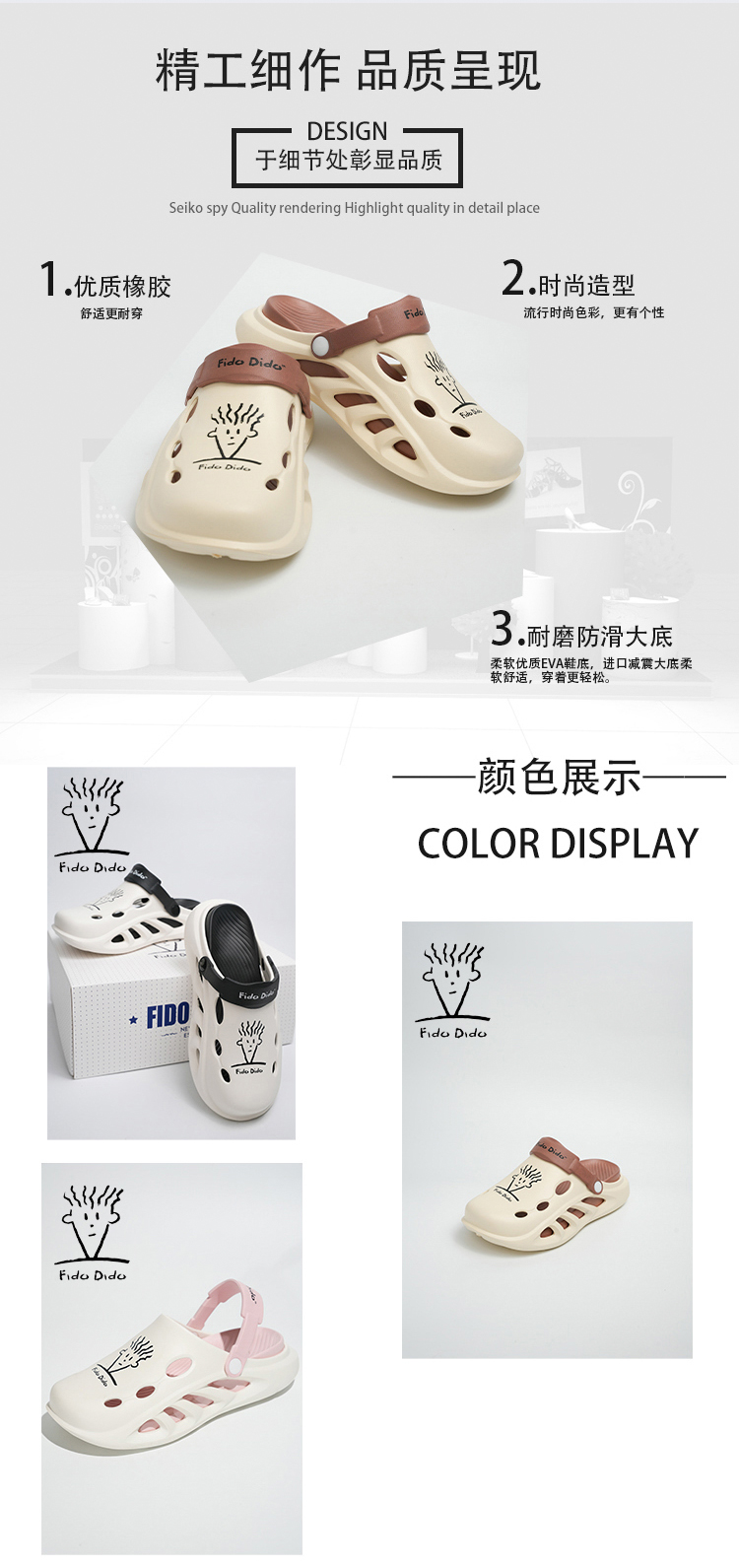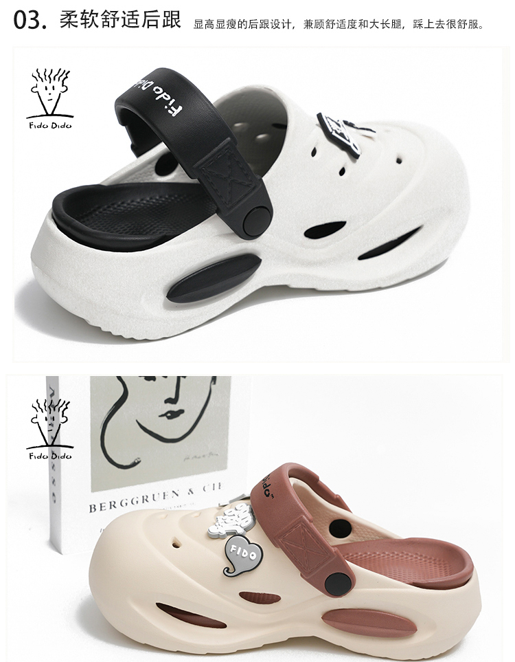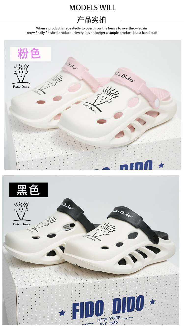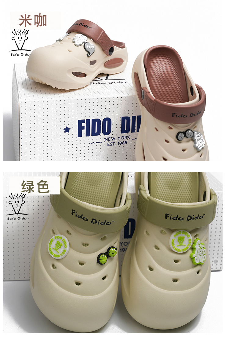 潮人夏日必备 | FIDODIDO(七喜小子) 洞洞鞋 男女款 夏季外穿舒适超厚底eva踩屎感果冻包头凉拖鞋 4色入