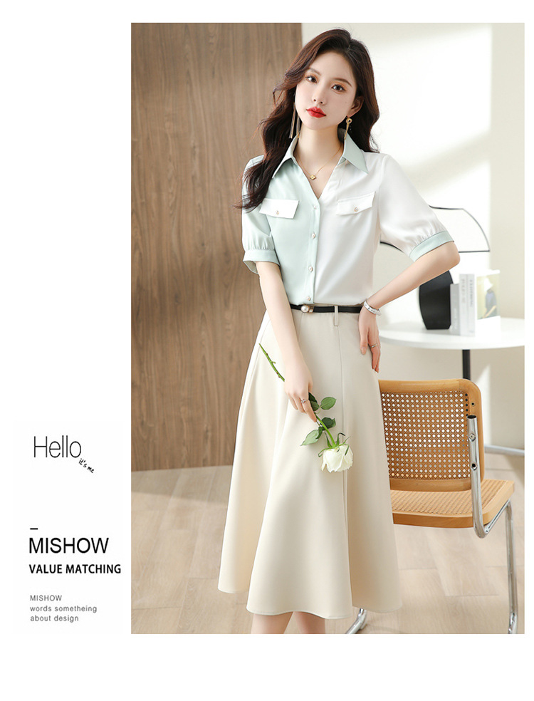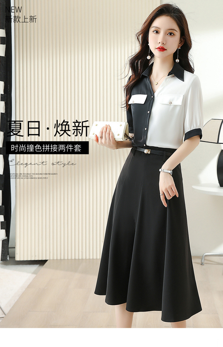HR ABS6639套装时尚休闲拼接撞色减龄两件套套裙