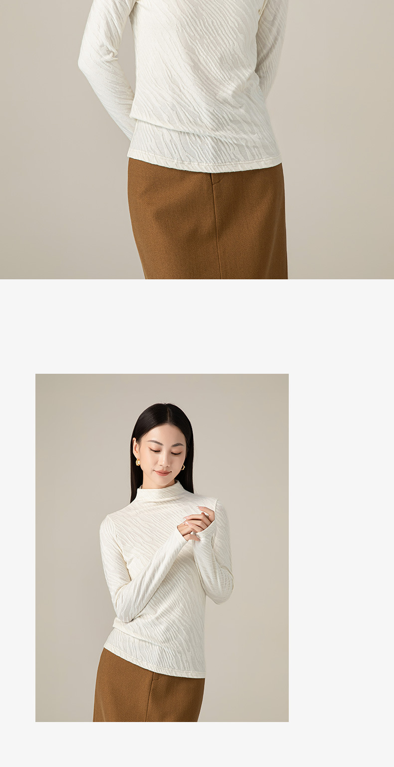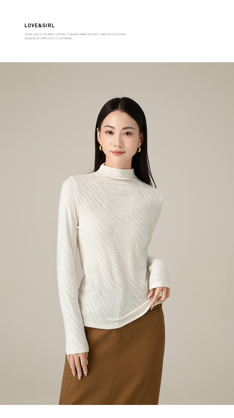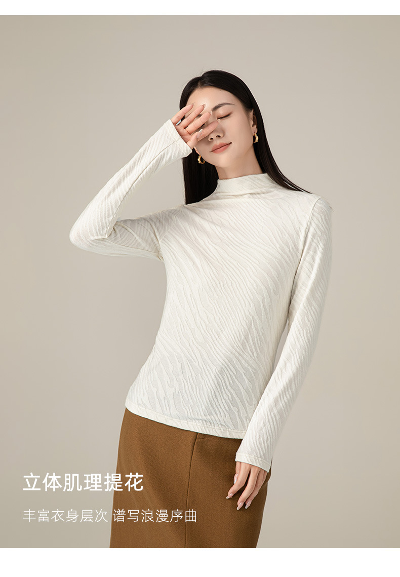 【高货xg】全新升级【铂金会员165/天猫219/差价54】(34905) 洛诗琳肌理感内搭打底衫女秋冬新款优雅显瘦暗纹提花上衣