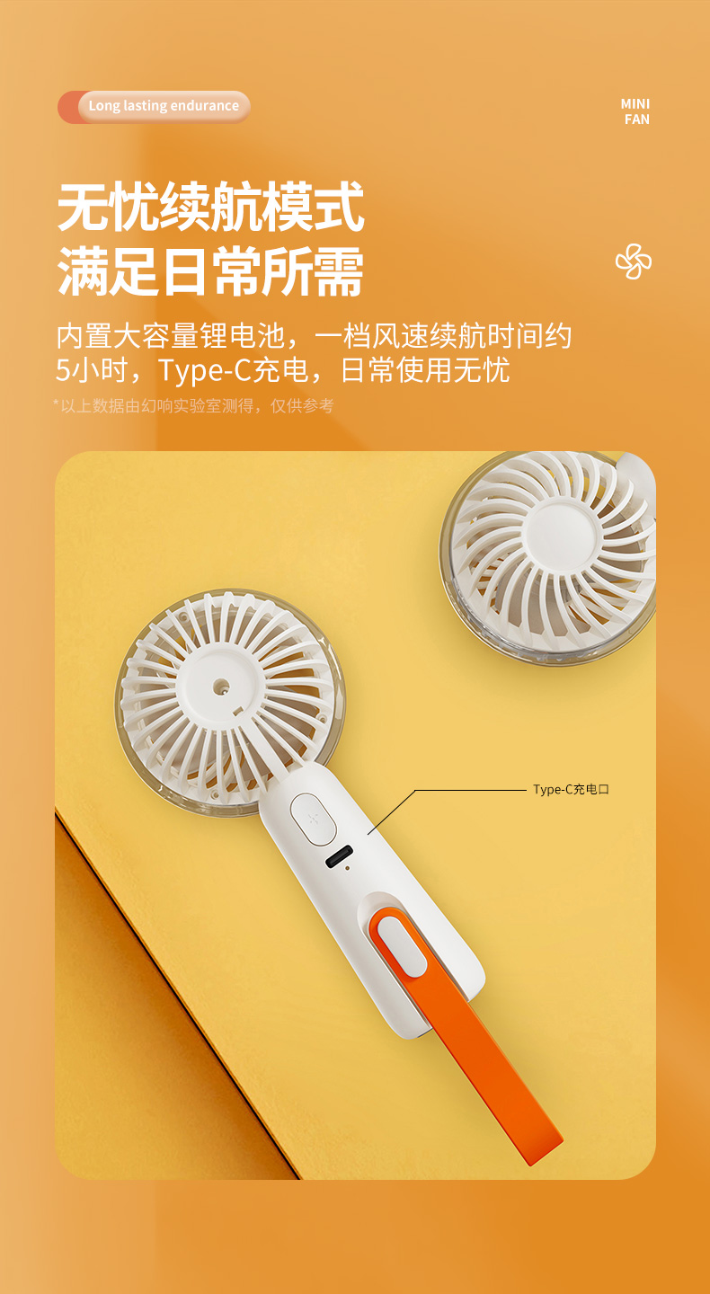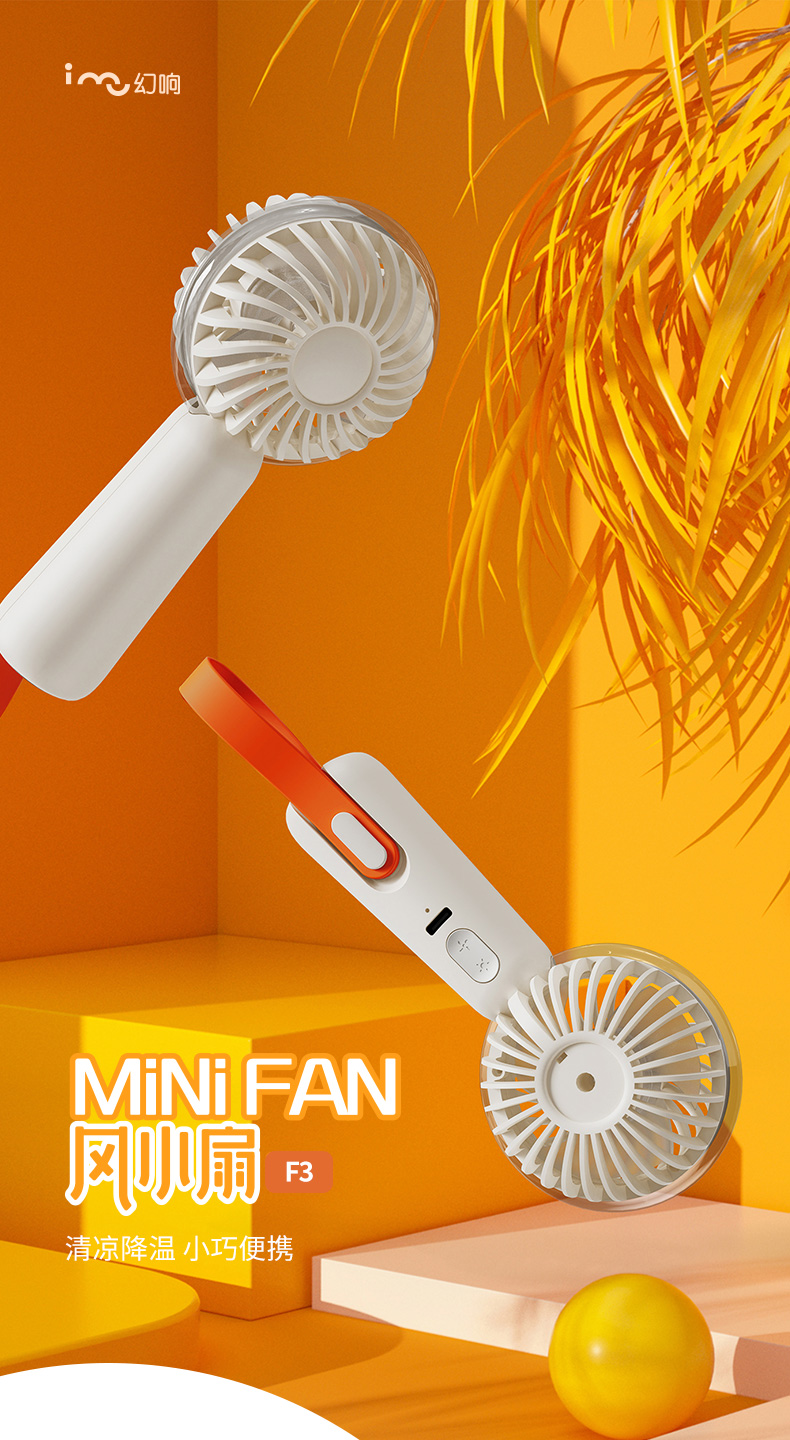 幻响F3手持小风扇手持小风扇usb充电便携式小型折叠挂脖随身电风扇桌面迷你宿舍静音办公室桌手拿户外小电扇