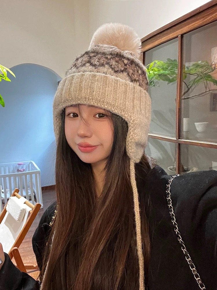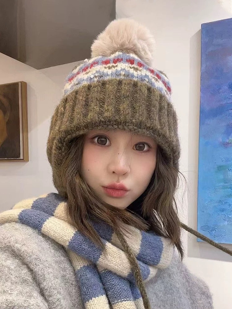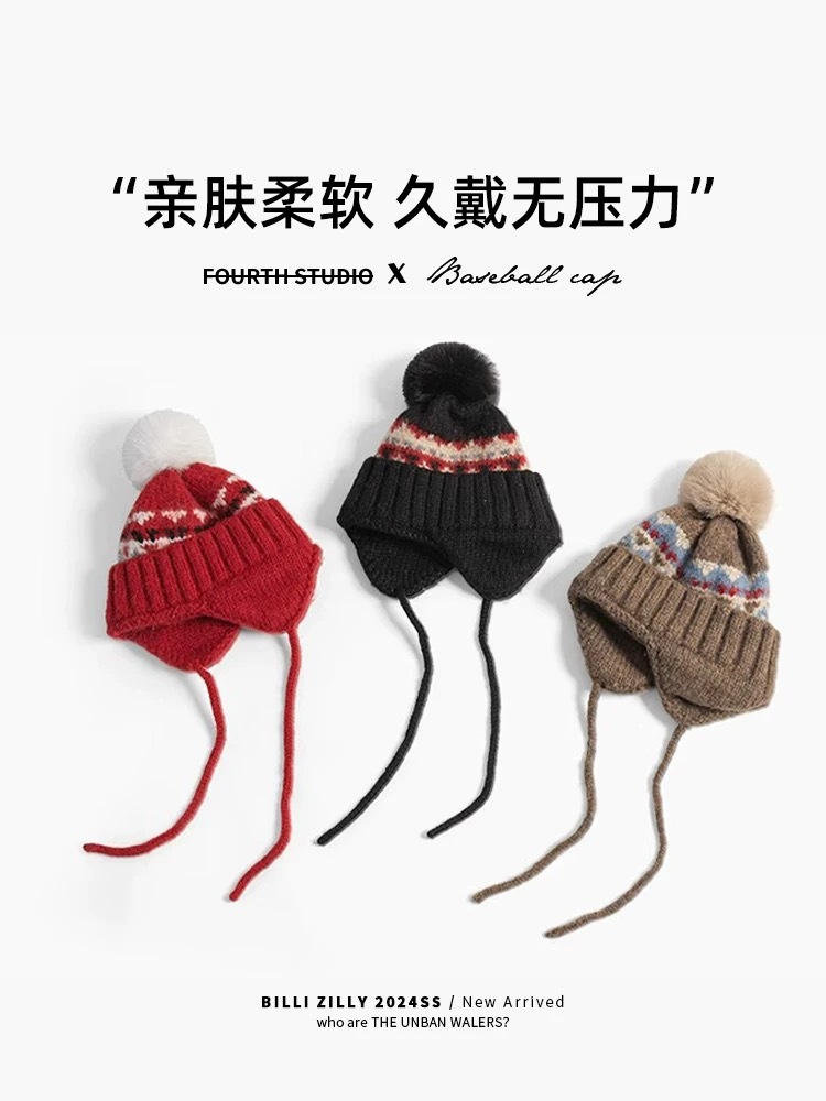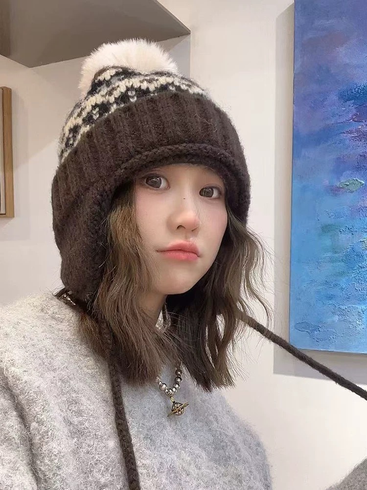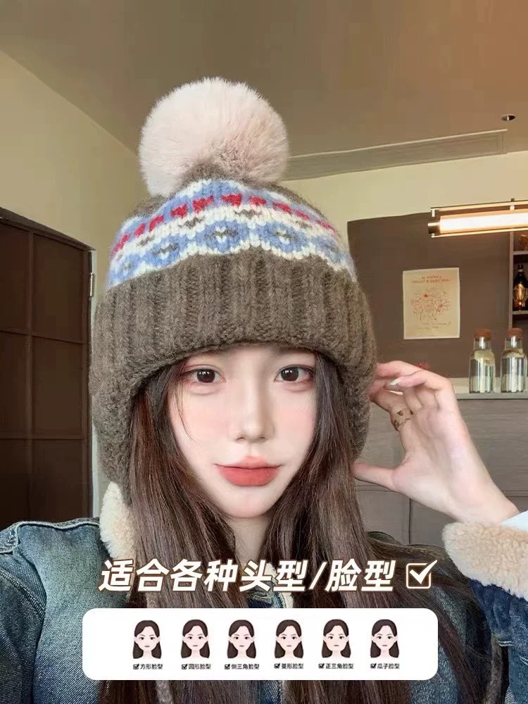 【久戴无压力❗️甜美显脸小】费尔岛帽子女秋冬季加厚绒保暖护耳显脸小毛线防寒针织包头雷锋帽。jb
