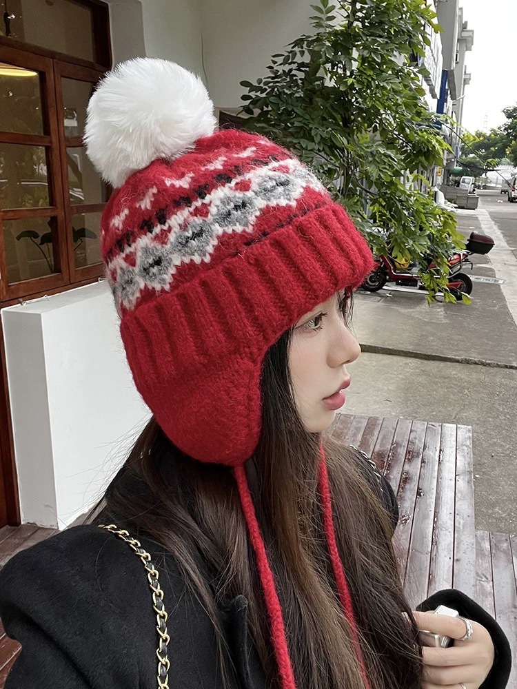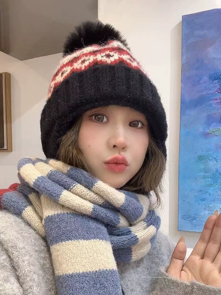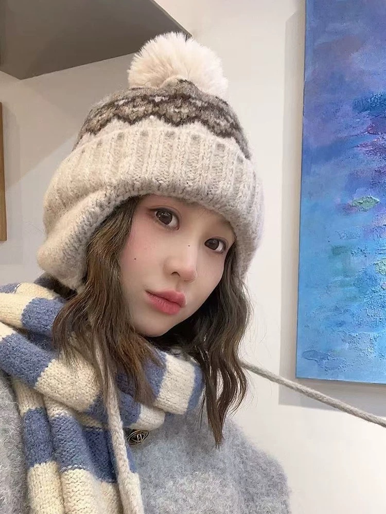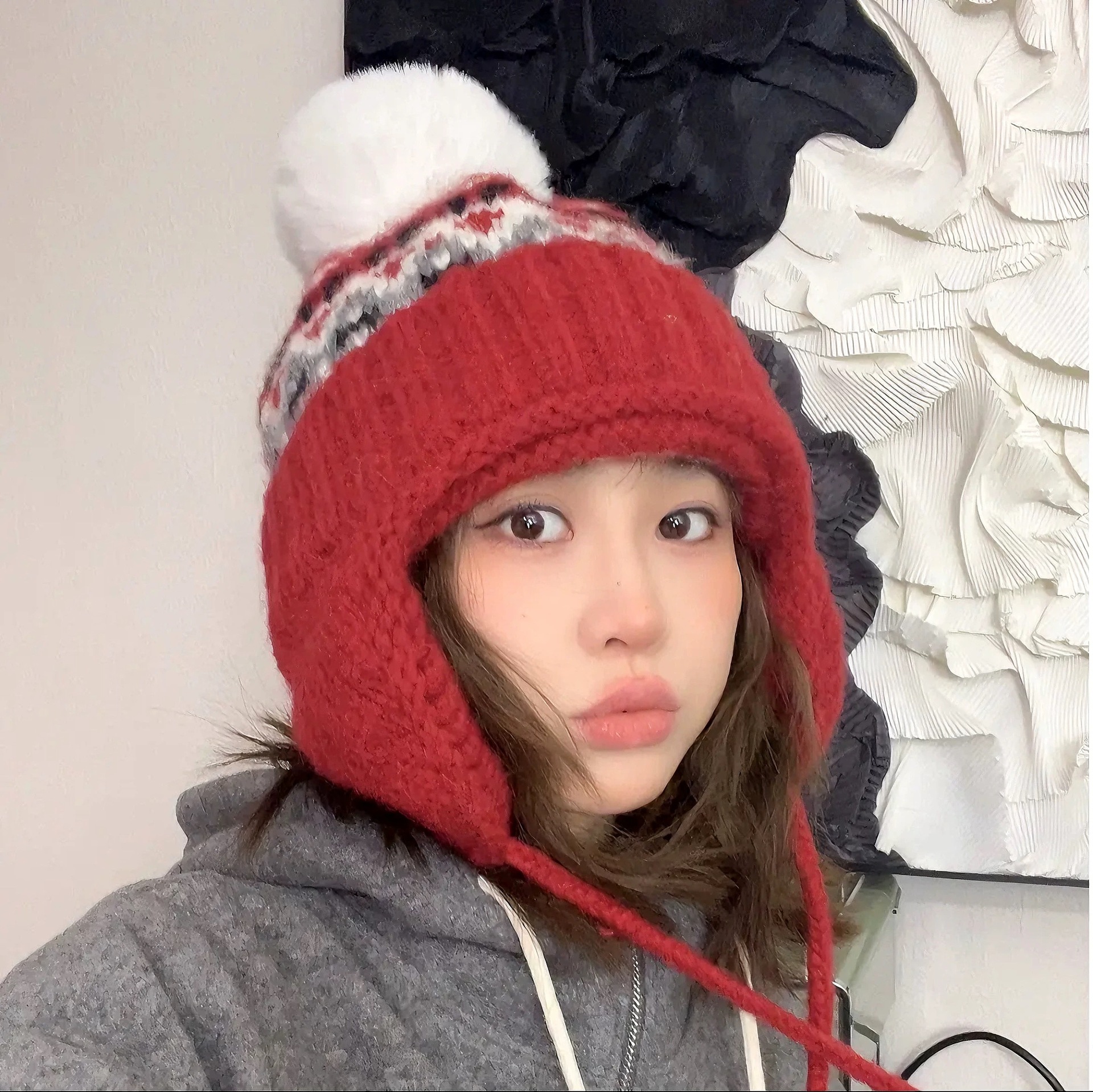 【久戴无压力❗️甜美显脸小】费尔岛帽子女秋冬季加厚绒保暖护耳显脸小毛线防寒针织包头雷锋帽。jb