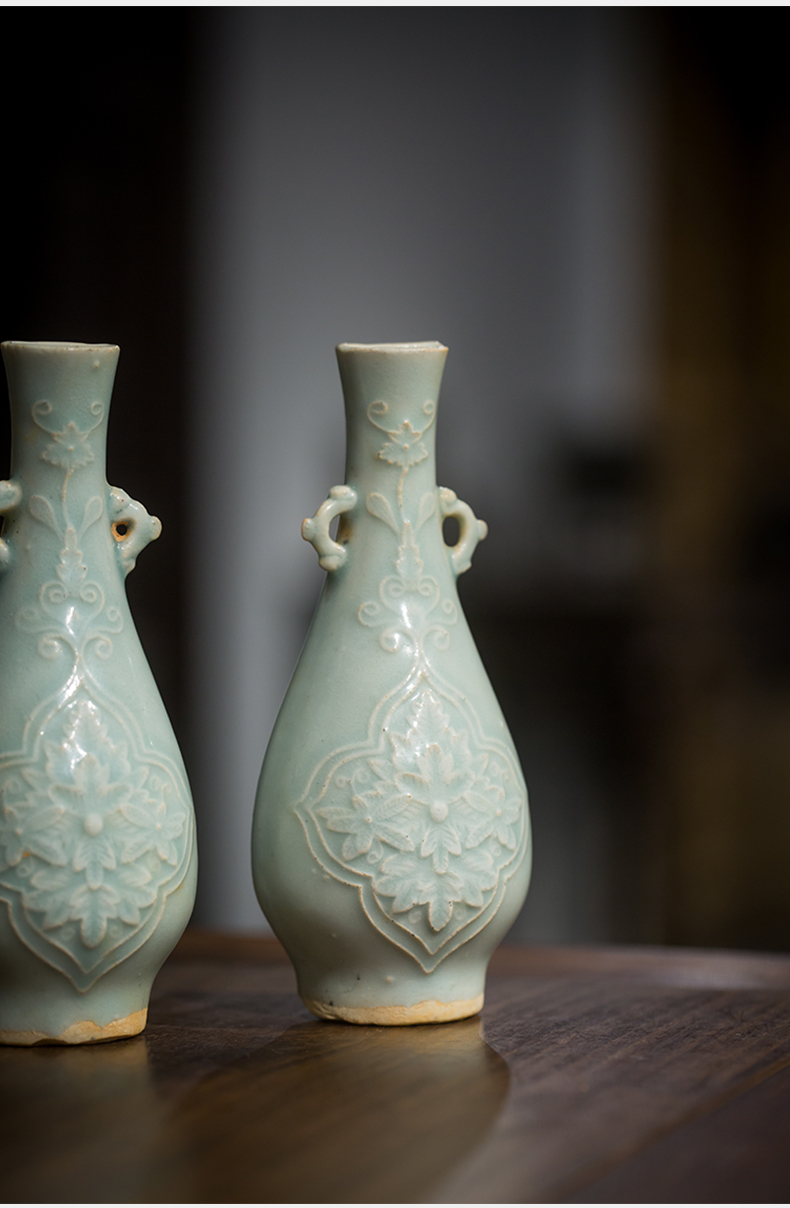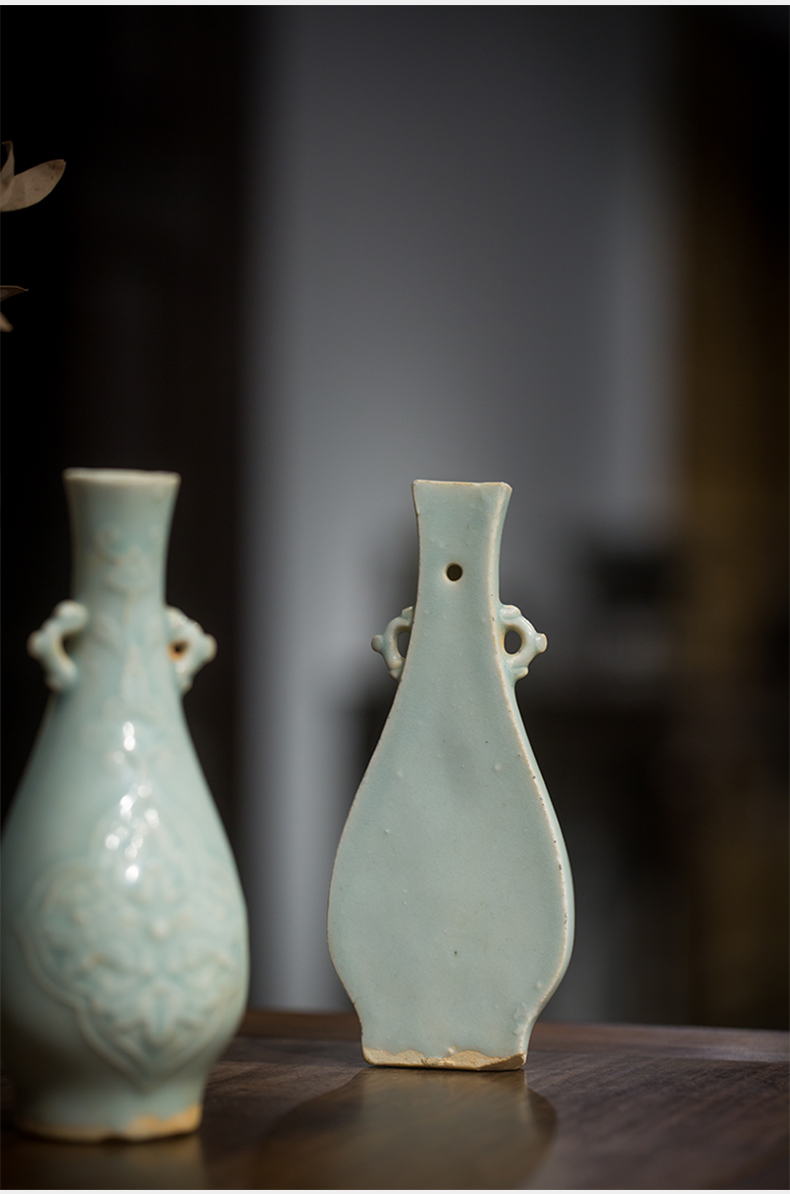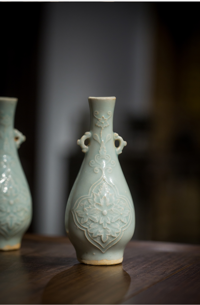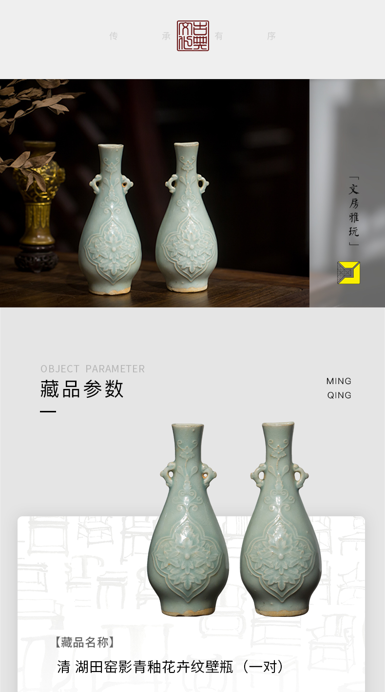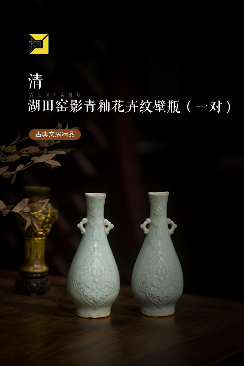 清代 湖田窑影青釉花卉纹壁瓶(一对)